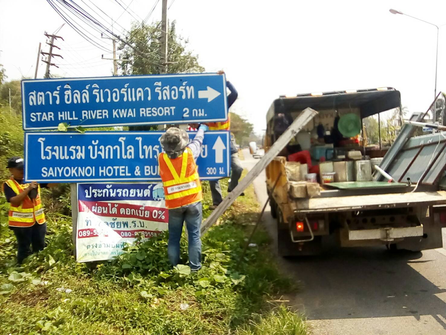 แขวงทางหลวงกาญจนบุรีโดยหมวดทางหลวงศรีสวัสดิ์ ดำเนินการบริเวณโรงเรียนศรีสวัสดิ์ทิพยาคม 12/02/62