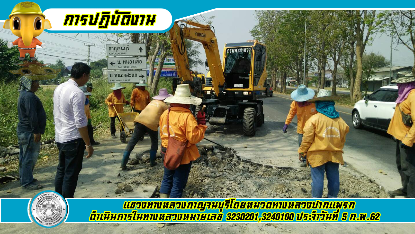 แขวงทางหลวงกาญจนบุรีโดยหมวดทางหลวงปากแพรก ดำเนินการในทางหลวงหมายเลข 3230201,3240100 05/02/62