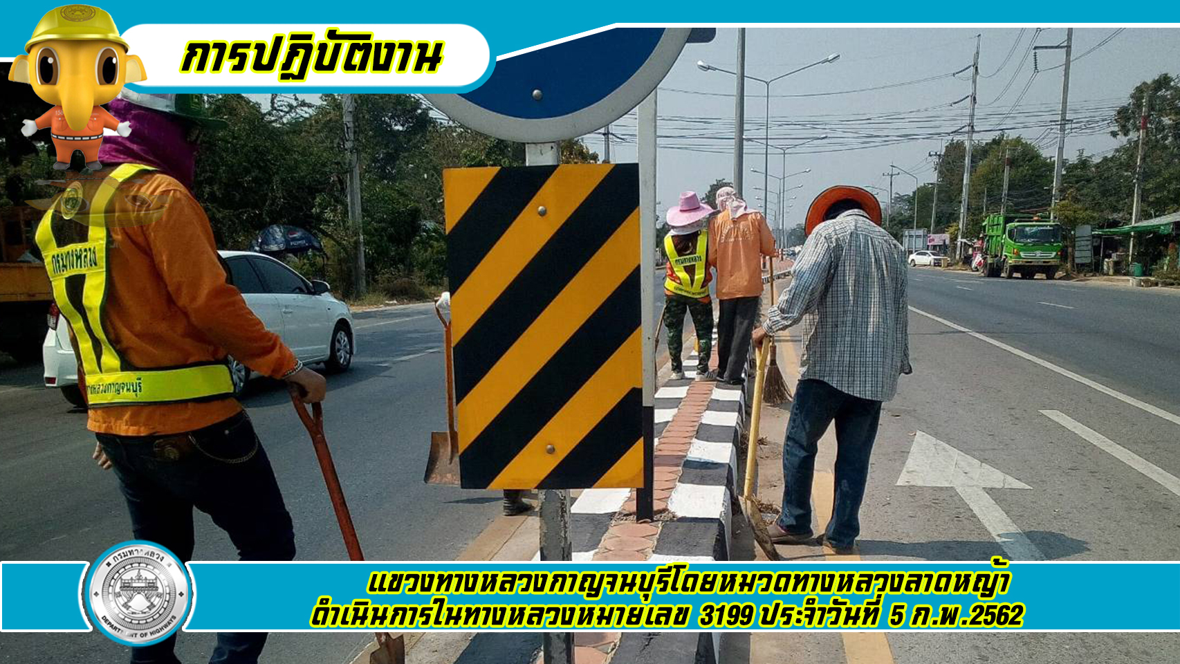 แขวงทางหลวงกาญจนบุรีโดยหมวดทางหลวงลาดหญ้า ดำเนินการในทางหลวงหมายเลข 3199 ผลการปฏิบัติงานวันที่ 5 ก.พ 62 05/02/62