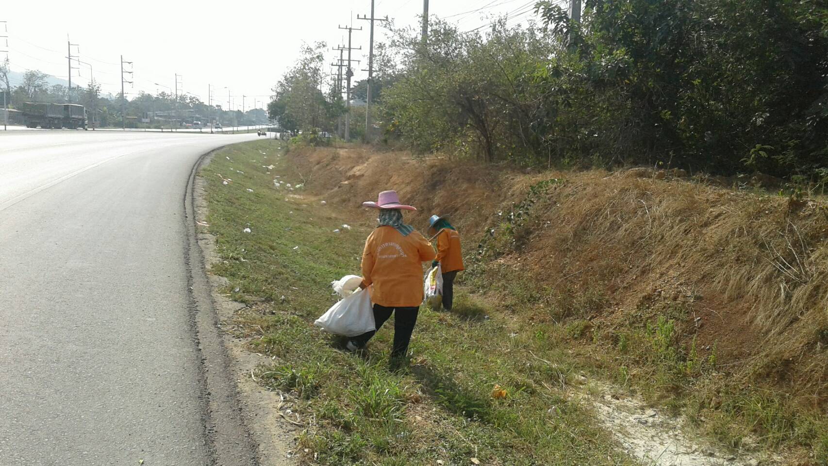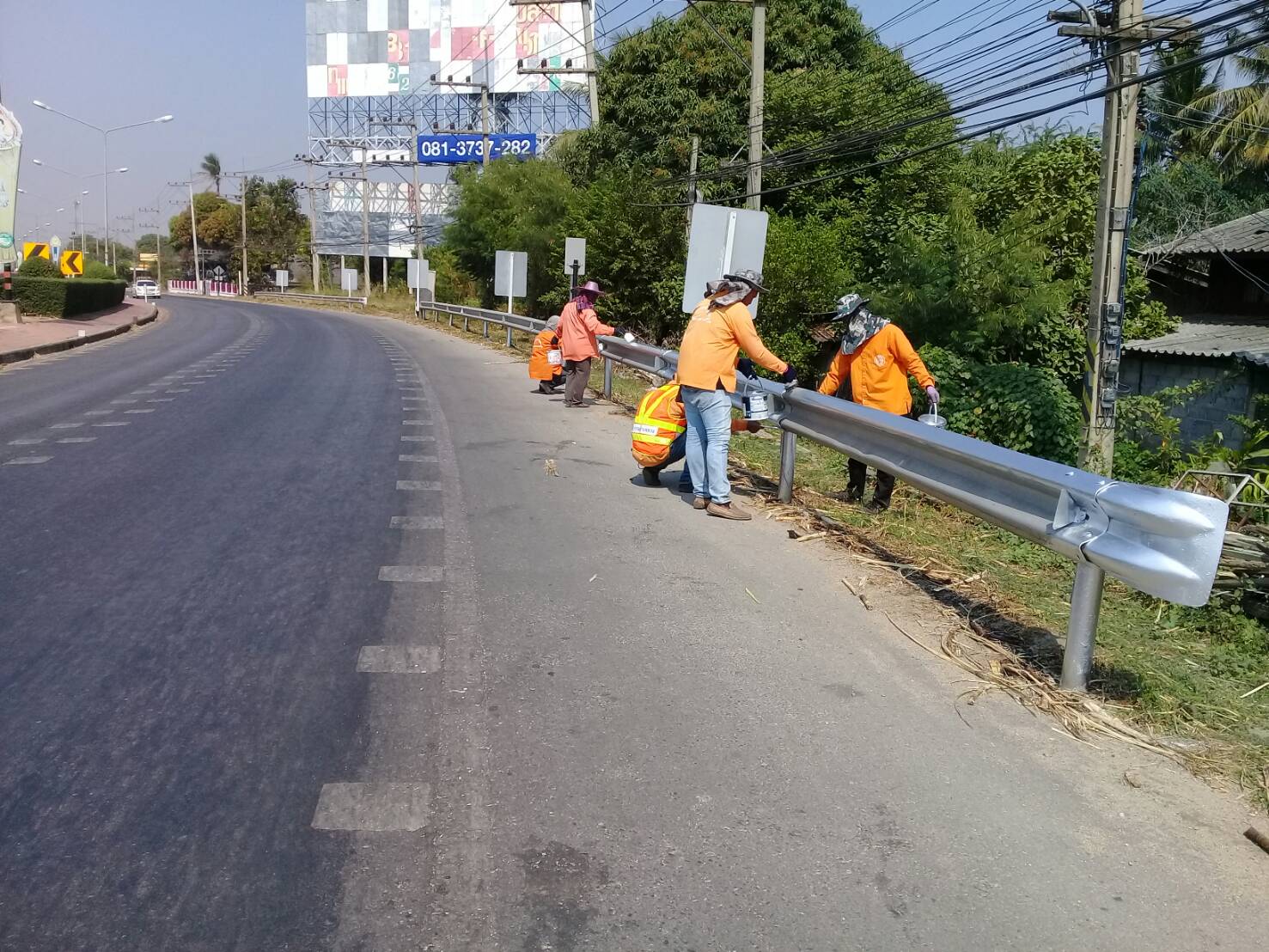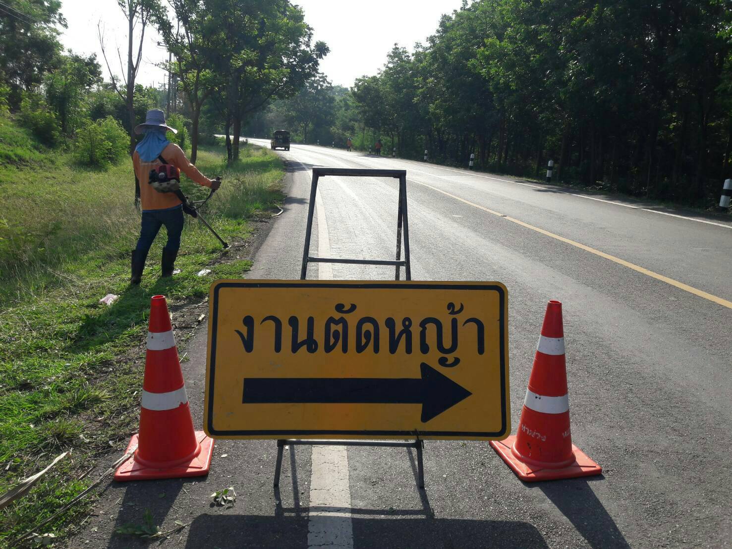แขวงทางหลวงกาญจนบุรีโดยหมวดทางหลวงท่าม่วง ดำเนินการในทางหลวงหมายเลข 3492