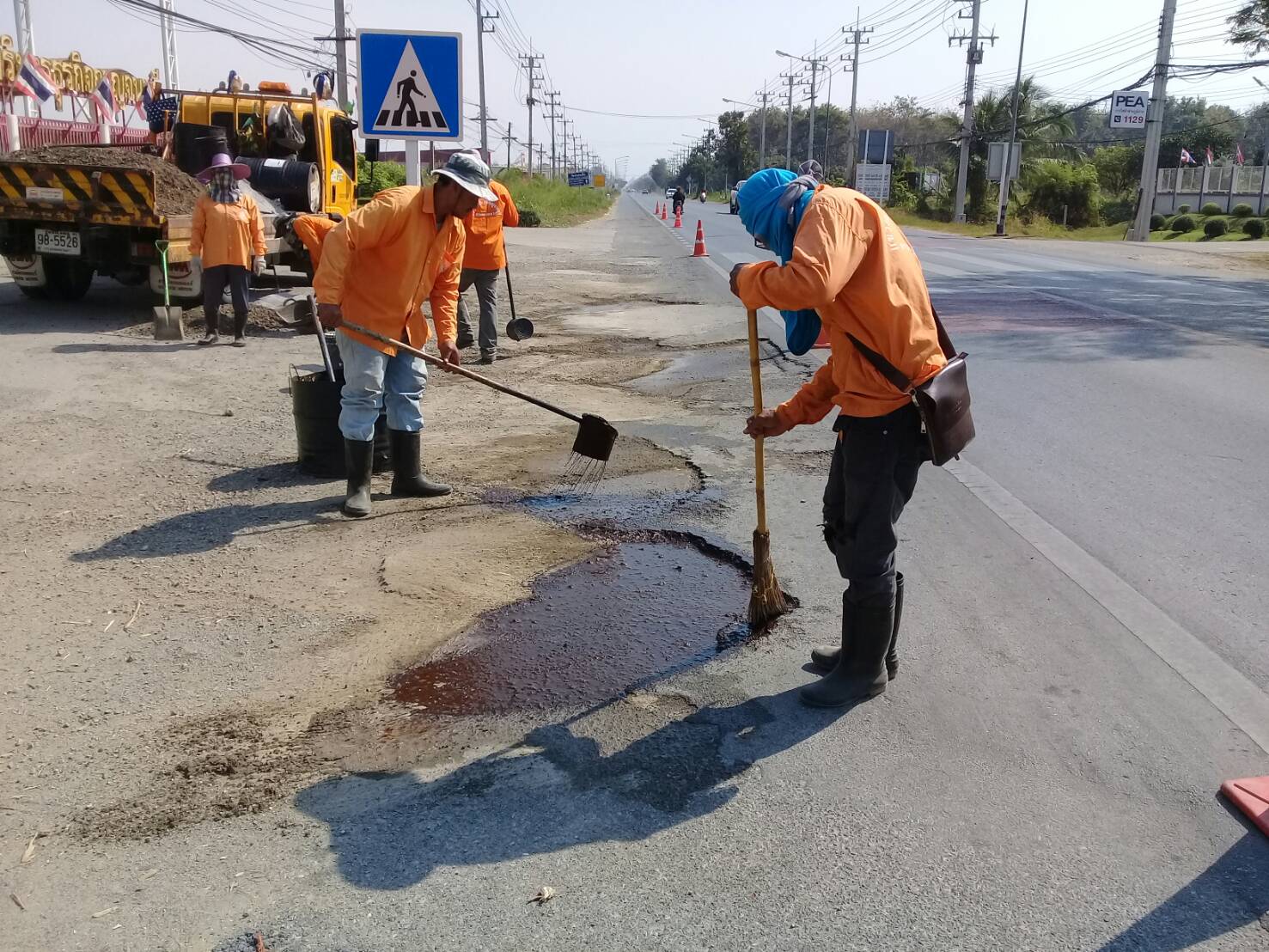 แขวงทางหลวงกาญจนบุรีโดยหมวดทางหลวงด่านมะขามเตี้ยดำเนินการในทางหลวงหมายเลข 3209 24/01/62