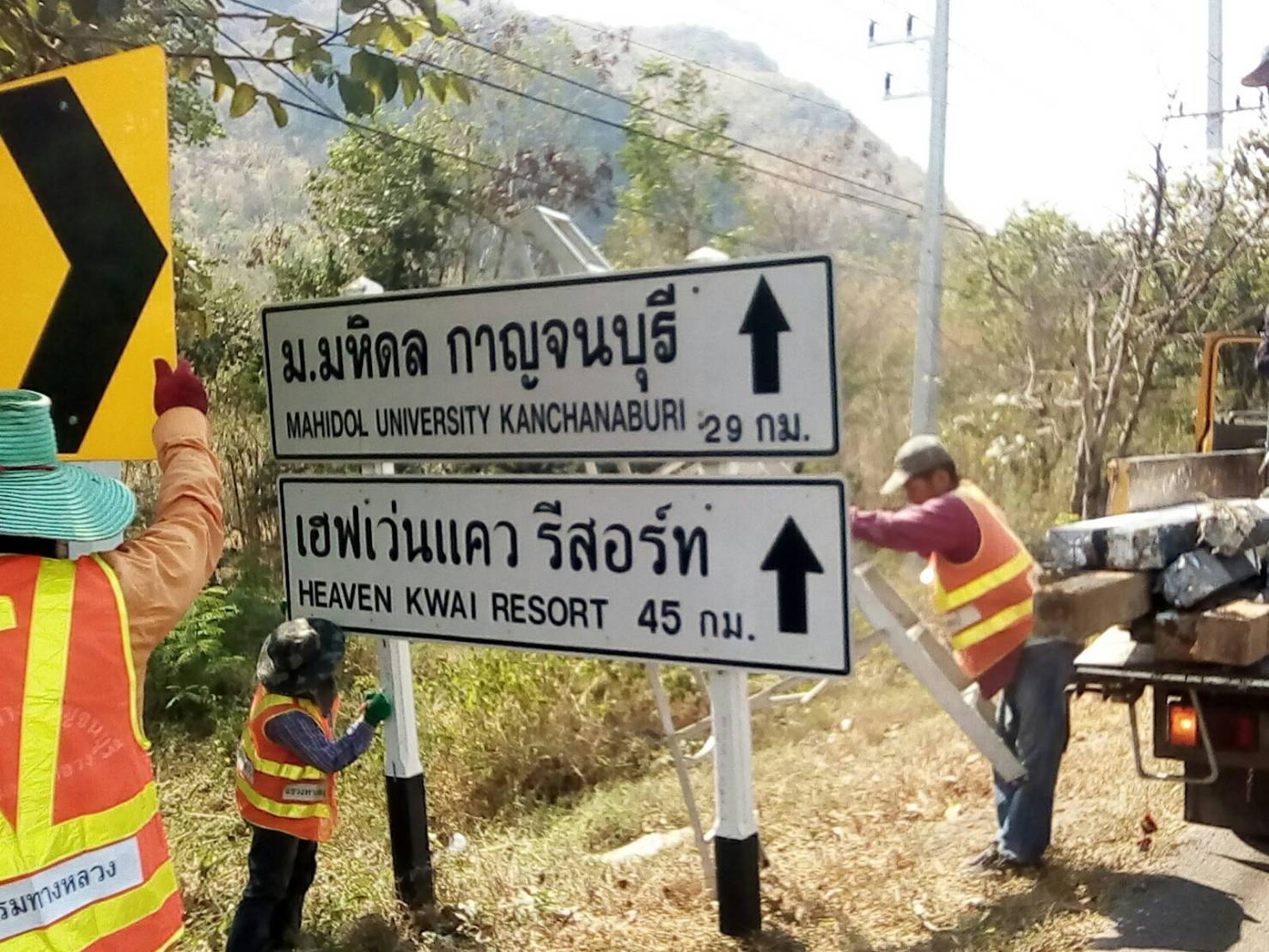 แขวงทางหลวงกาญจนบุรีโดยงานอำนวยความปลอดภัย ดำเนินการในทางหลวงหมายเลข 323