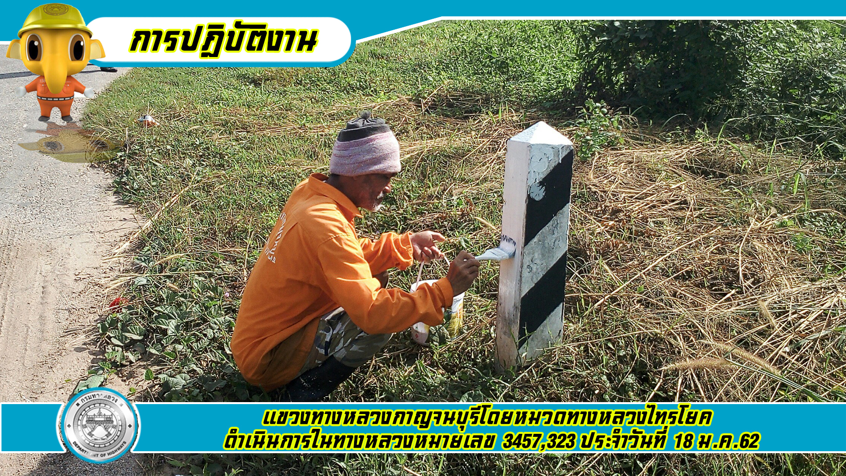 แขวงทางหลวงกาญจนบุรีโดยหมวดทางหลวงลาดหญ้า ดำเนินการในทางหลวงหมายเลข 3199 18/01/62