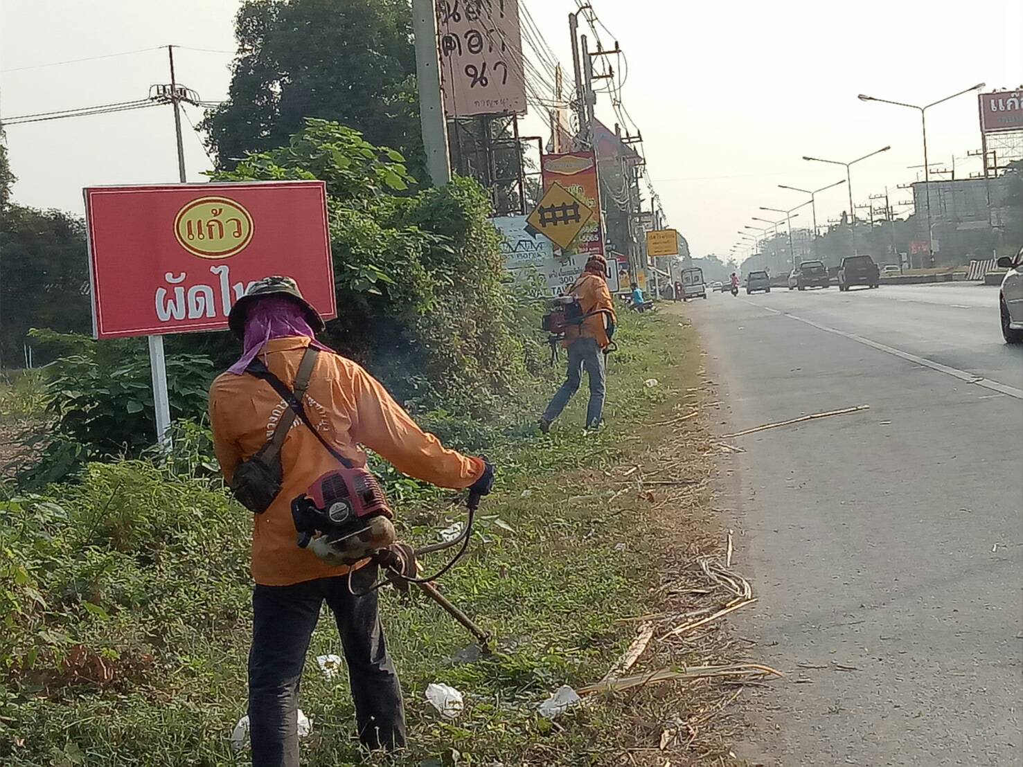 แขวงทางหลวงกาญจนบุรีโดยหมวดทางหลวงลาดหญ้า ดำเนินการในทางหลวงหมายเลข 3199,3500 17/01/62