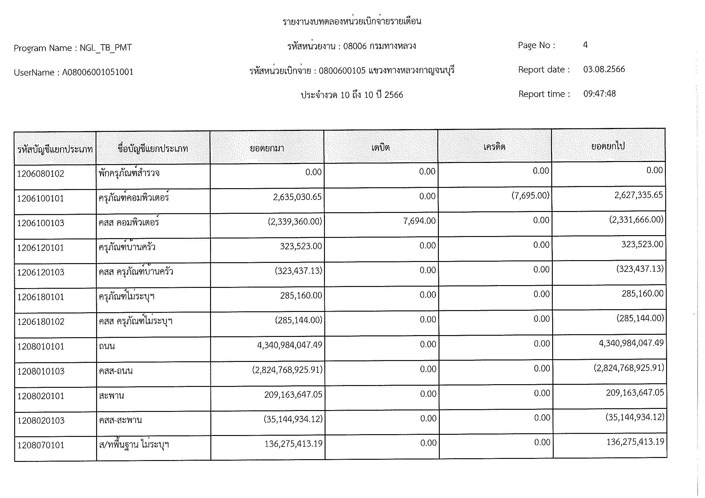 รายงานงบทดลองหน่วยเบิกจ่ายรายเดือน ประจำงวด 10 ประจำปีที่ 2566