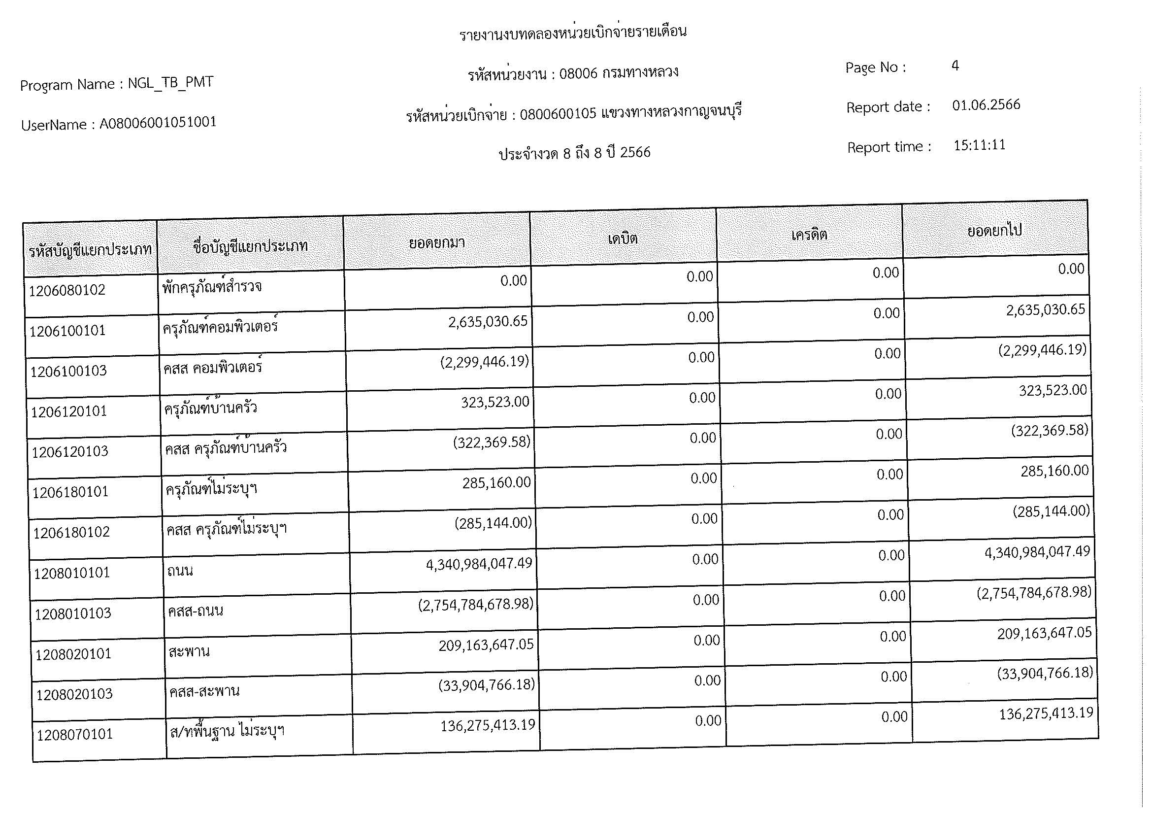 รายงานงบทดลองหน่วยเบิกจ่ายรายเดือน ประจำงวด 8 ประจำปีที่ 2566