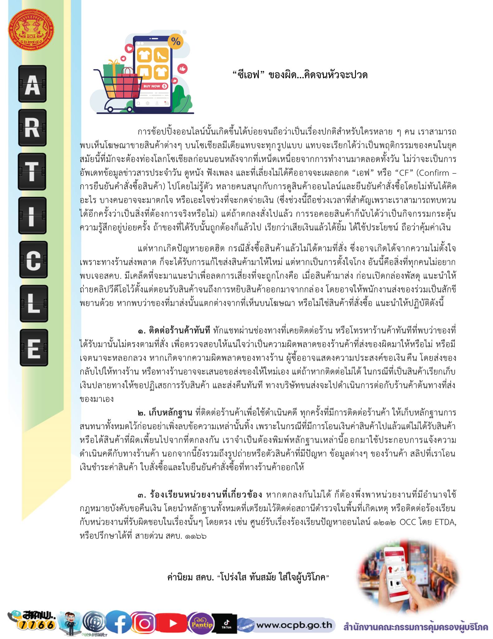 สำนักงานคณะกรรมการคุ้มครองผู้บริโภค ประชาสัมพันธ์ ข่าว สคบ. ด้านการคุ้มครองผู้บริโภค
