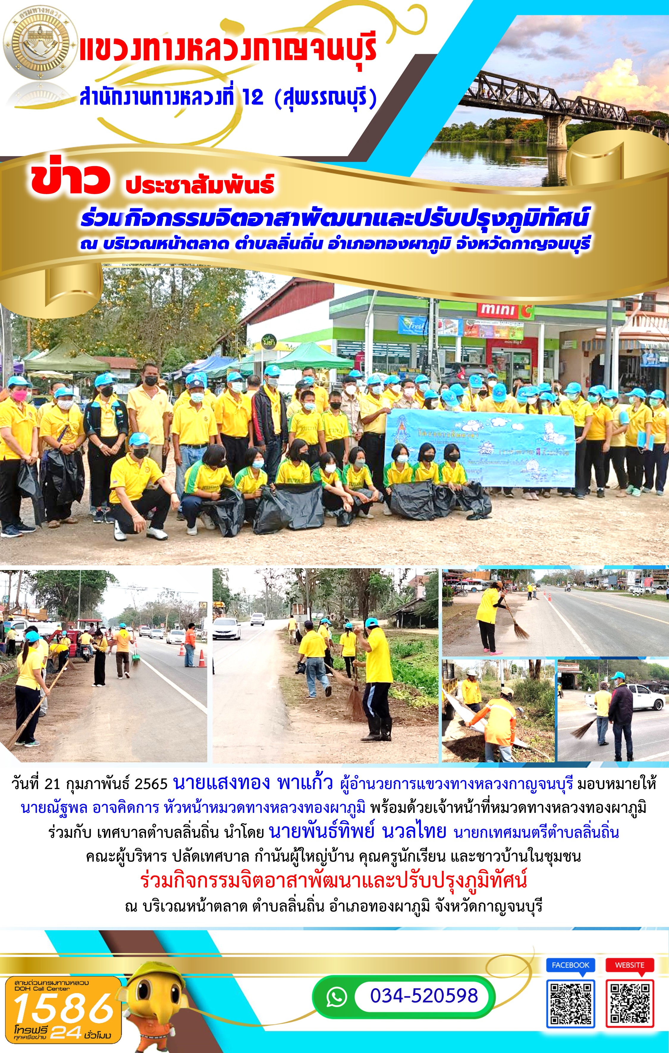 กรมทางหลวง โดย แขวงทางหลวงกาญจนบุรี ประชาสัมพันธ์โครงการงานก่อสร้างบนทางหลวง