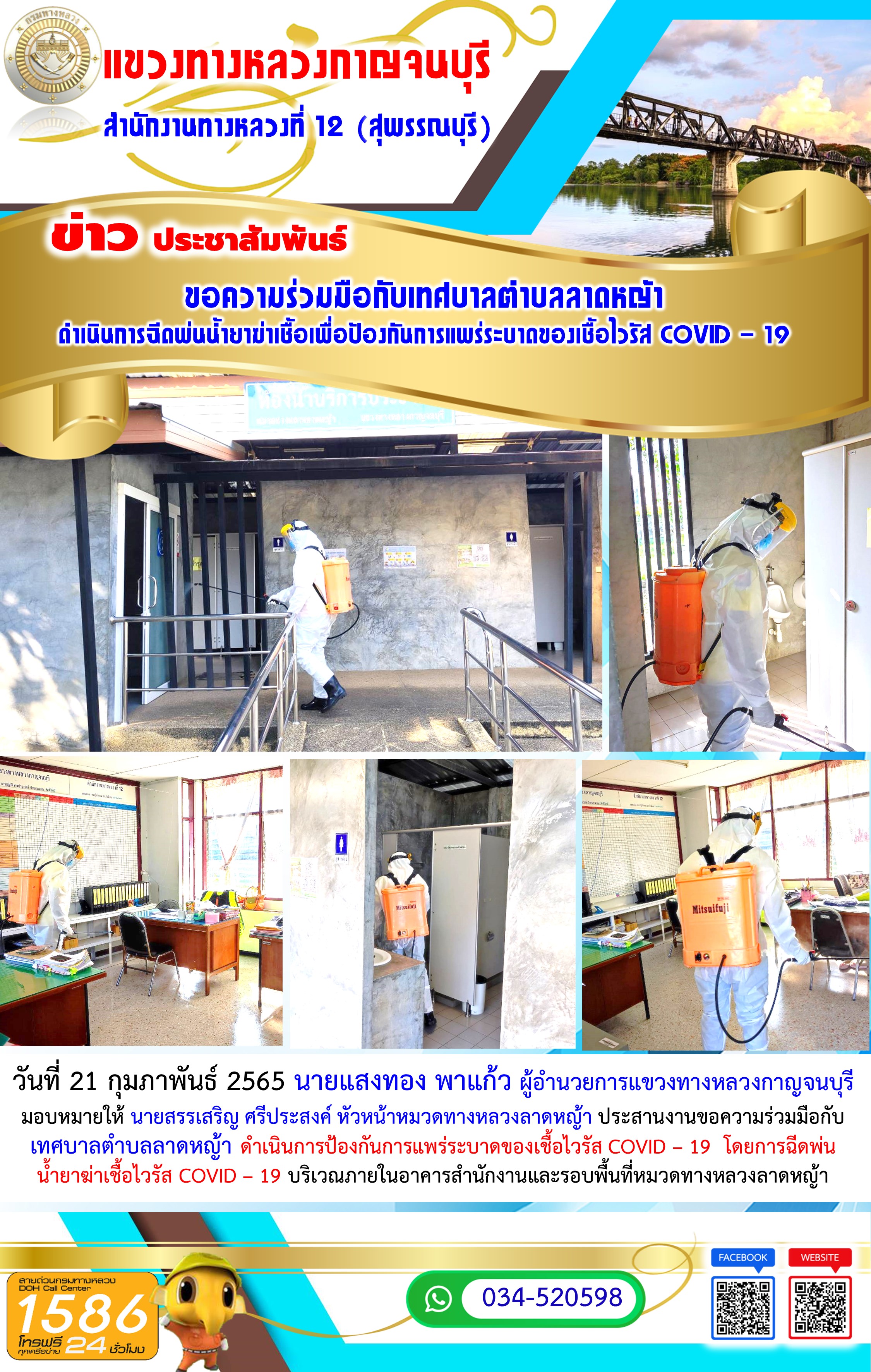 ขอความร่วมมือกับ เทศบาลตำบลลาดหญ้า ดำเนินการป้องกันการแพร่ระบาดของเชื้อไวรัส COVID – 19