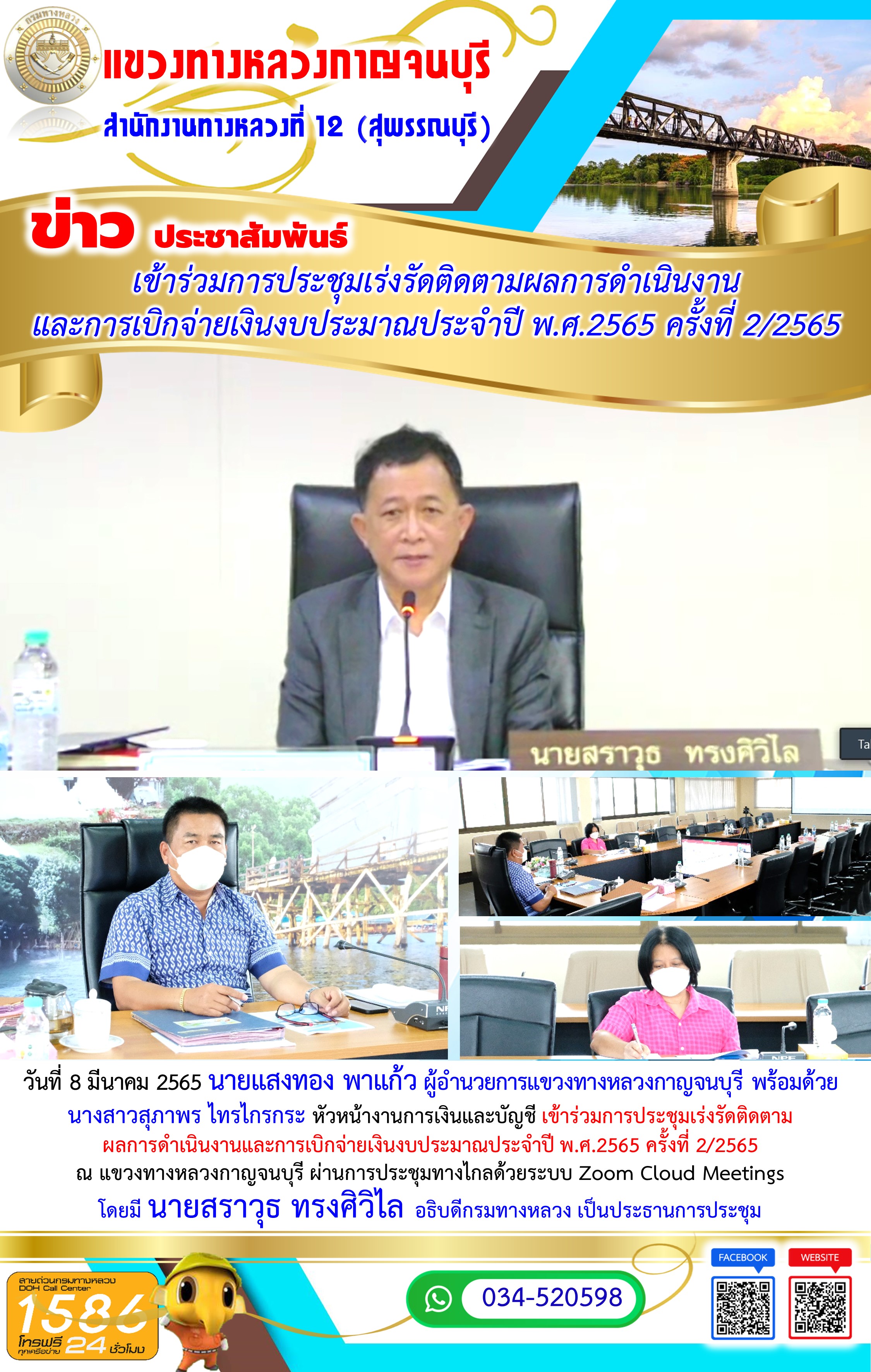 เข้าร่วมการประชุมเร่งรัดติดตาม ผลการดำเนินงานและการเบิกจ่ายเงินงบประมาณประจำปี พ.ศ.2565 ครั้งที่ 2/2565