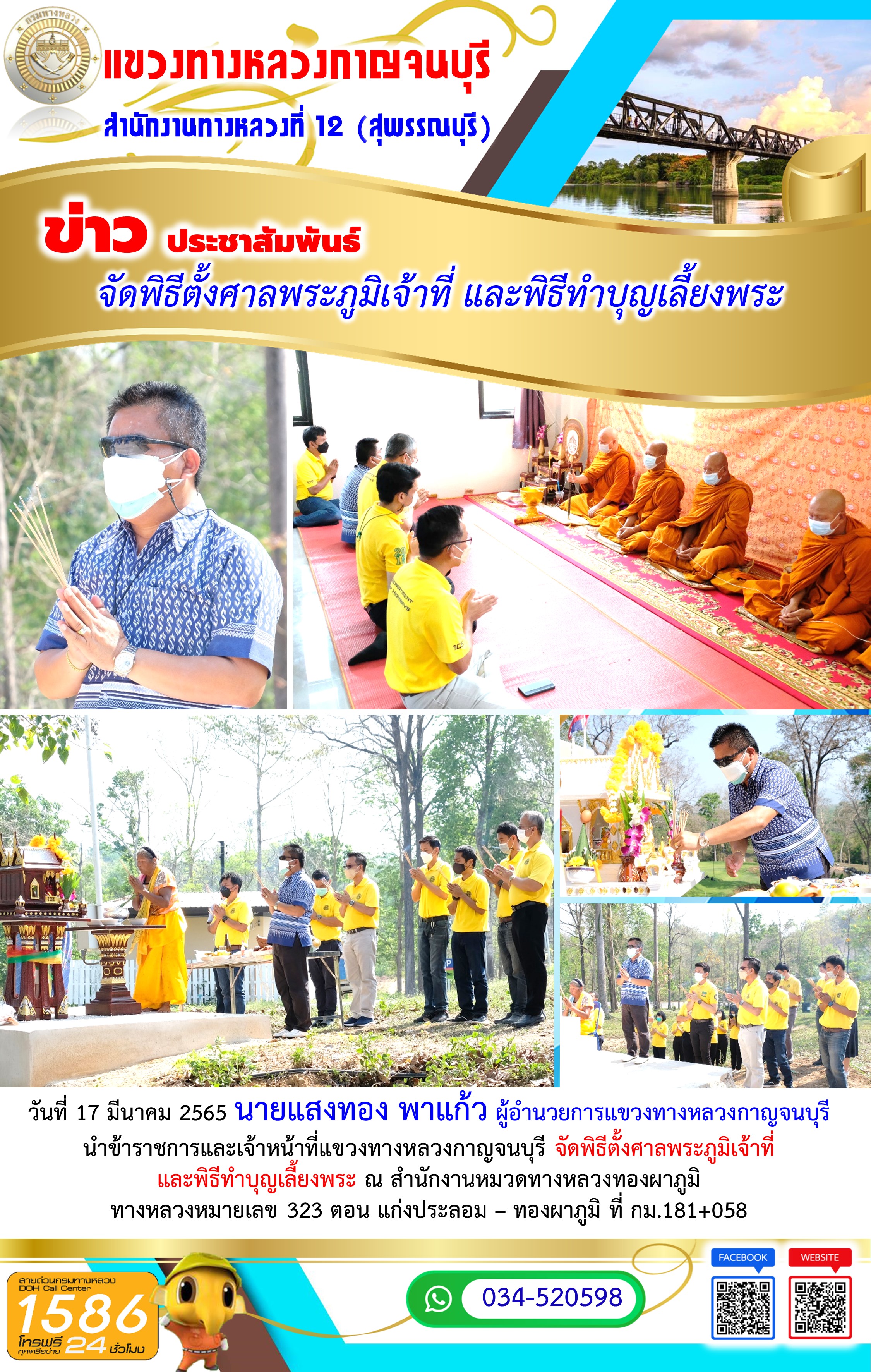 จัดพิธีตั้งศาลพระภูมิเจ้าที่ และพิธีทำบุญเลี้ยงพระ ณ สำนักงานหมวดทางหลวงทองผาภูมิ ทางหลวงหมายเลข 323 ตอน แก่งประลอม – ทองผาภูมิ ที่ กม.181+058
