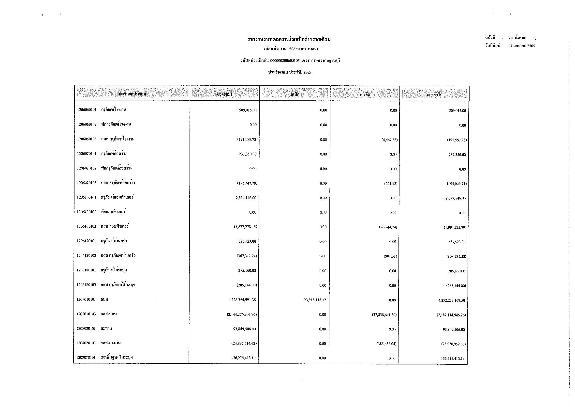 รายงานงบทดลองหน่วยเบิกจ่ายรายเดือน ประจำงวด 3 ประจำปีที่ 2565