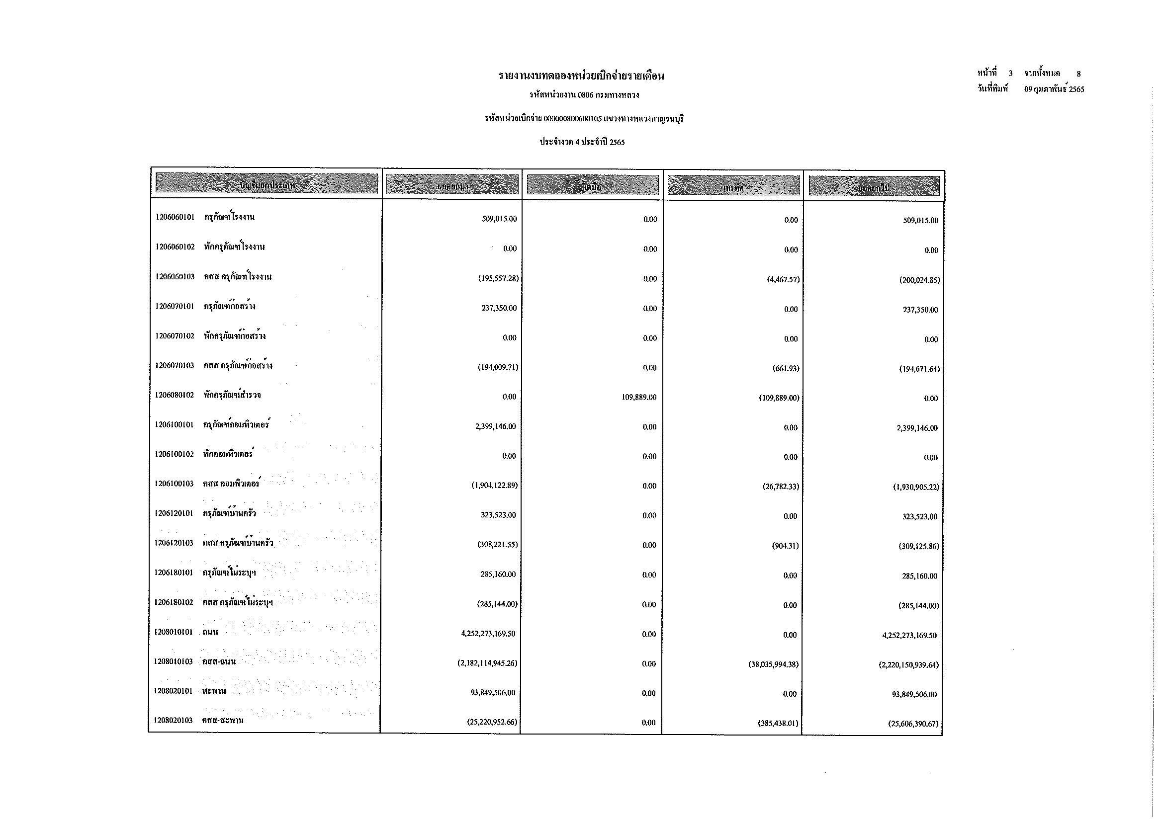 รายงานงบทดลองหน่วยเบิกจ่ายรายเดือน ประจำงวด 4 ประจำปีที่ 2565