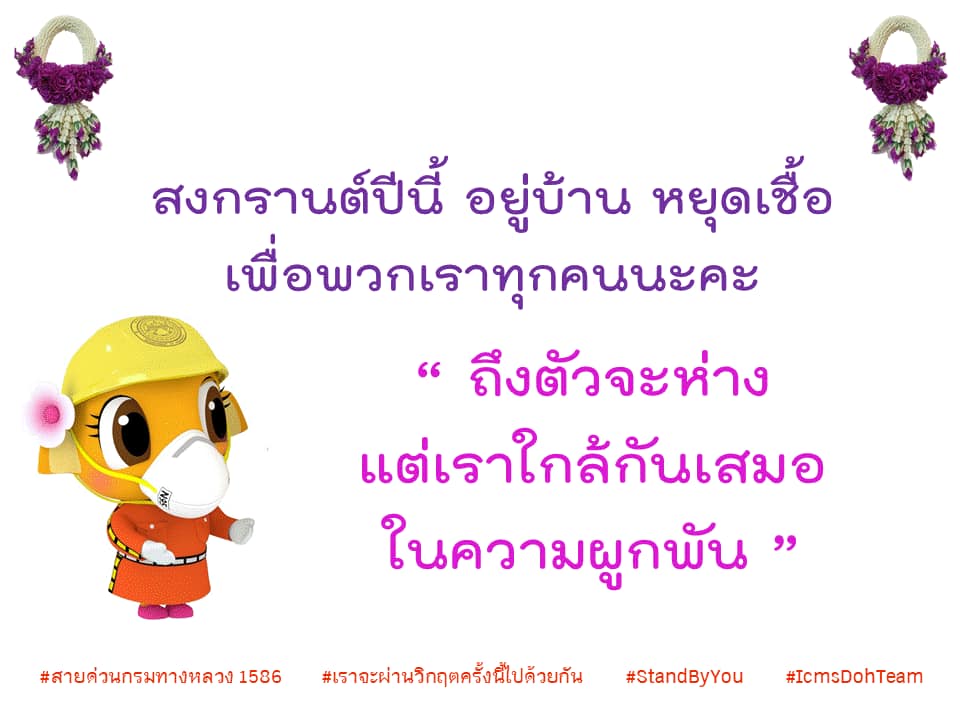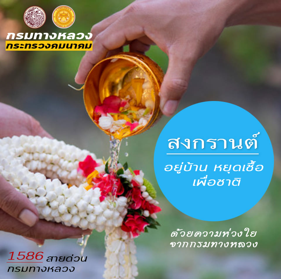 กรมทางหลวง รณรงค์ สงกรานต์ปี้นี้ อยู่บ้าน หยุดเชื้อ เพื่อพวกเราทุกคน “ ...ถึงตัวจะห่างแต่เราใกล้กันเสมอในความผูกพัน ”
