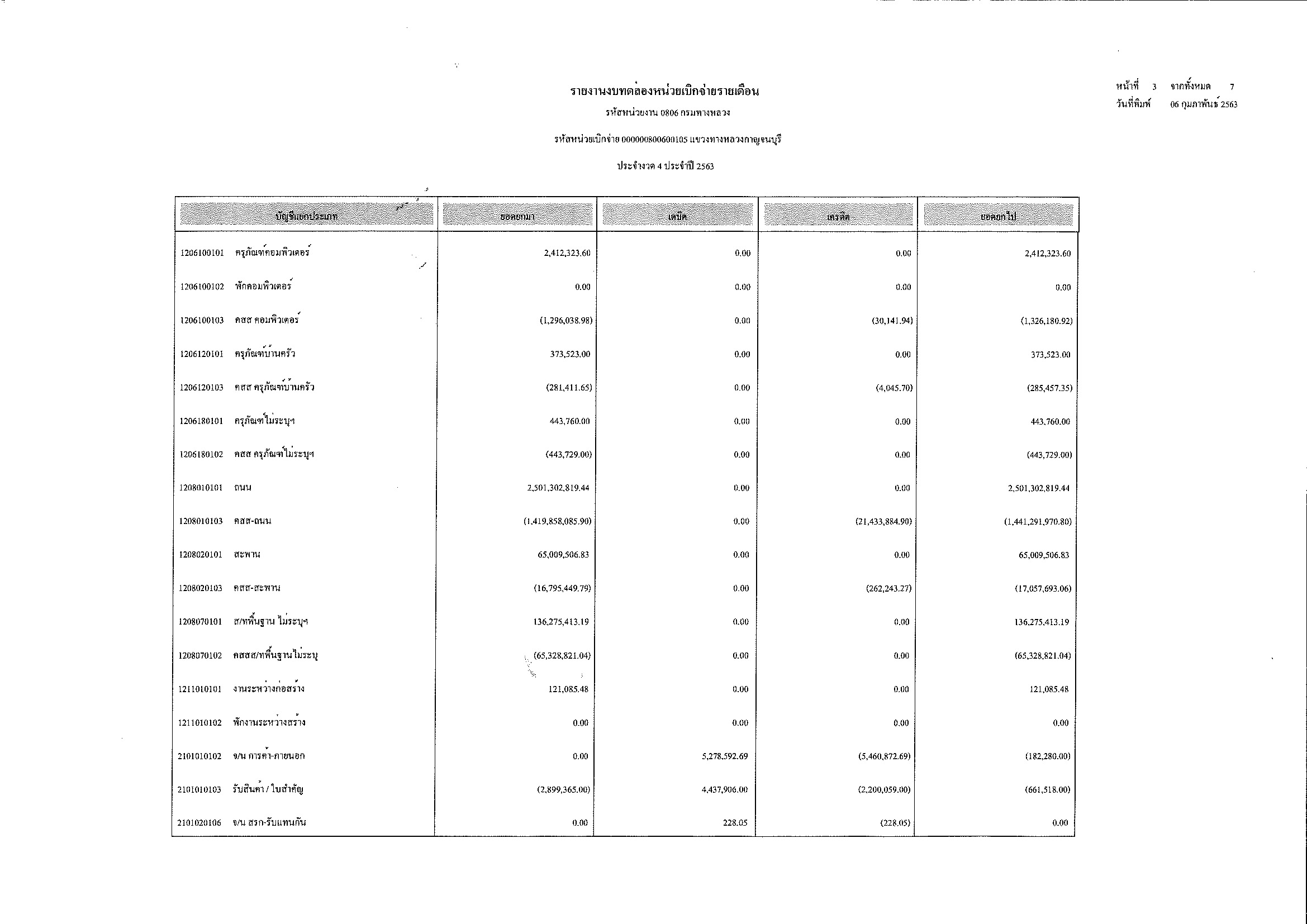 รายงานงบทดลองหน่วยเบิกจ่ายรายเดือน ประจำงวด 4 ประจำปีที่ 2563