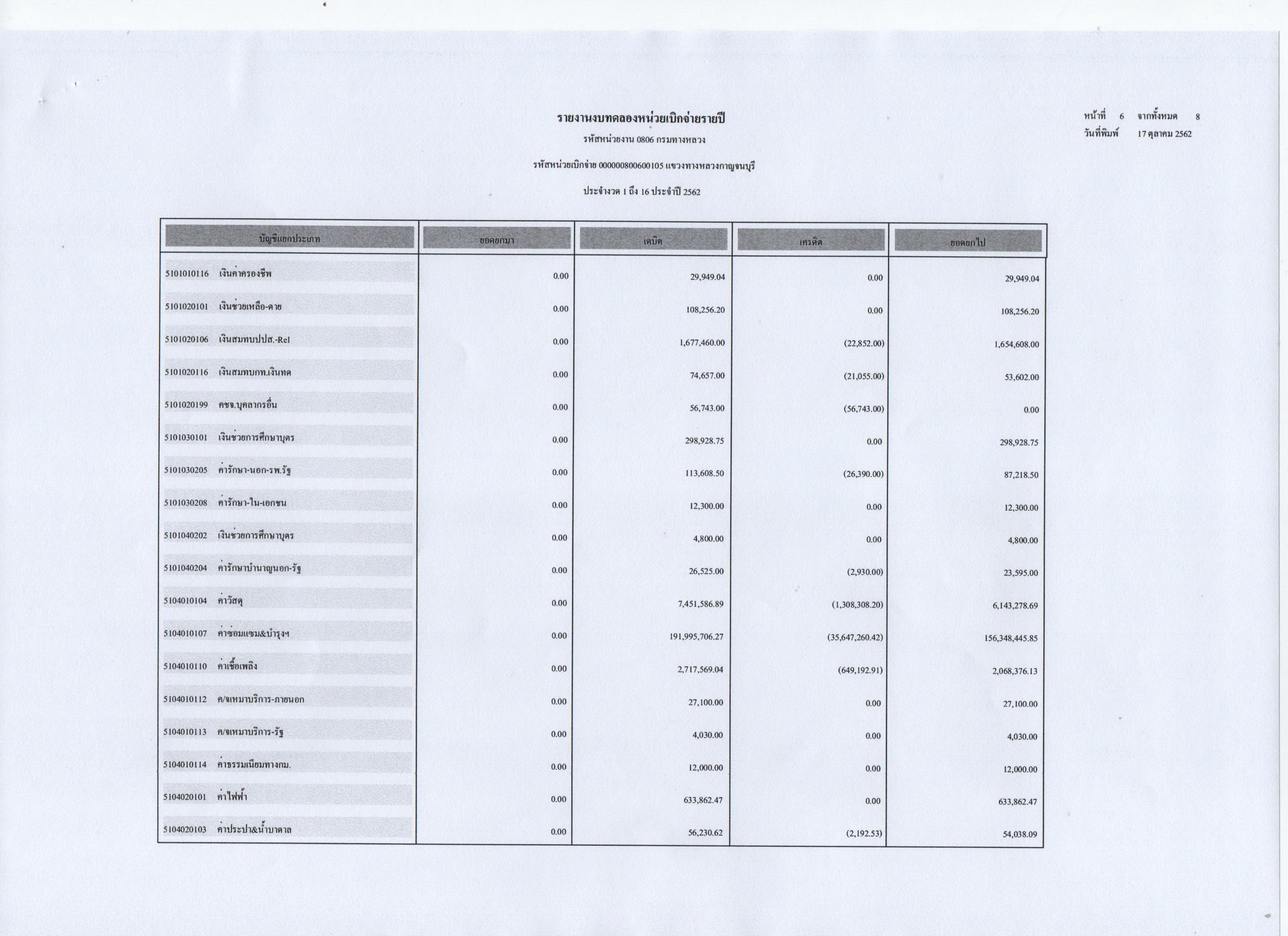 รายงานงบทดลองหน่วยเบิกจ่ายประจำปี 2562