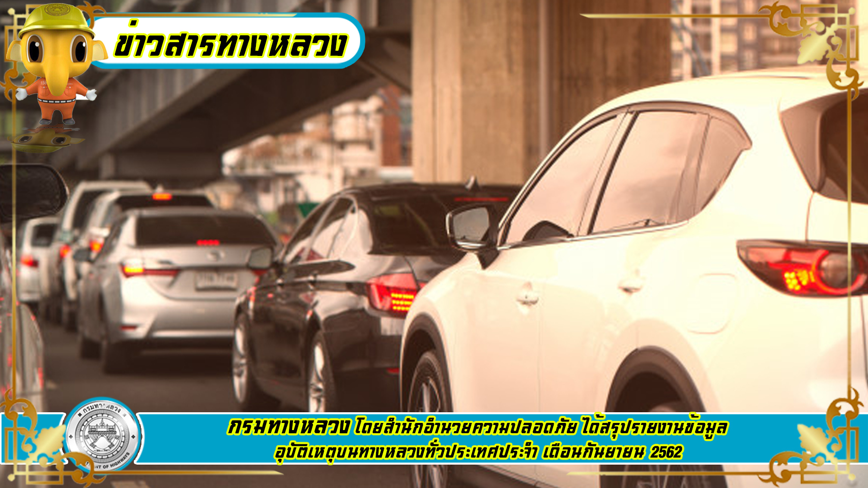 กรมทางหลวง สรุปอุบัติเหตุบนทางหลวงเดือนกันยายน 2562 พร้อมขอความร่วมมือปฏิบัติตามกฎจราจร พบอุบัติเหตุแจ้งสายด่วน 1586