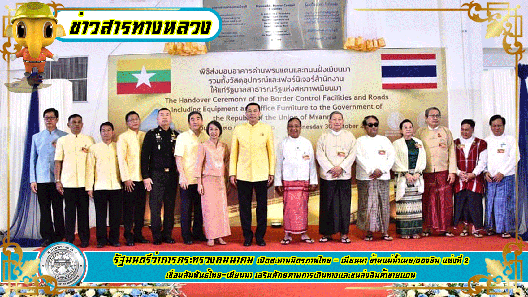 รัฐมนตรีว่าการกระทรวงคมนาคมเปิดสะพานมิตรภาพไทย - เมียนมา ข้ามแม่น้ำเมย/ตองยิน แห่งที่ 2 เชื่อมสัมพันธ์ไทย-เมียนมา เสริมศักยภาพการเดินทางและขนส่งสินค้าชายแดน
