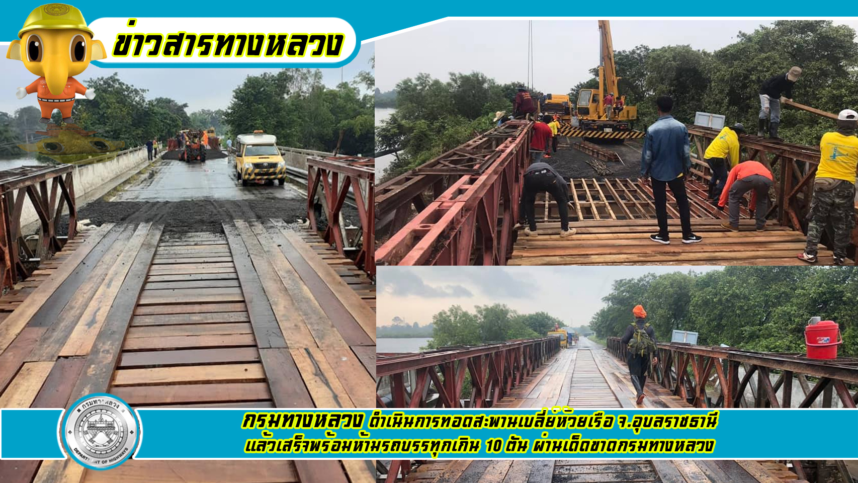 ผ่านได้แล้ว! กรมทางหลวง ดำเนินการทอดสะพานเบลี่ย์ห้วยเรือ จ.อุบลราชธานี แล้วเสร็จพร้อมห้ามรถบรรทุกเกิน 10 ตัน ผ่านเด็ดขาด กรมทางหลวง
