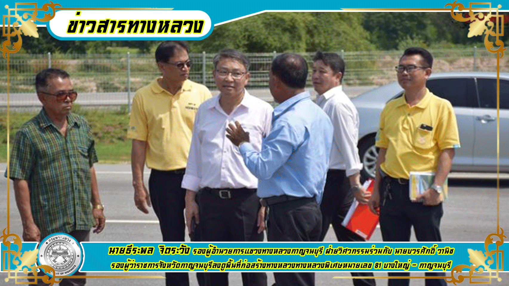 นายธีระพล จิตระวัง รองผู้อำนวยการแขวงทางหลวงกาญจนบุรี ฝ่ายวิศวกรรม ร่วมกับ นายบวรศักดิ์ วานิช รองผู้ว่าราชการจังหวัดกาญจนบุรีและเจ้าหน้าที่ในสังกัด ลงดูพื้นที่ก่อสร้างทางหลวงทางหลวงพิเศษหมายเลข 81 บางใหญ่ - กาญจนบุรี