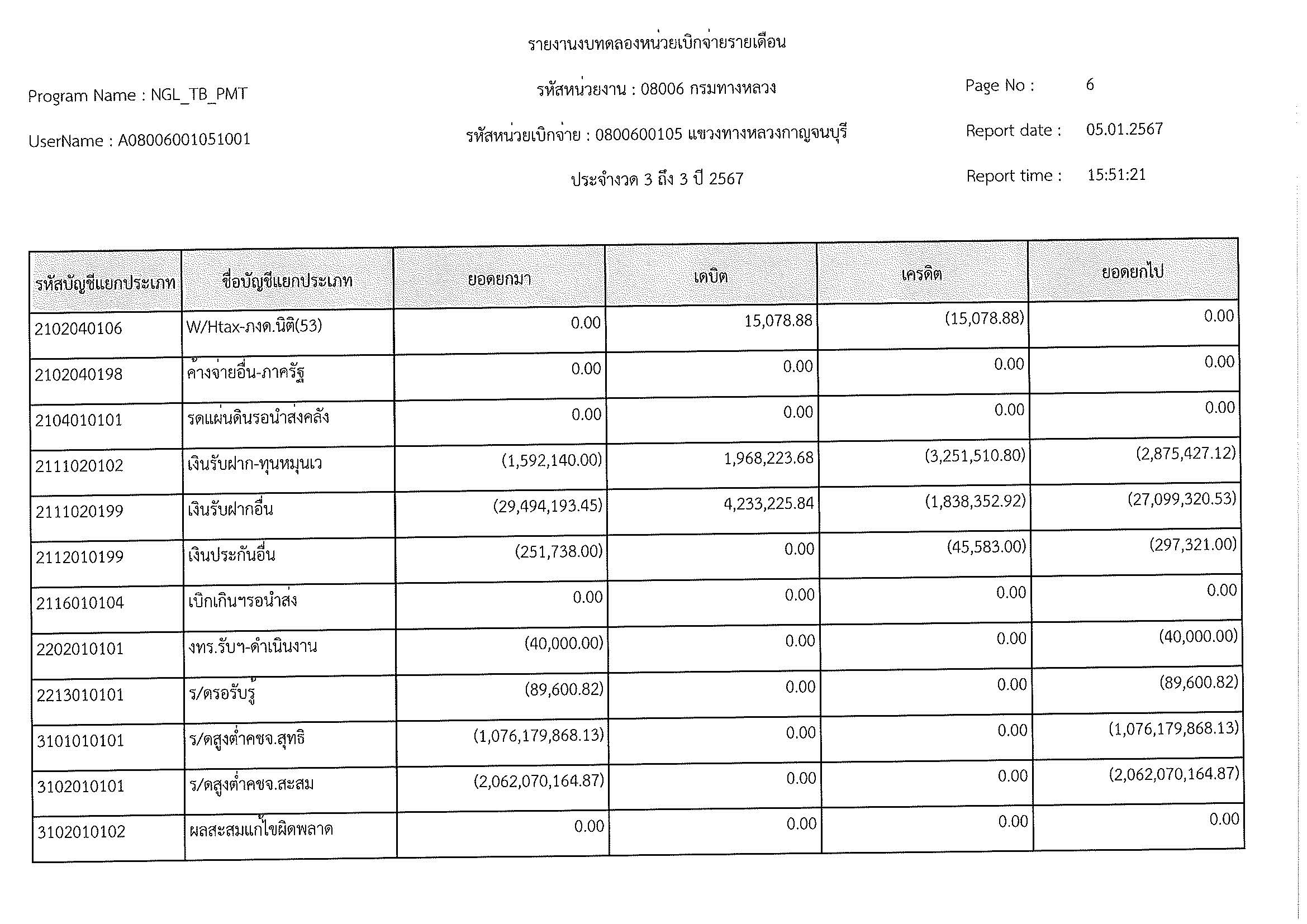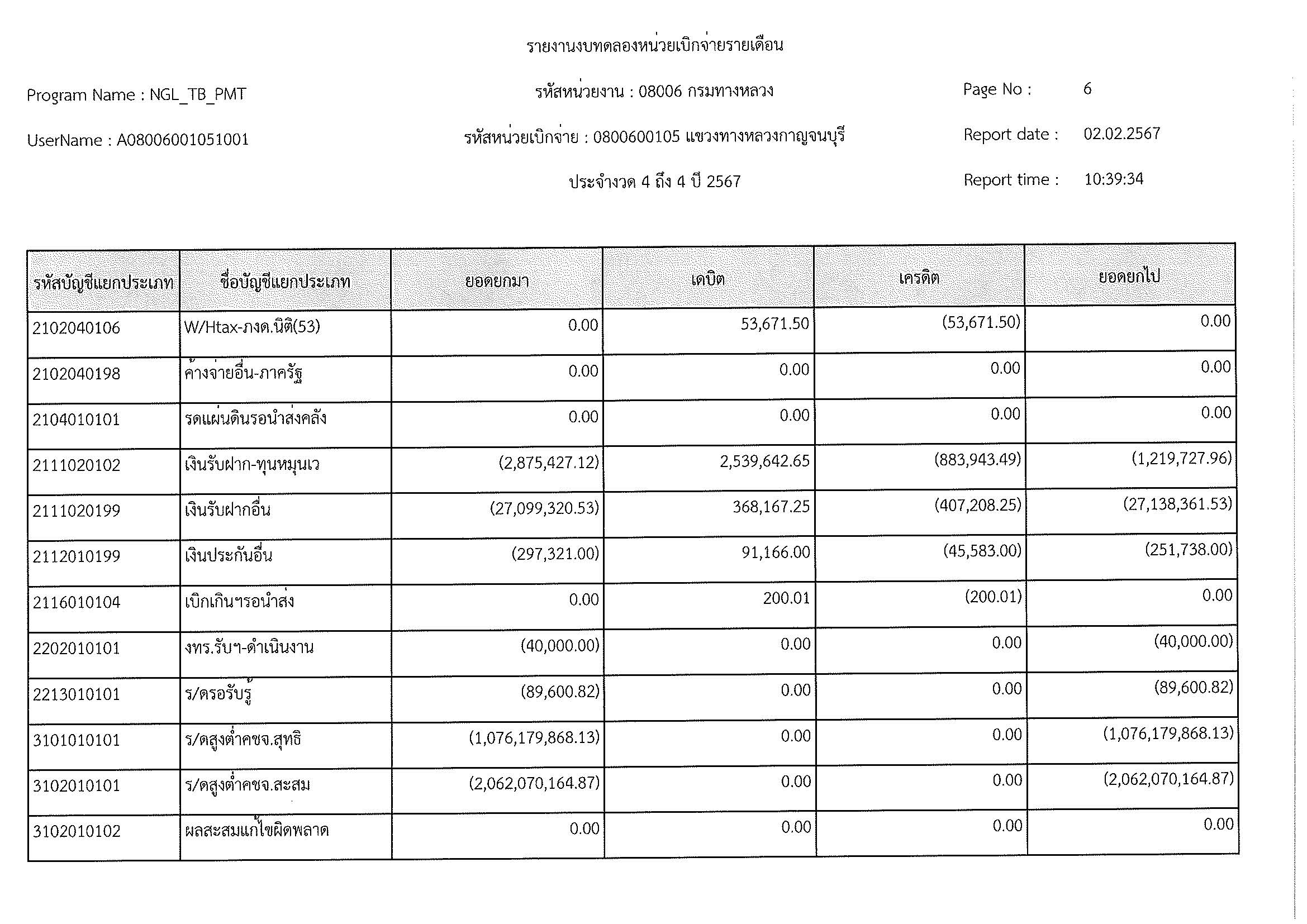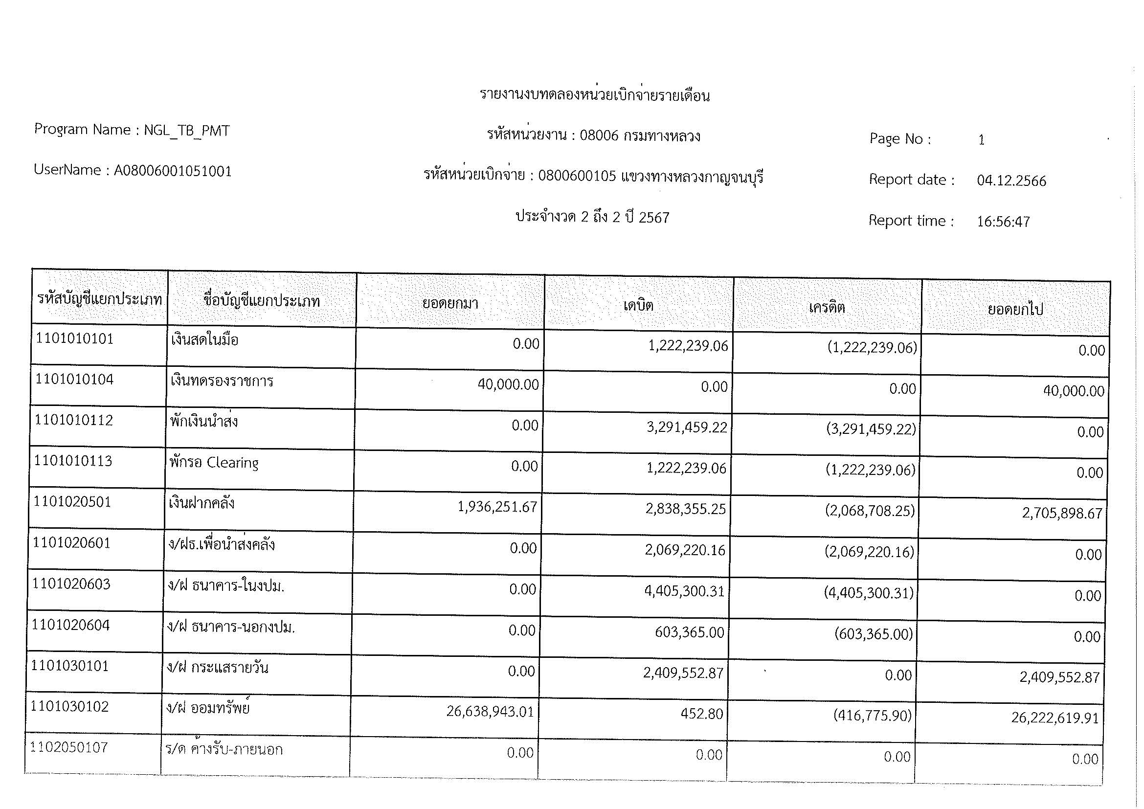 รายงานงบทดลองหน่วยเบิจจ่ายรายเดือน