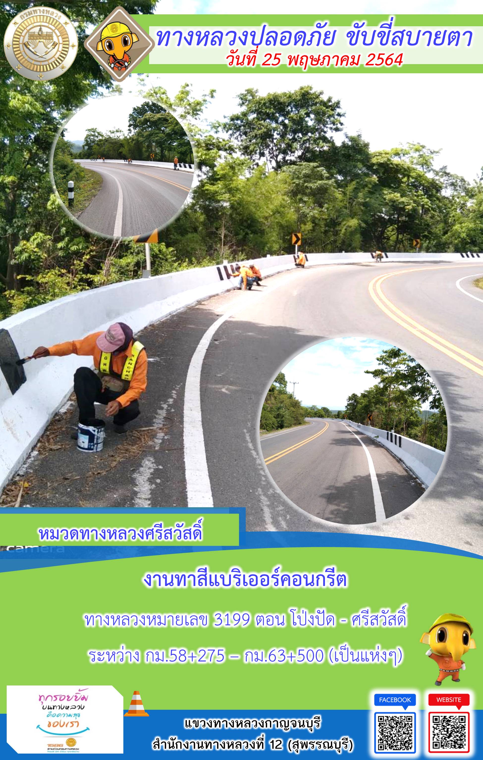 แขวงทางหลวงกาญจนบุรี โดยหมวดทางหลวงในสังกัดและงานอำนวยความปลอดภัย ปฏิบัติงาน ประจำวันที่ 25 พ.ค. 2564 #กรมทางหลวง #สายด่วนกรมทางหลวง1586 #แขวงทางหลวงกาญจนบุรี โทร 034-520-598