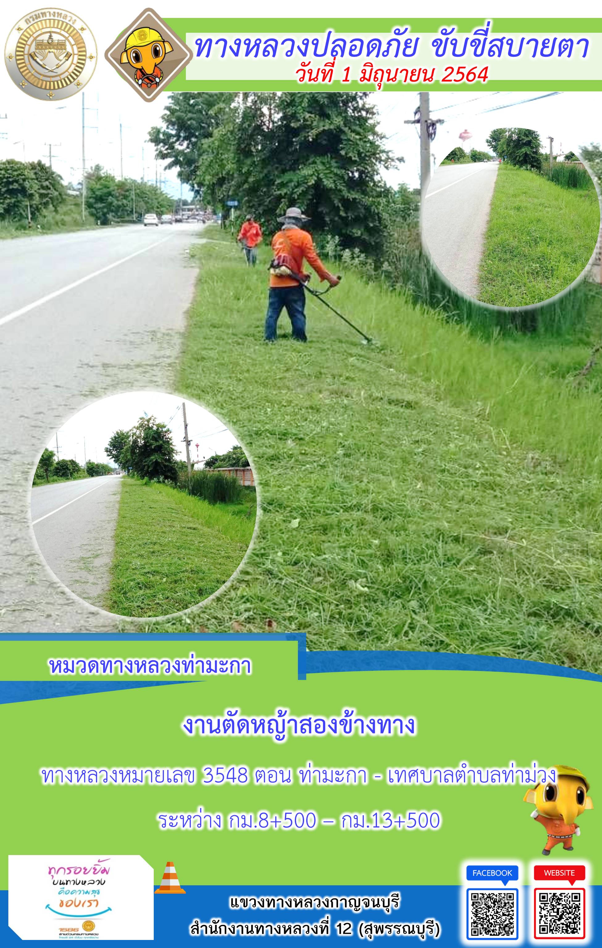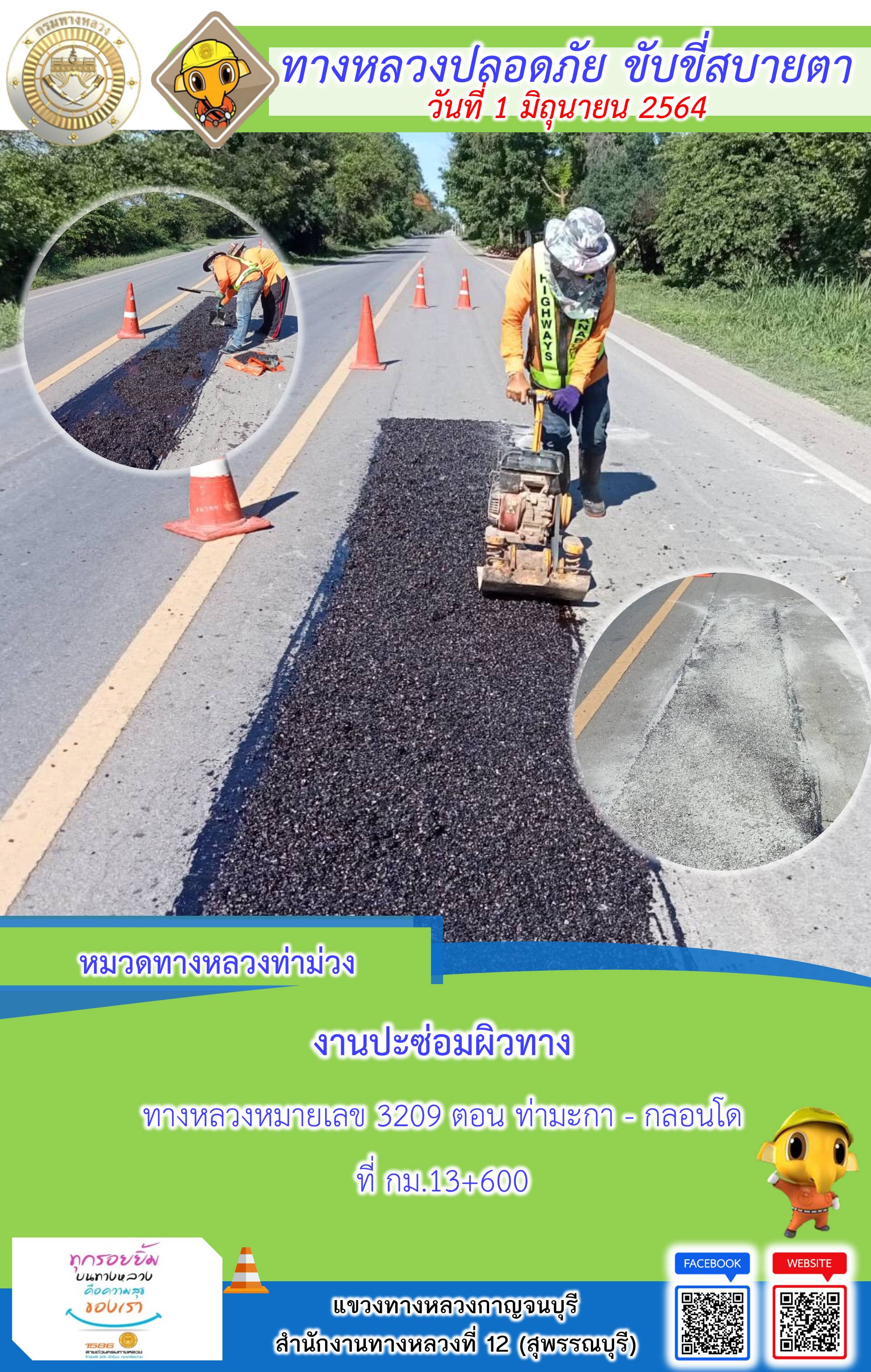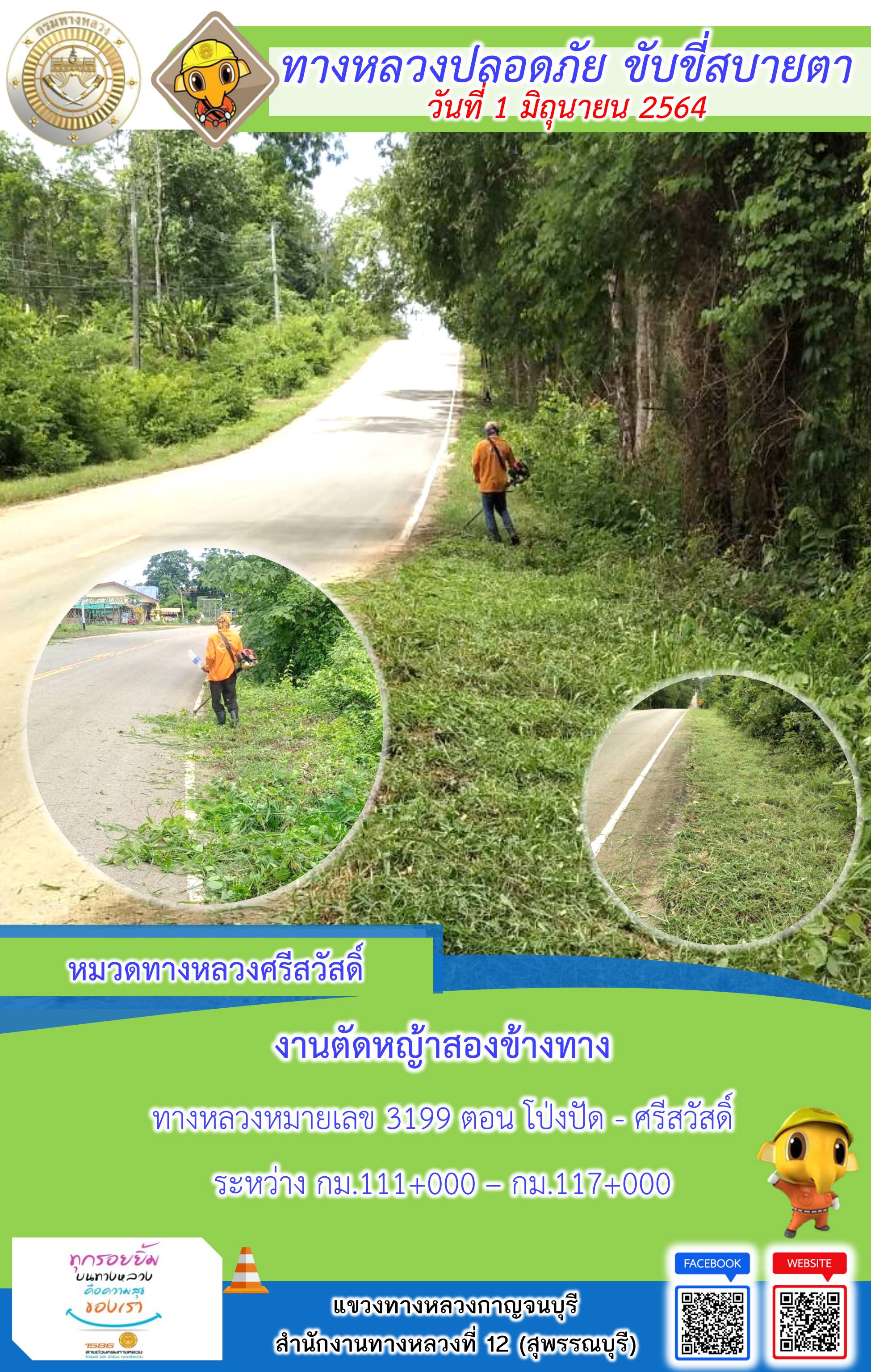 ข้อมูลภาพกิจกรรม : แขวงทางหลวงกาญจนบุรี โดยหมวดทางหลวงในสังกัดและงานอำนวยความปลอดภัย ปฏิบัติงาน ประจำวันที่ 1 มิ.ย. 2564 #กรมทางหลวง #สายด่วนกรมทางหลวง1586 #แขวงทางหลวงกาญจนบุรี โทร 034-520-598