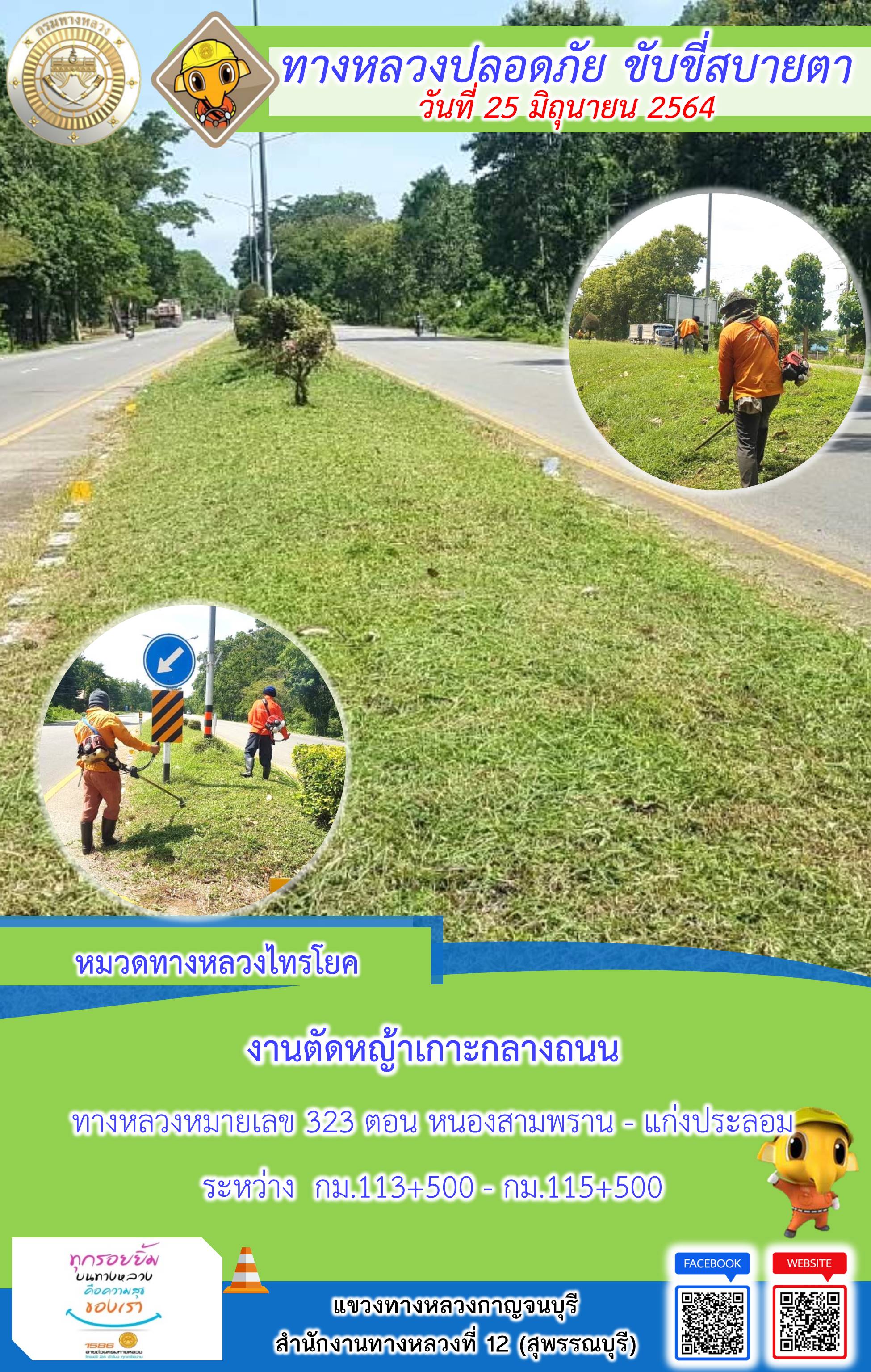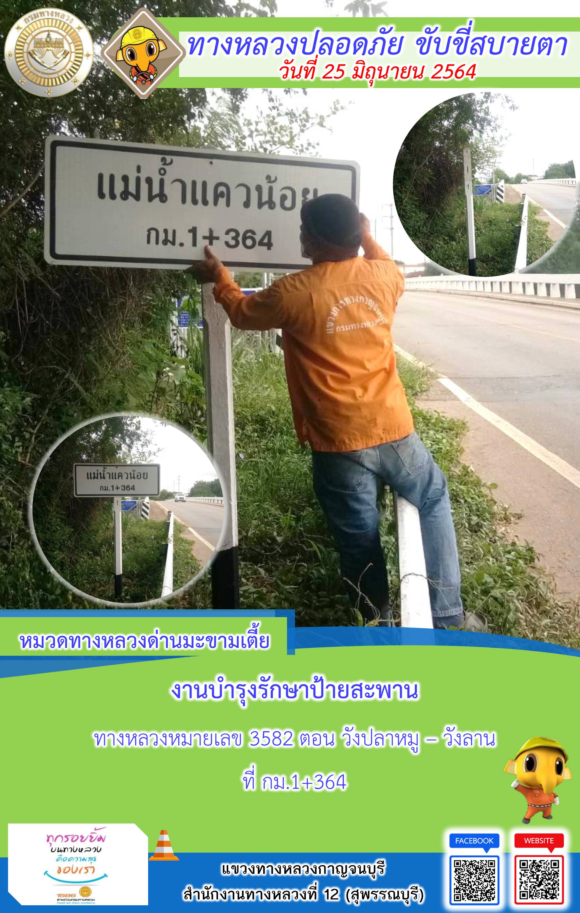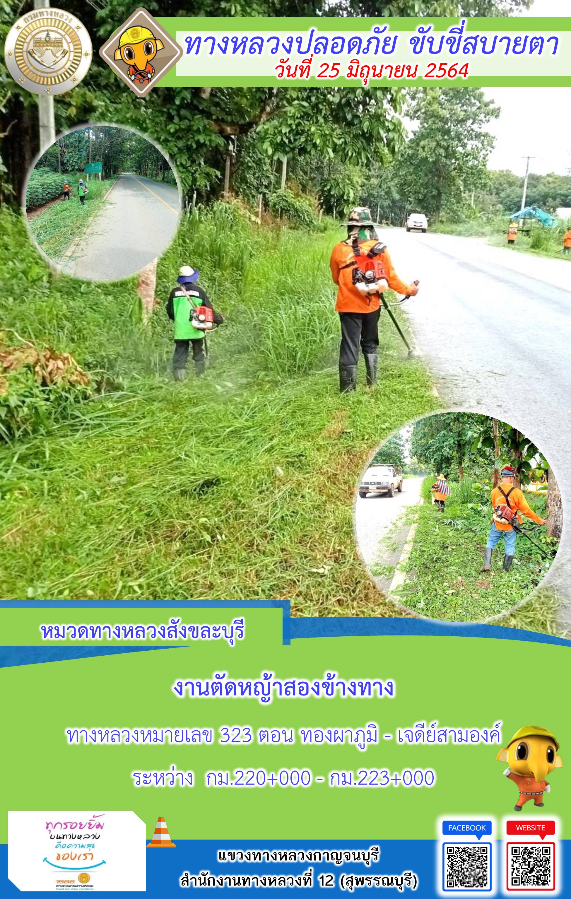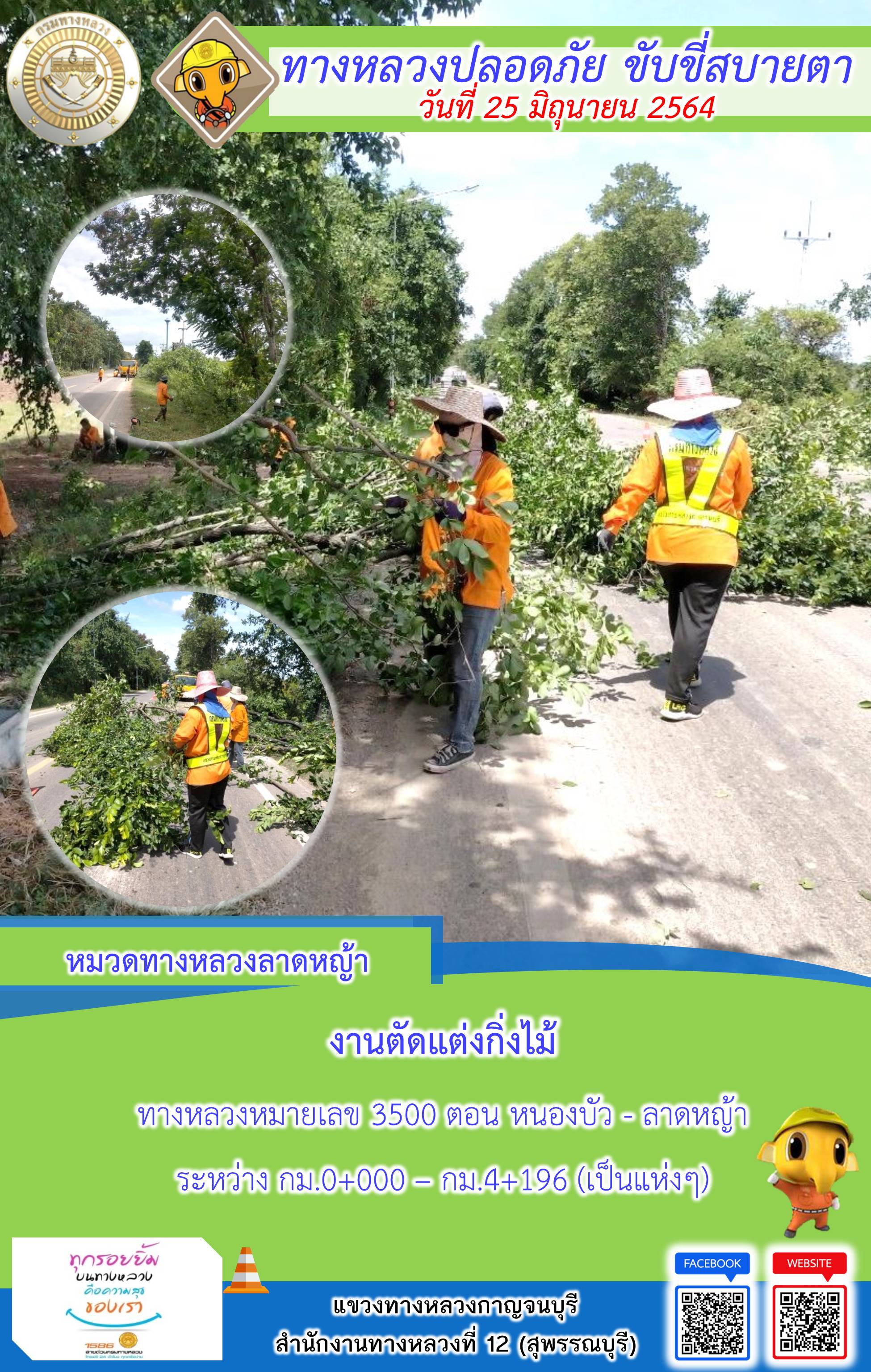 ข้อมูลภาพกิจกรรม : แขวงทางหลวงกาญจนบุรี โดยหมวดทางหลวงในสังกัดและงานอำนวยความปลอดภัย ปฏิบัติงาน ประจำวันที่ 25 มิ.ย. 2564 #กรมทางหลวง #สายด่วนกรมทางหลวง1586 #แขวงทางหลวงกาญจนบุรี โทร 034-520-598