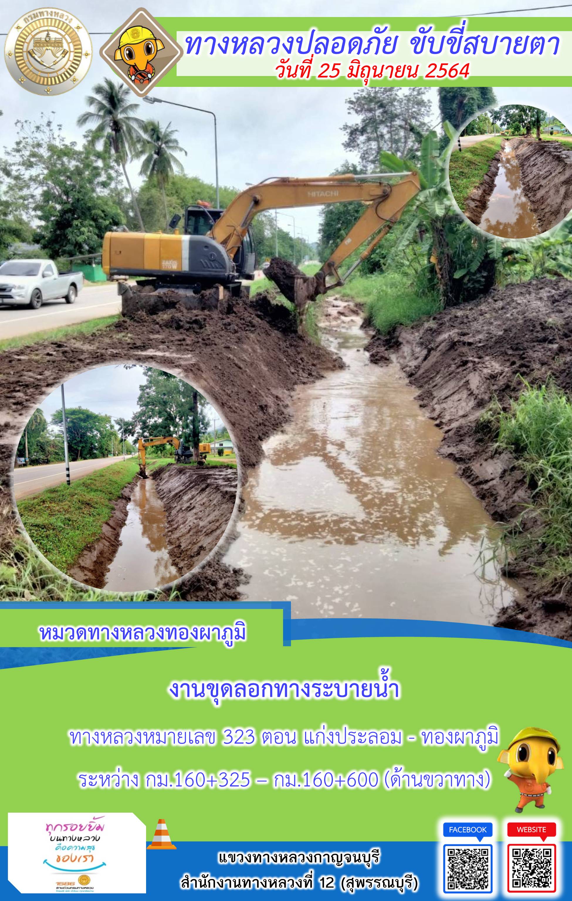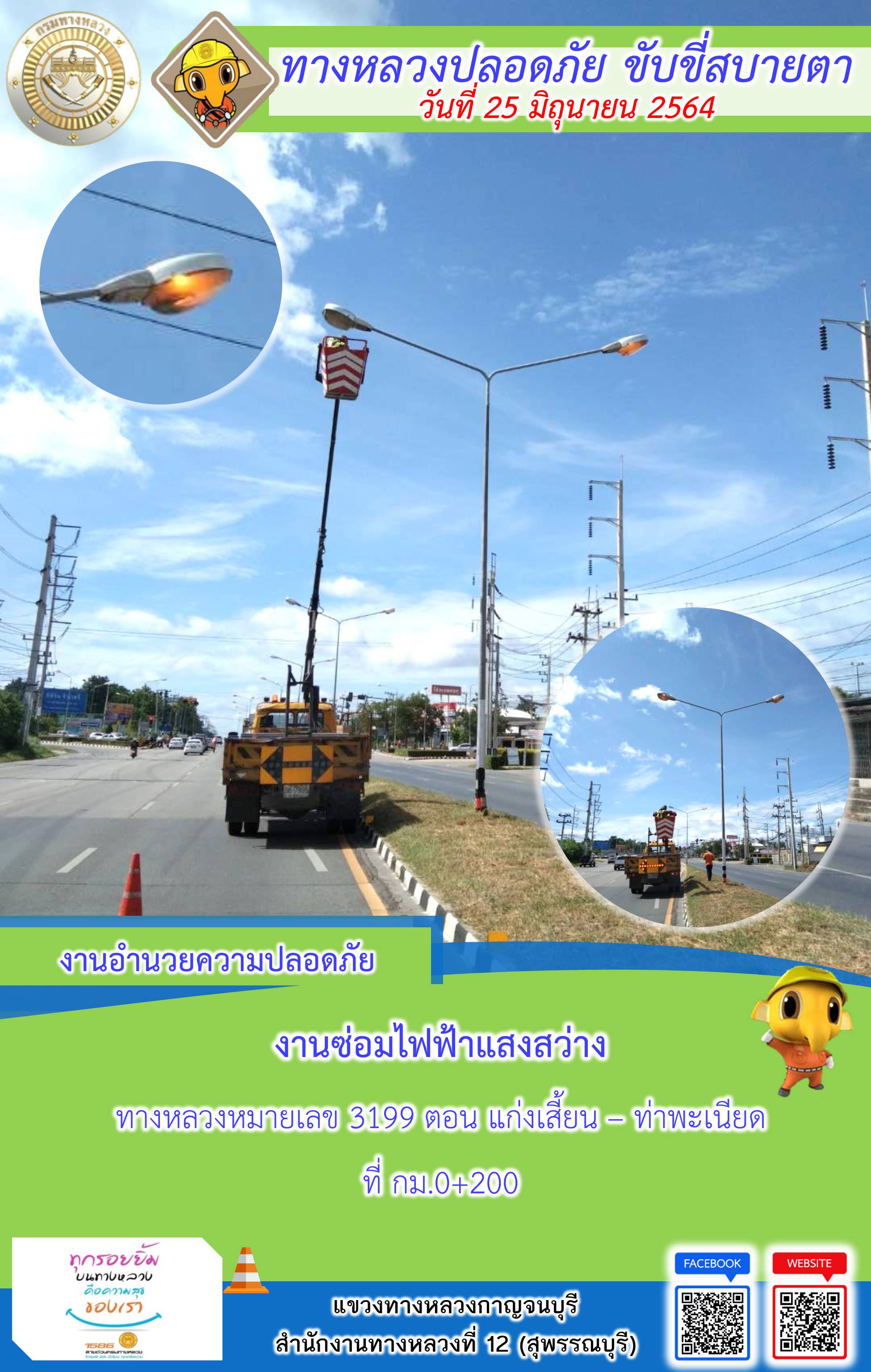 แขวงทางหลวงกาญจนบุรี โดยหมวดทางหลวงในสังกัดและงานอำนวยความปลอดภัย ปฏิบัติงาน ประจำวันที่ 25 มิ.ย. 2564 #กรมทางหลวง #สายด่วนกรมทางหลวง1586 #แขวงทางหลวงกาญจนบุรี โทร 034-520-598