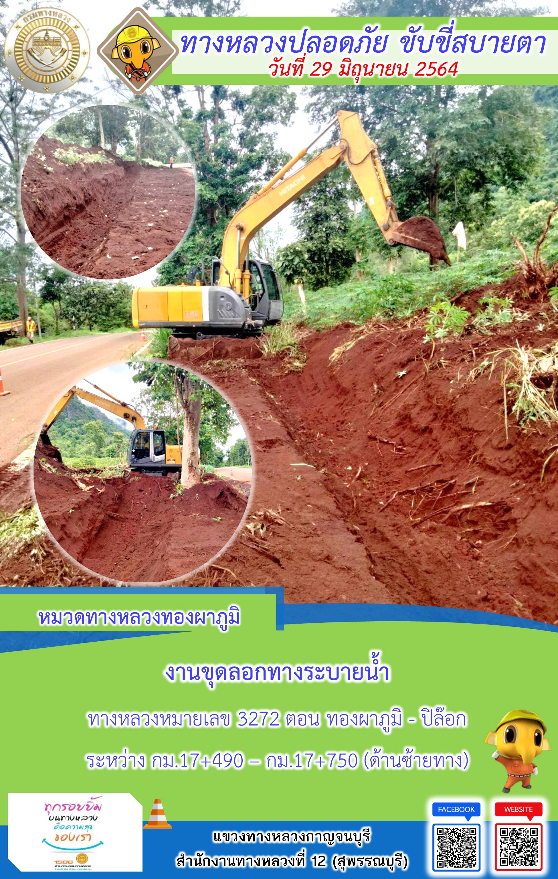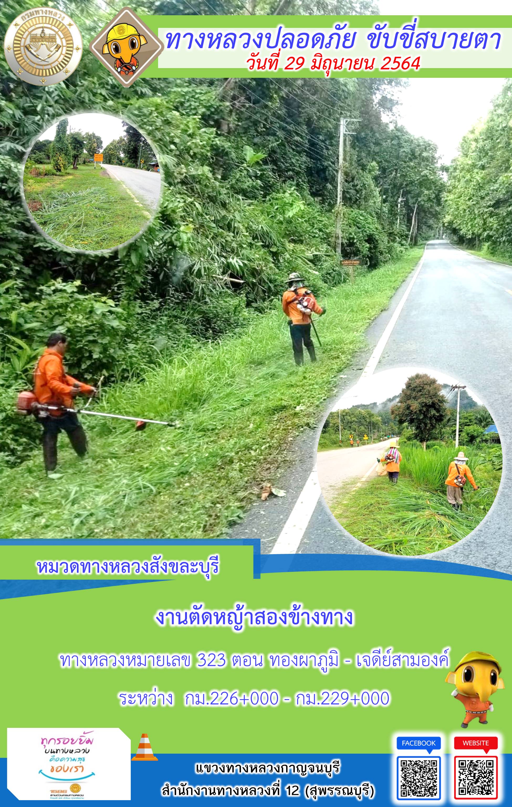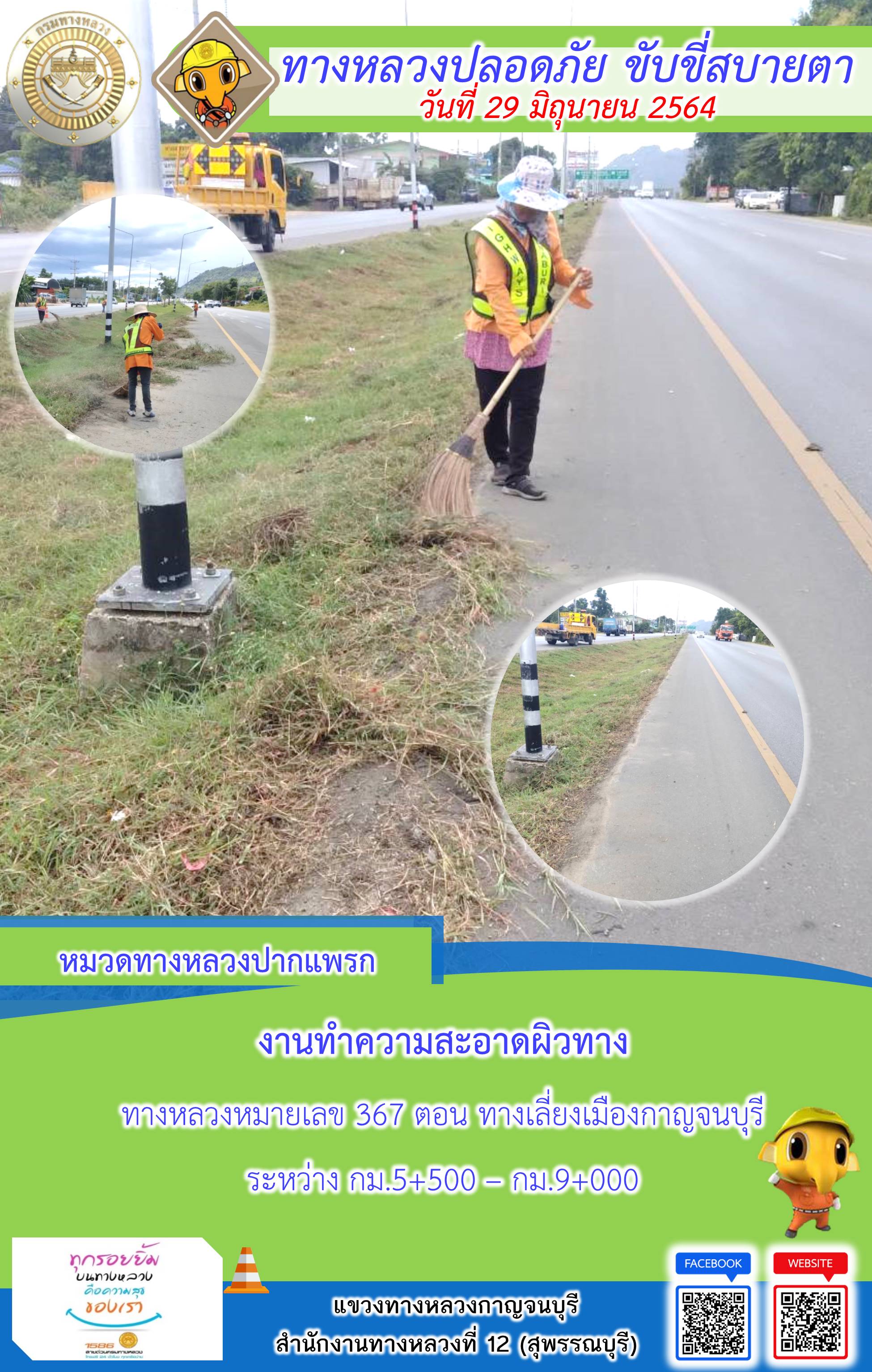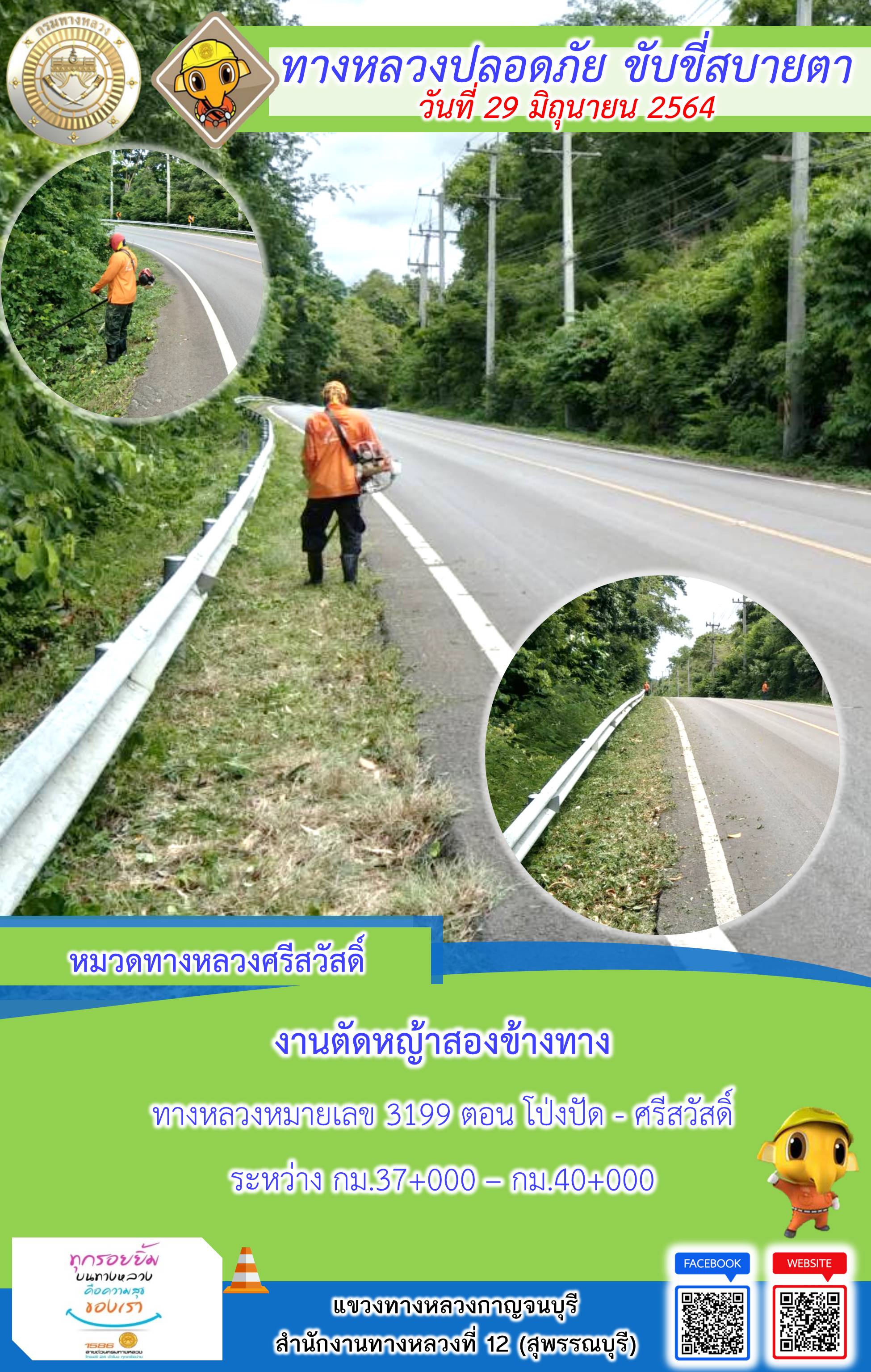 ข้อมูลภาพกิจกรรม : แขวงทางหลวงกาญจนบุรี โดยหมวดทางหลวงในสังกัดและงานอำนวยความปลอดภัย ปฏิบัติงาน ประจำวันที่ 29 มิ.ย. 2564 #กรมทางหลวง #สายด่วนกรมทางหลวง1586 #แขวงทางหลวงกาญจนบุรี โทร 034-520-598