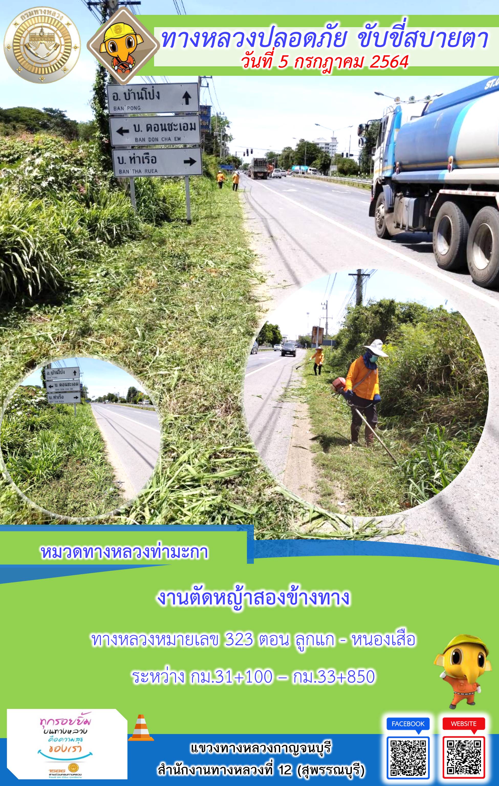 แขวงทางหลวงกาญจนบุรี โดยหมวดทางหลวงในสังกัดและงานอำนวยความปลอดภัย ปฏิบัติงาน ประจำวันที่ 5 ก.ค. 2564 #กรมทางหลวง #สายด่วนกรมทางหลวง1586 #แขวงทางหลวงกาญจนบุรี โทร 034-520-598