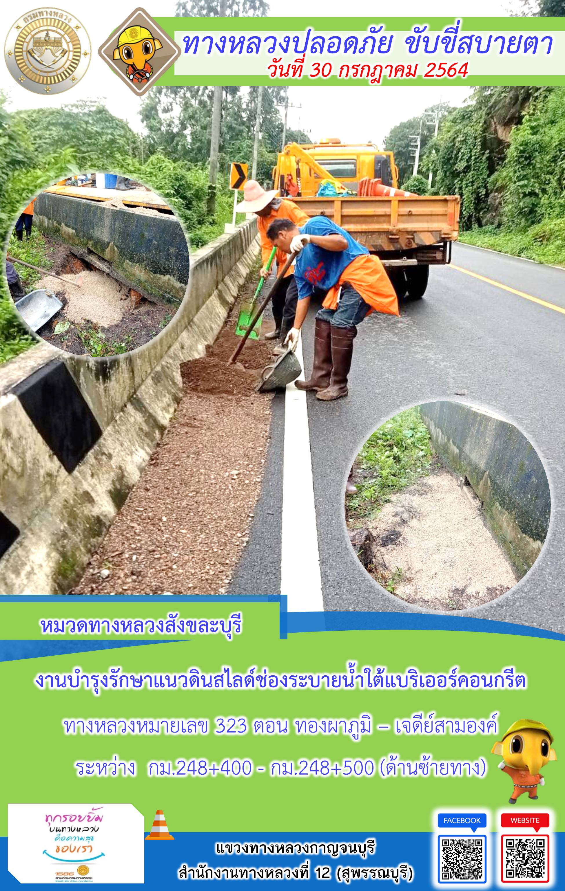 แขวงทางหลวงกาญจนบุรี โดยหมวดทางหลวงในสังกัดและงานอำนวยความปลอดภัย ปฏิบัติงาน ประจำวันที่ 30 ก.ค. 2564 #กรมทางหลวง #สายด่วนกรมทางหลวง1586 #แขวงทางหลวงกาญจนบุรี โทร 034-520-598