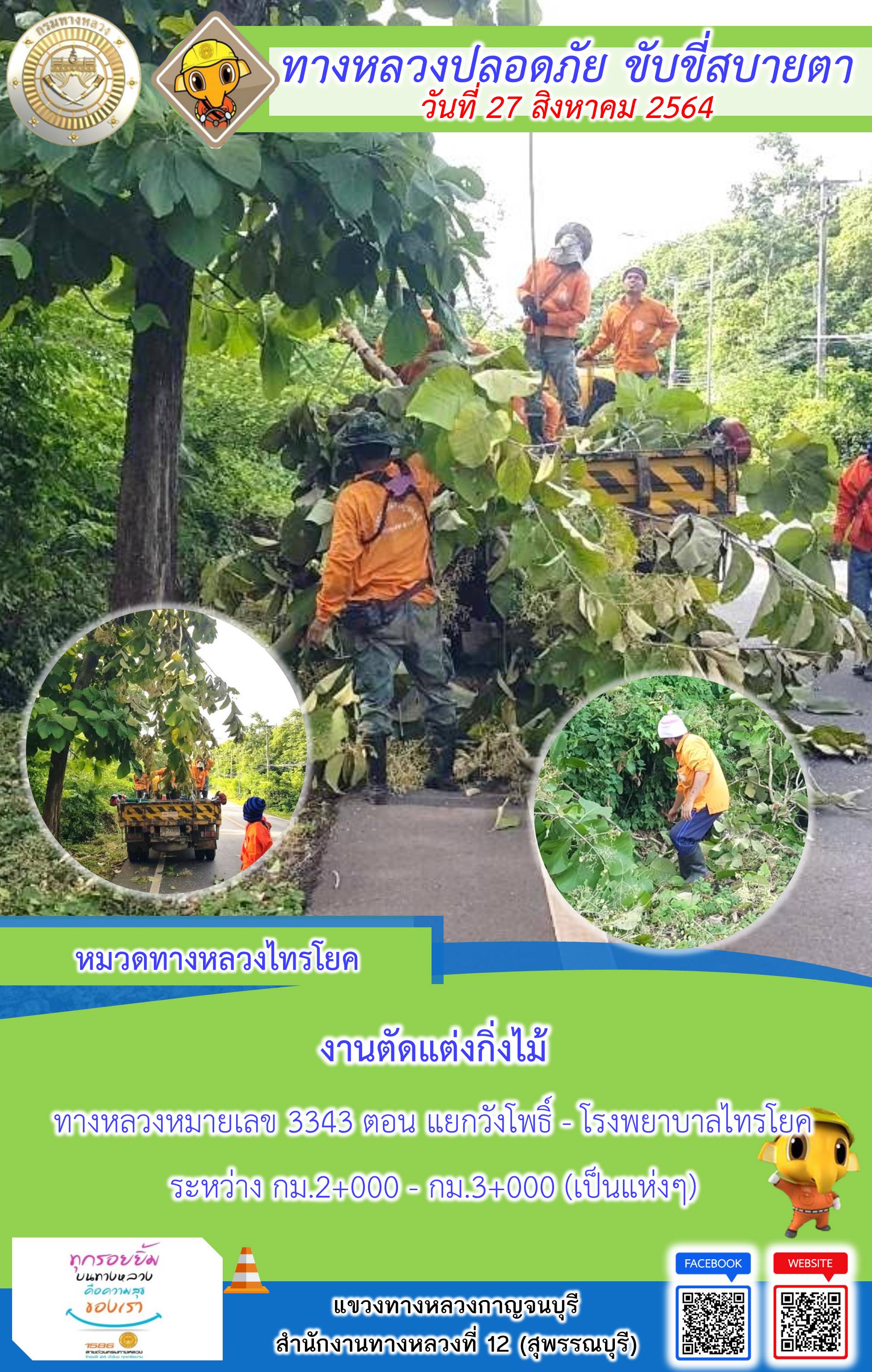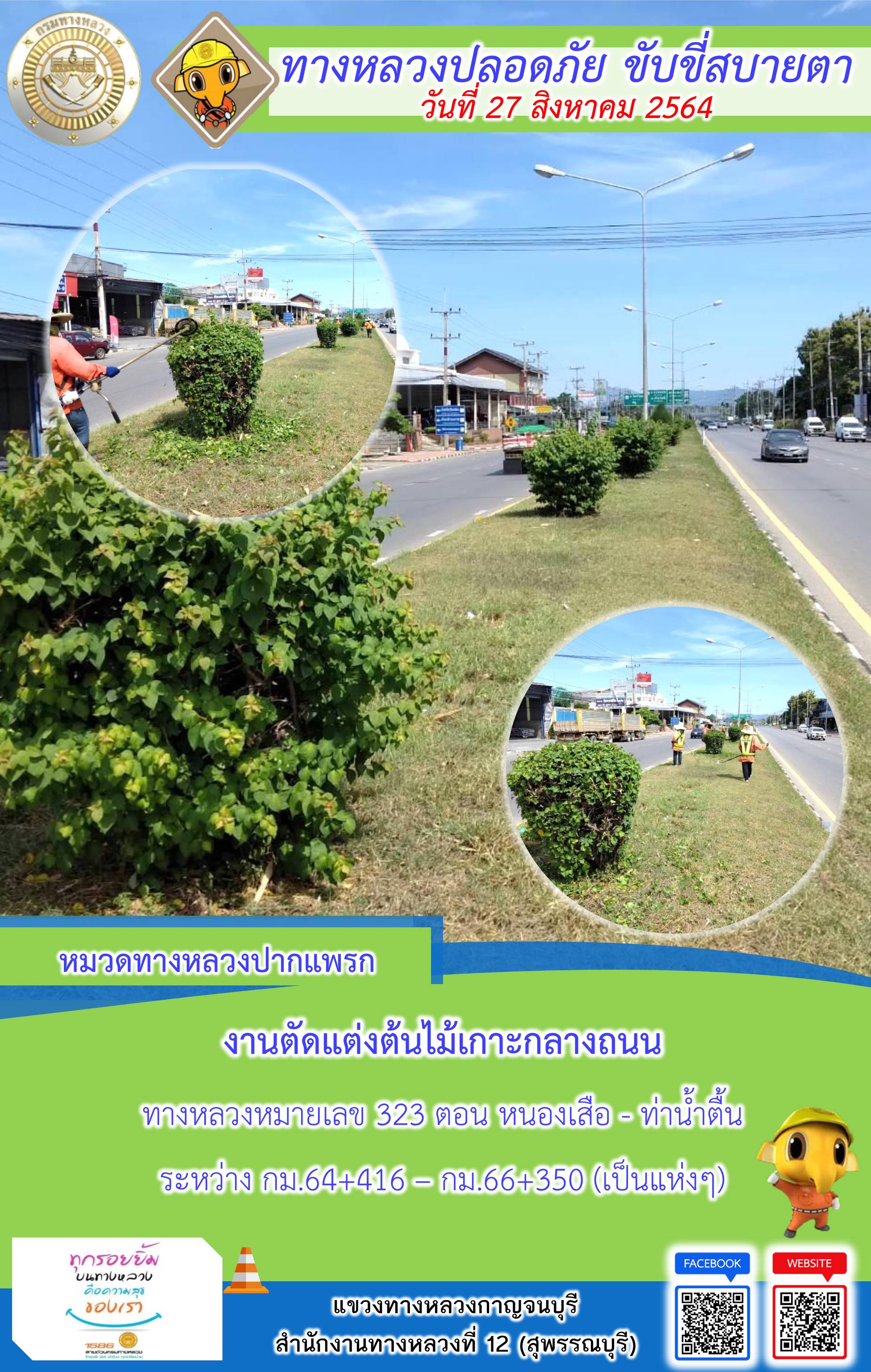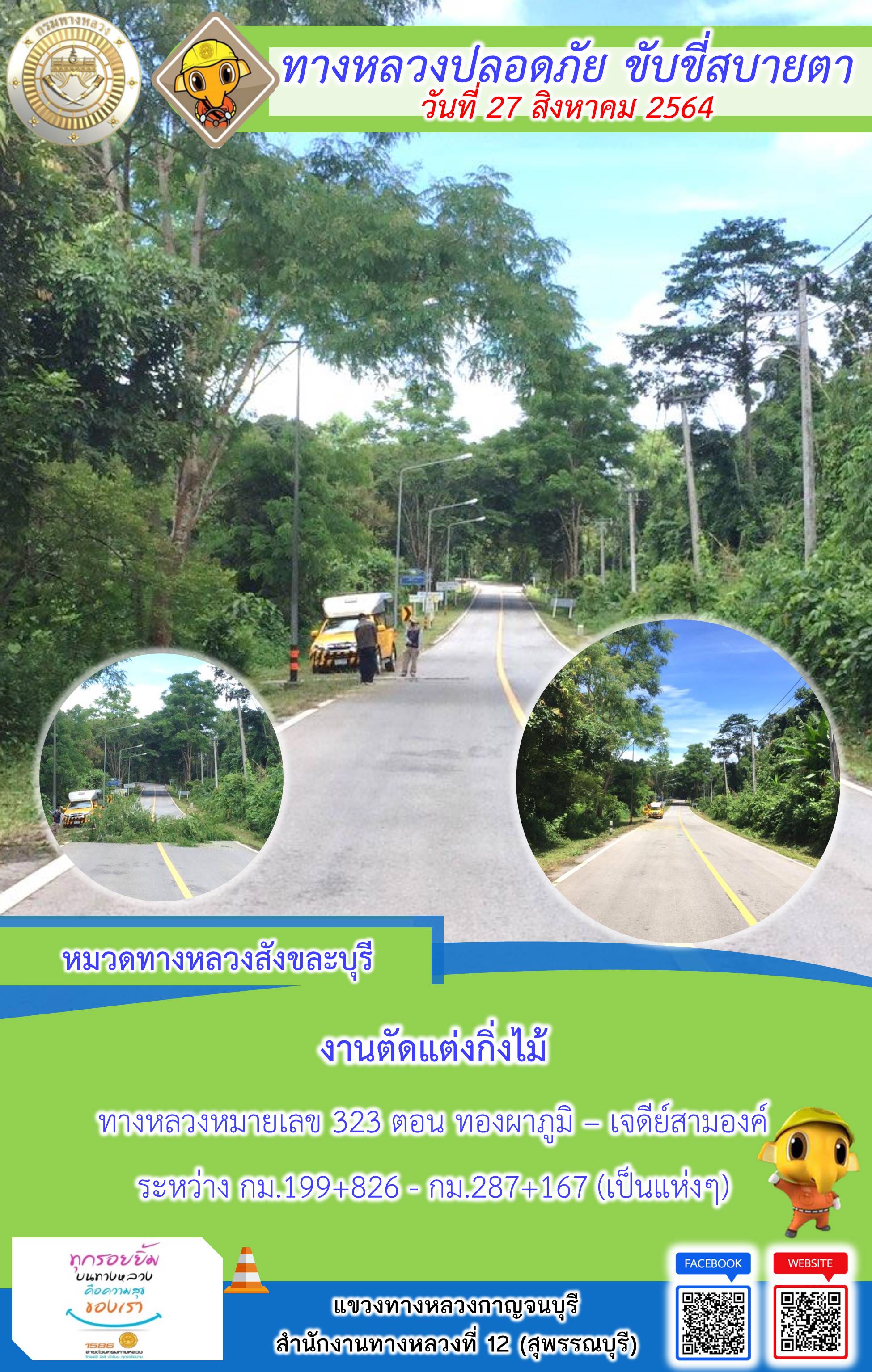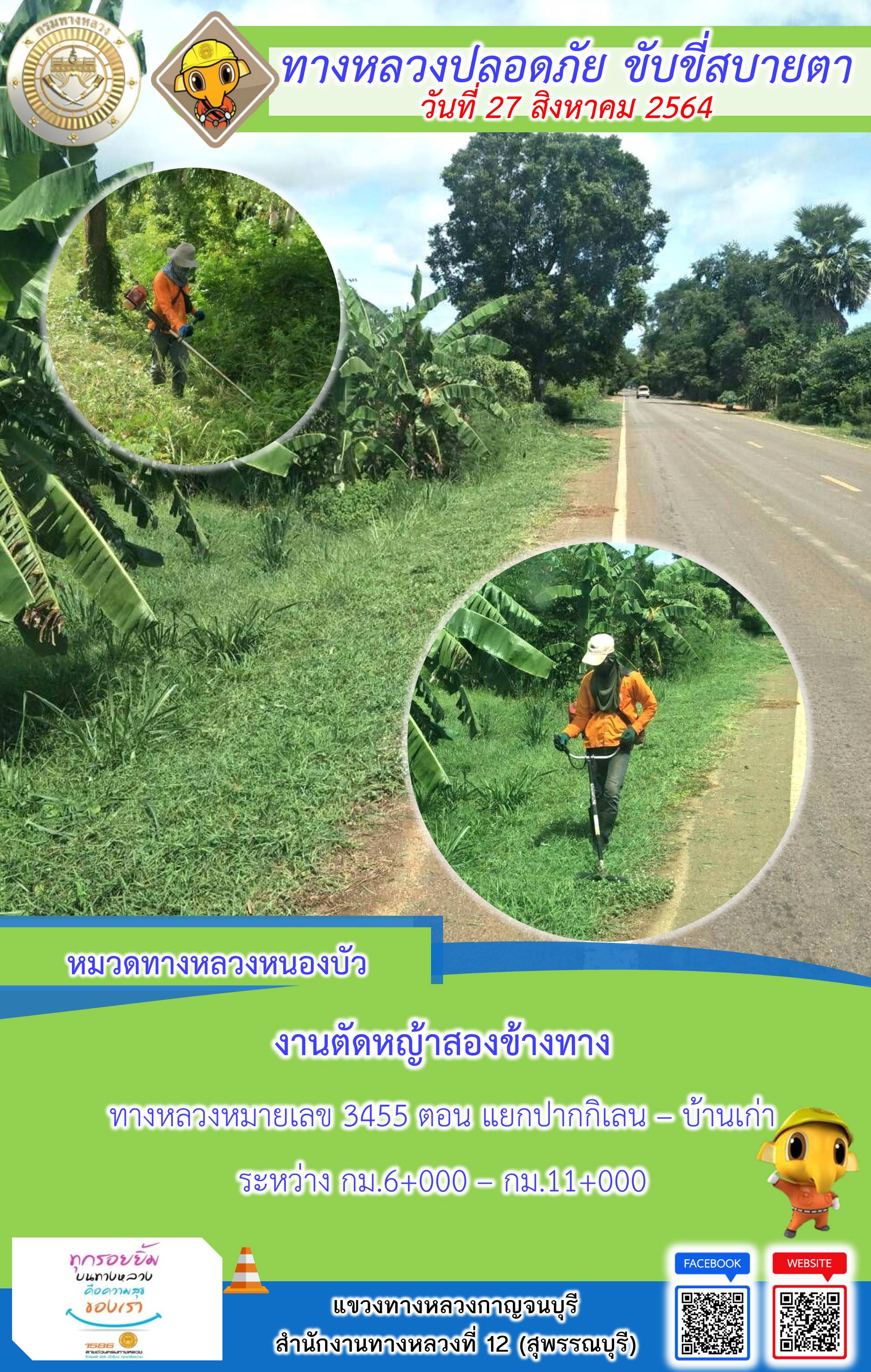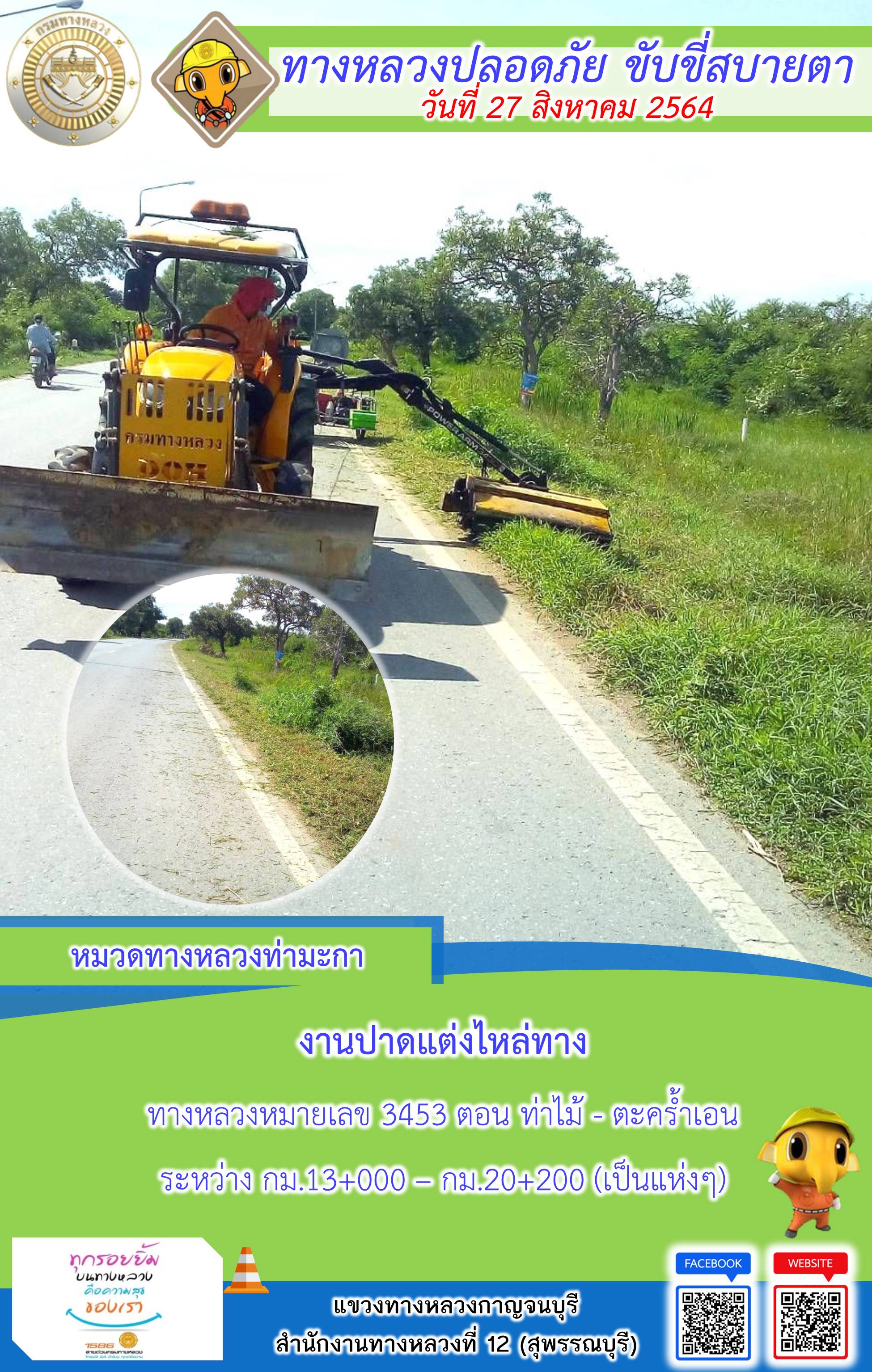 ข้อมูลภาพกิจกรรม : แขวงทางหลวงกาญจนบุรี โดยหมวดทางหลวงในสังกัดและงานอำนวยความปลอดภัย ปฏิบัติงาน ประจำวันที่ 27 ส.ค. 2564 #กรมทางหลวง #สายด่วนกรมทางหลวง1586 #แขวงทางหลวงกาญจนบุรี โทร 034-520-598