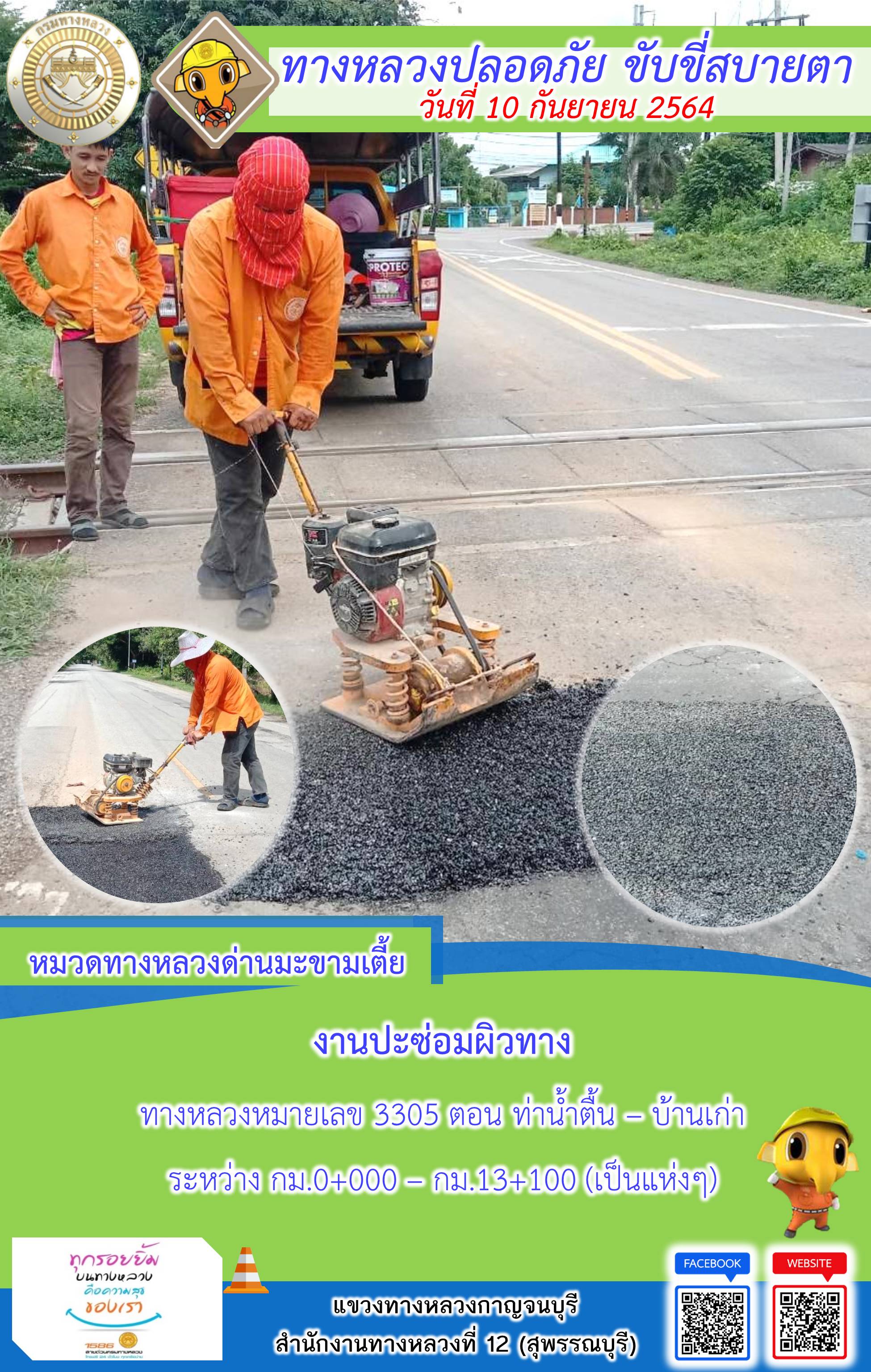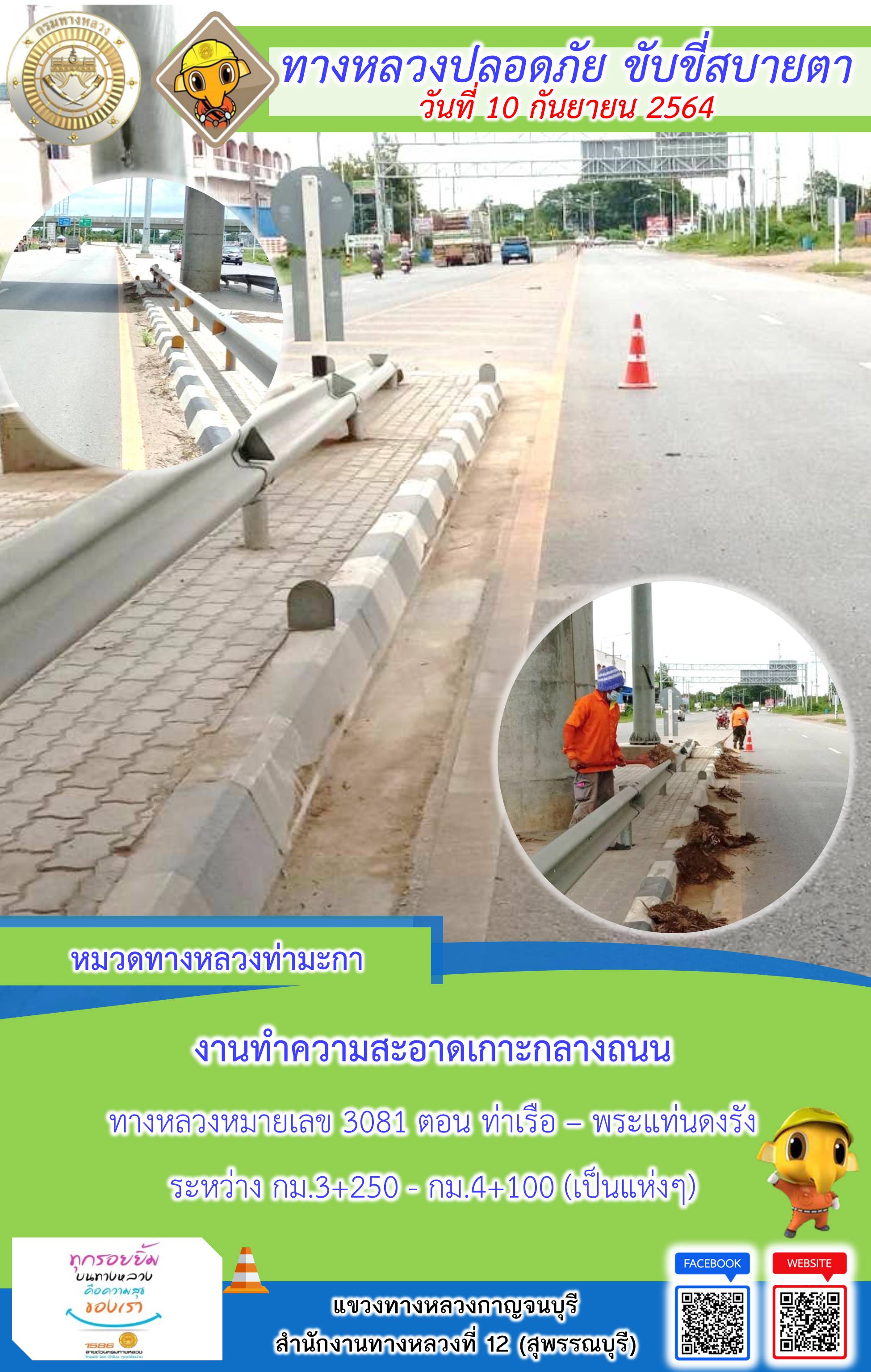 ข้อมูลภาพกิจกรรม : แขวงทางหลวงกาญจนบุรี โดยหมวดทางหลวงในสังกัดและงานอำนวยความปลอดภัย ปฏิบัติงาน ประจำวันที่ 10 ก.ย. 2564 #กรมทางหลวง #สายด่วนกรมทางหลวง1586 #แขวงทางหลวงกาญจนบุรี โทร 034-520-598