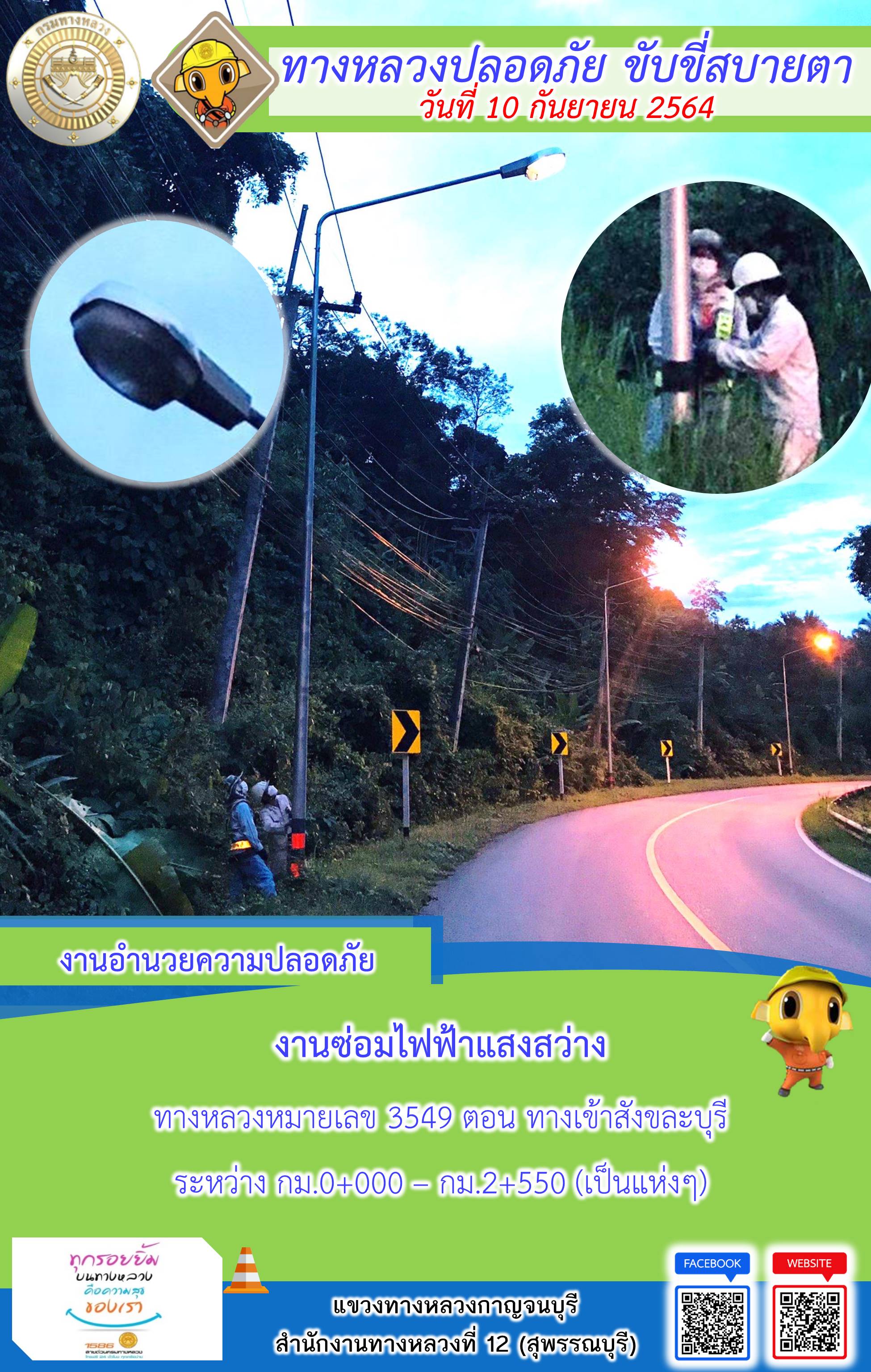 แขวงทางหลวงกาญจนบุรี โดยหมวดทางหลวงในสังกัดและงานอำนวยความปลอดภัย ปฏิบัติงาน ประจำวันที่ 10 ก.ย. 2564 #กรมทางหลวง #สายด่วนกรมทางหลวง1586 #แขวงทางหลวงกาญจนบุรี โทร 034-520-598