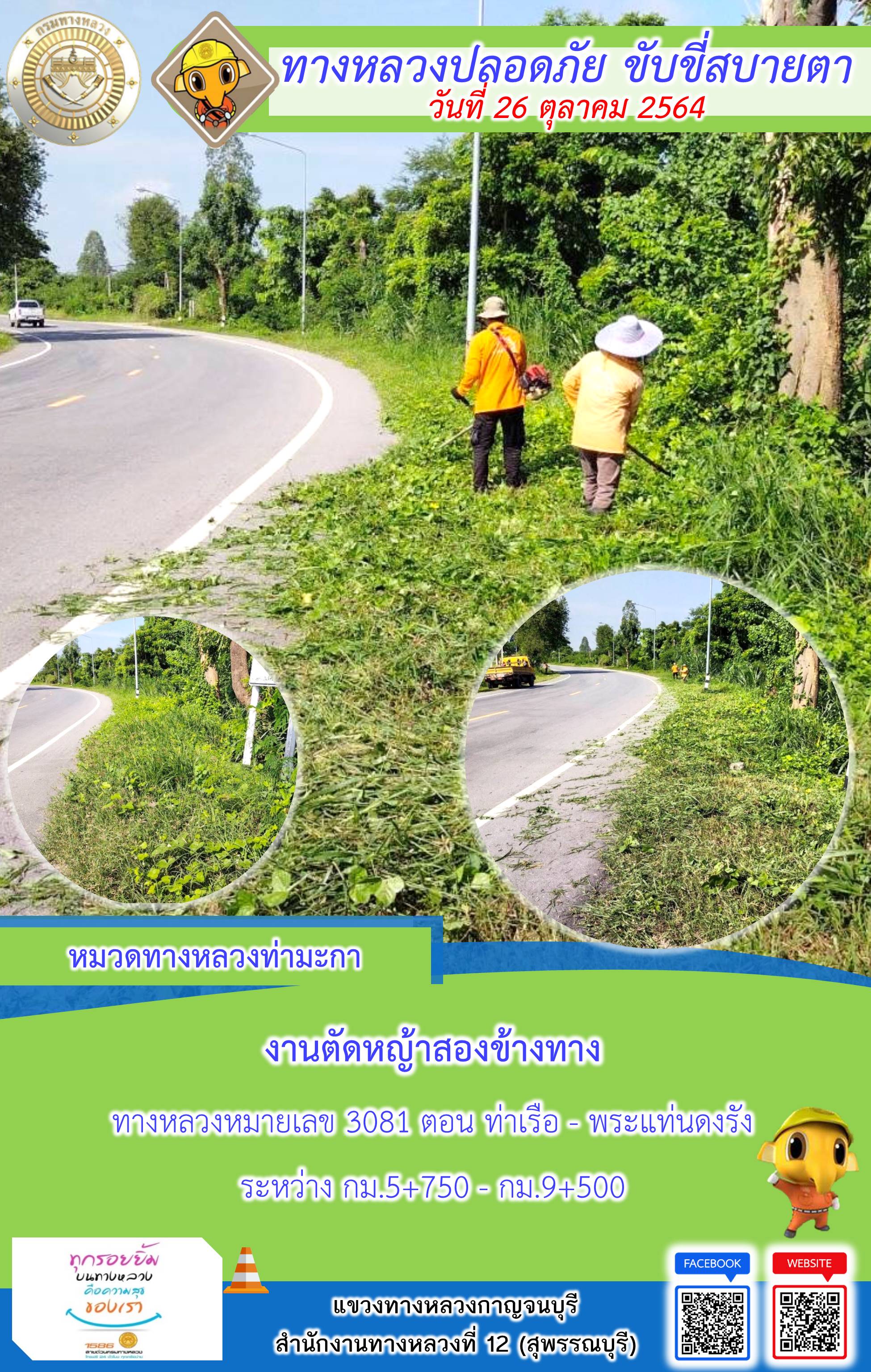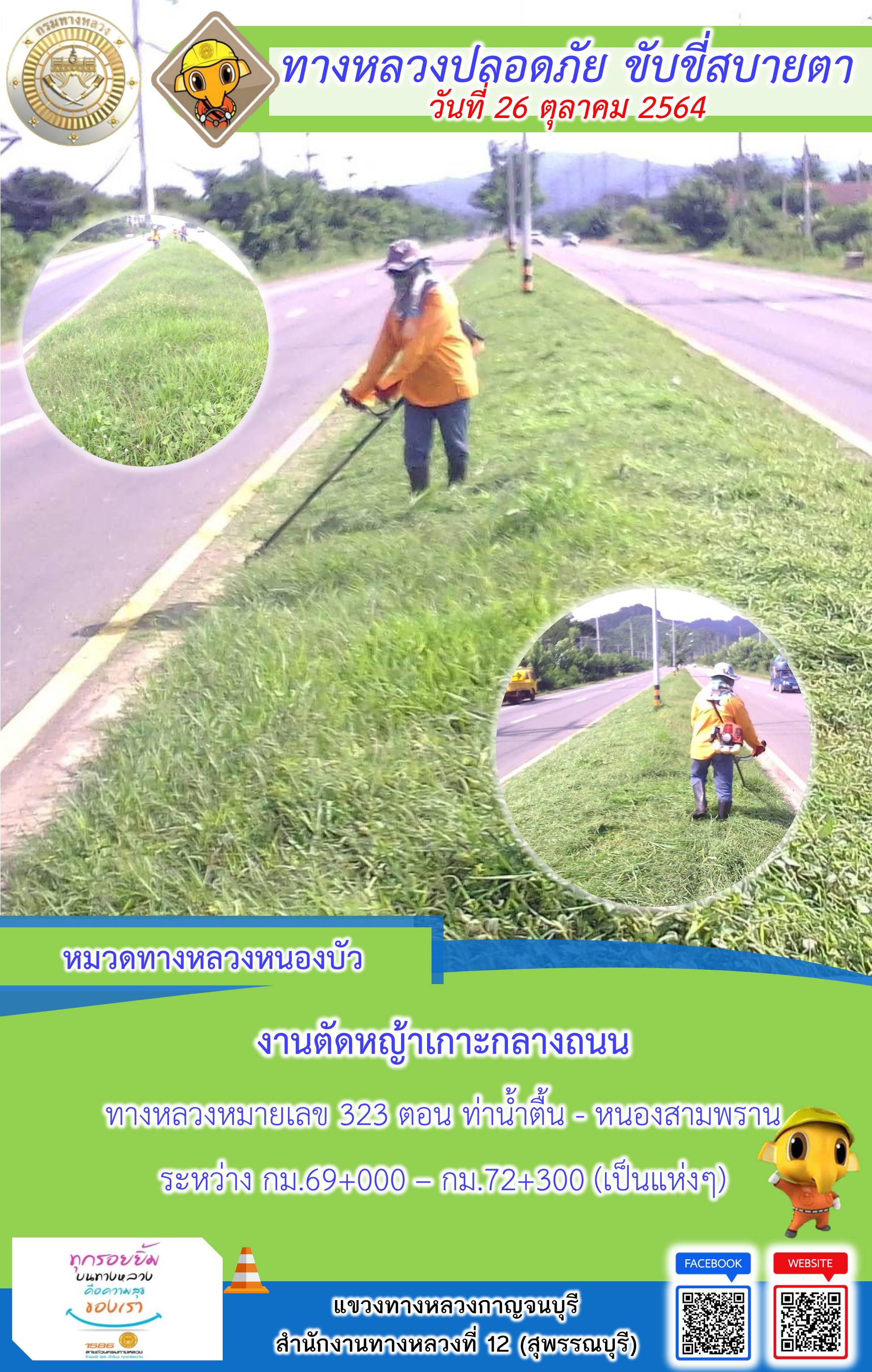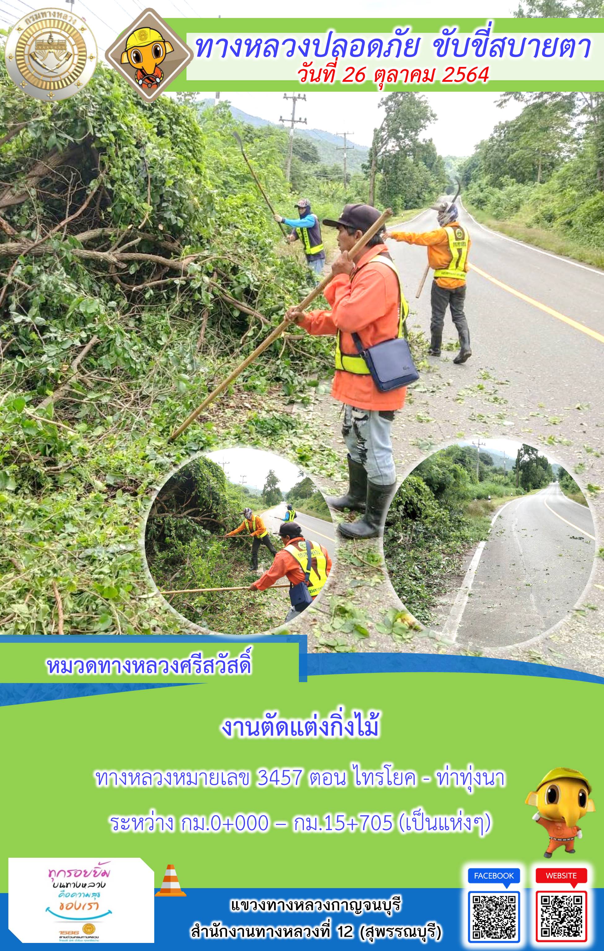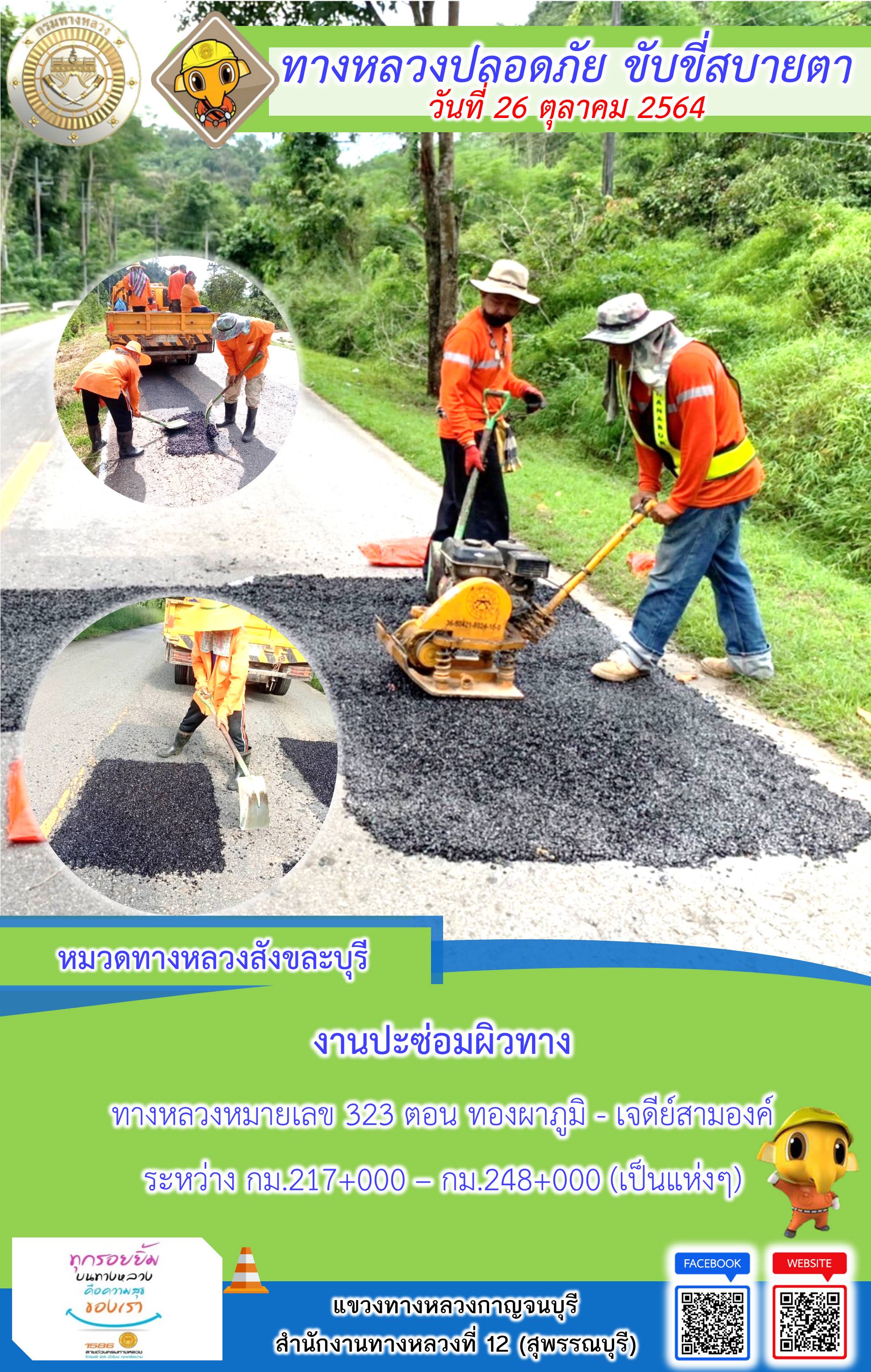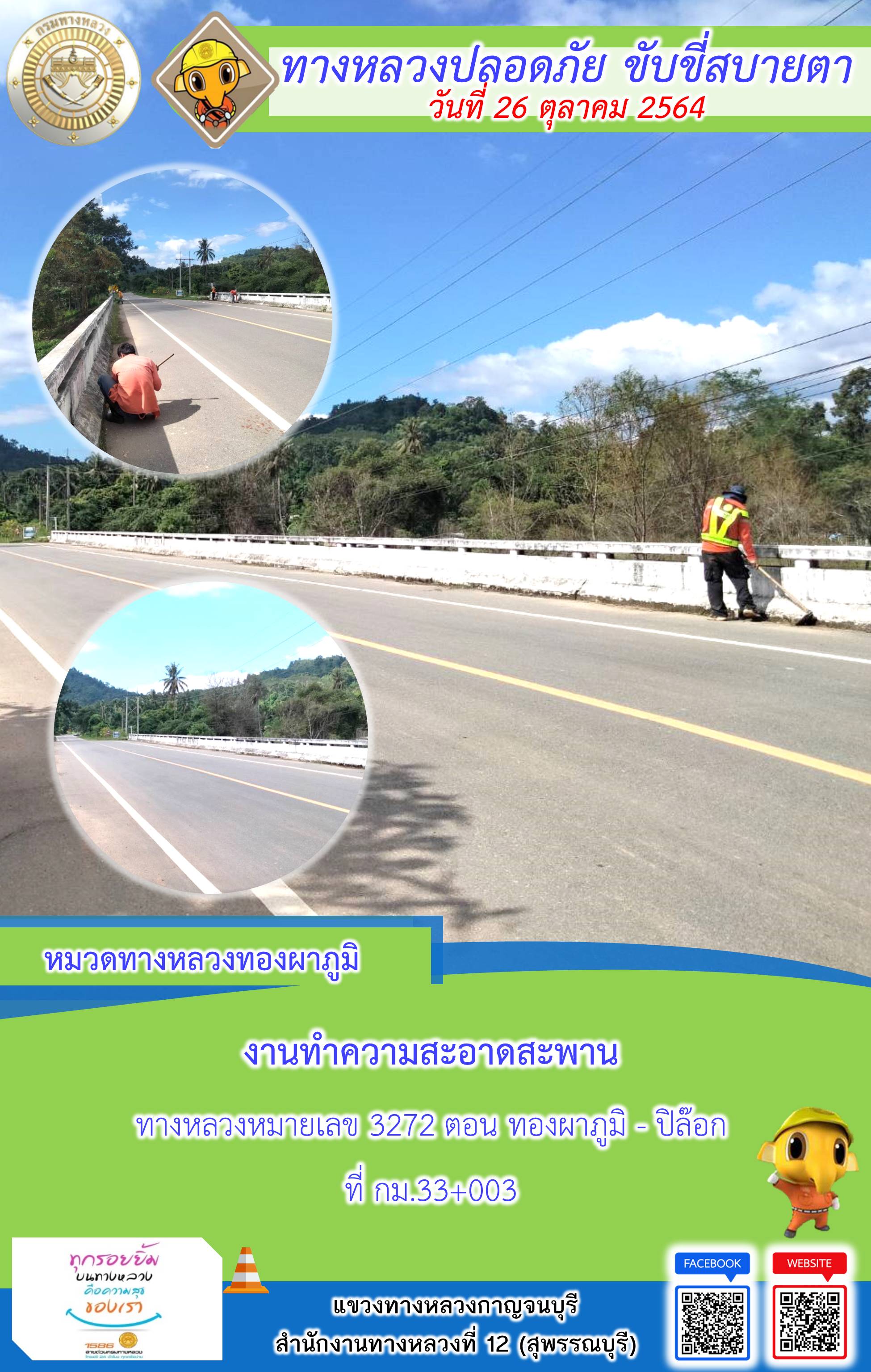 ข้อมูลภาพกิจกรรม : แขวงทางหลวงกาญจนบุรี โดยหมวดทางหลวงในสังกัดและงานอำนวยความปลอดภัย ปฏิบัติงาน ประจำวันที่ 26 ต.ค. 2564 #กรมทางหลวง #สายด่วนกรมทางหลวง1586 #แขวงทางหลวงกาญจนบุรี โทร 034-520-598