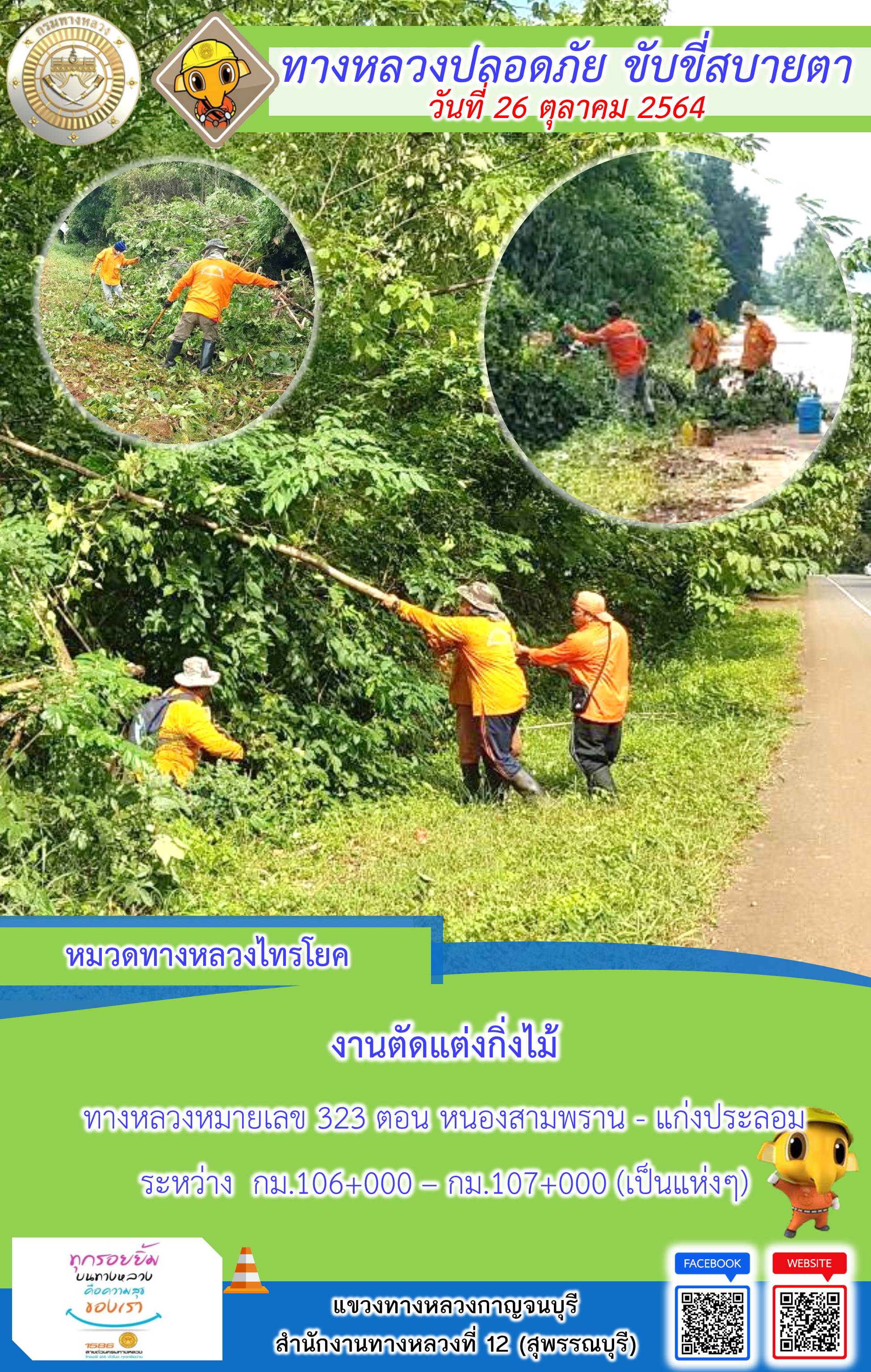แขวงทางหลวงกาญจนบุรี โดยหมวดทางหลวงในสังกัดและงานอำนวยความปลอดภัย ปฏิบัติงาน ประจำวันที่ 26 ต.ค. 2564 #กรมทางหลวง #สายด่วนกรมทางหลวง1586 #แขวงทางหลวงกาญจนบุรี โทร 034-520-598