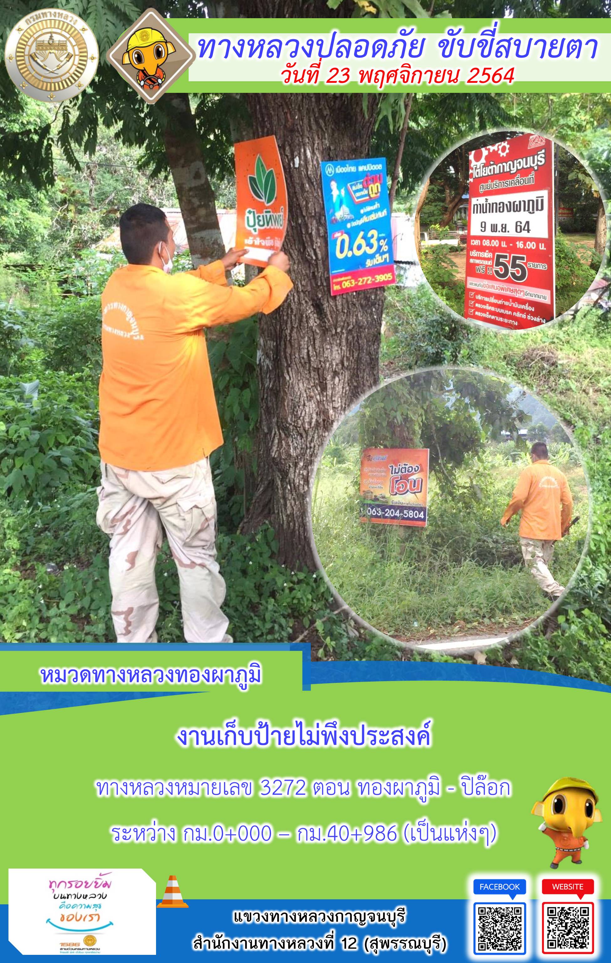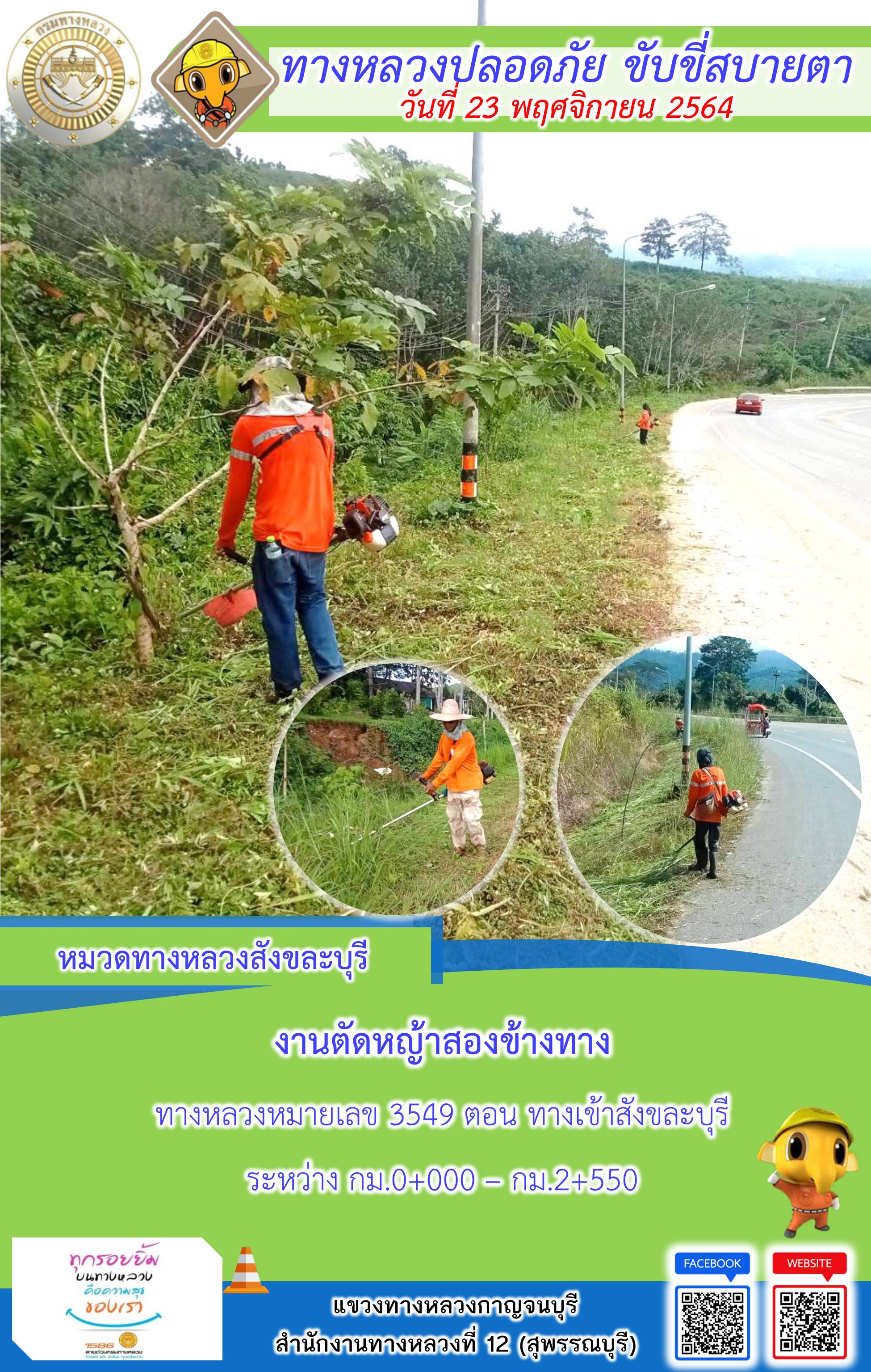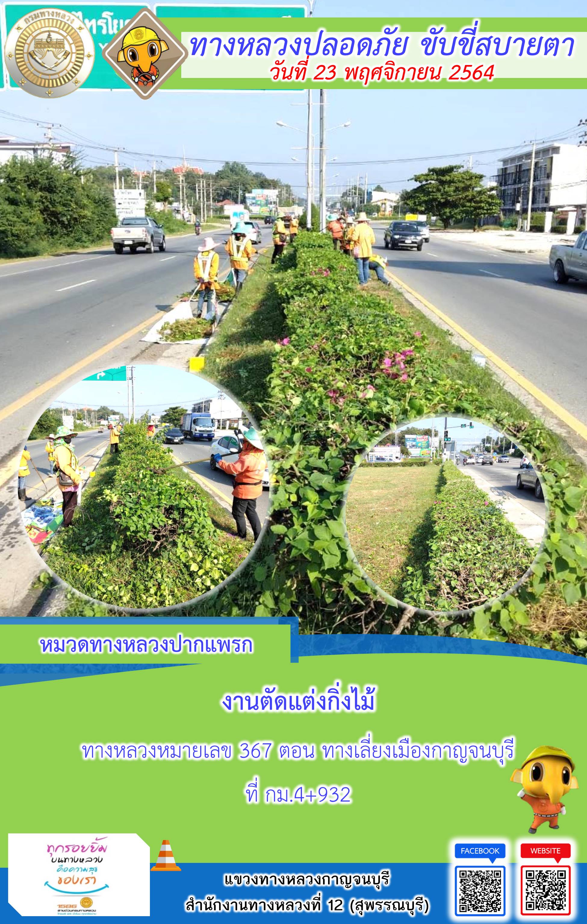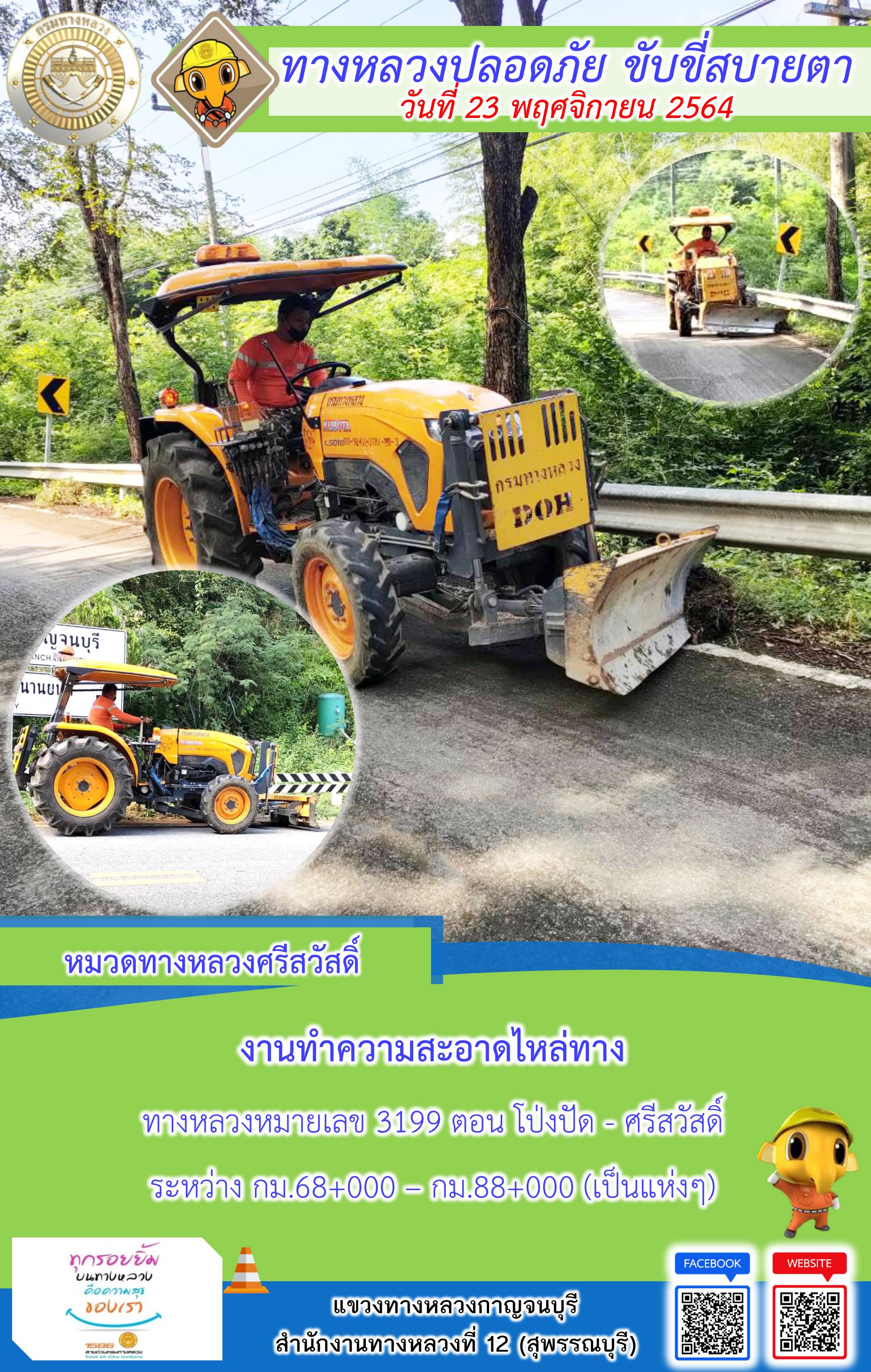 ข้อมูลภาพกิจกรรม : แขวงทางหลวงกาญจนบุรี โดยหมวดทางหลวงในสังกัดและงานอำนวยความปลอดภัย ปฏิบัติงาน ประจำวันที่ 23 พ.ย. 2564 #กรมทางหลวง #สายด่วนกรมทางหลวง1586 #แขวงทางหลวงกาญจนบุรี โทร 034-520-598