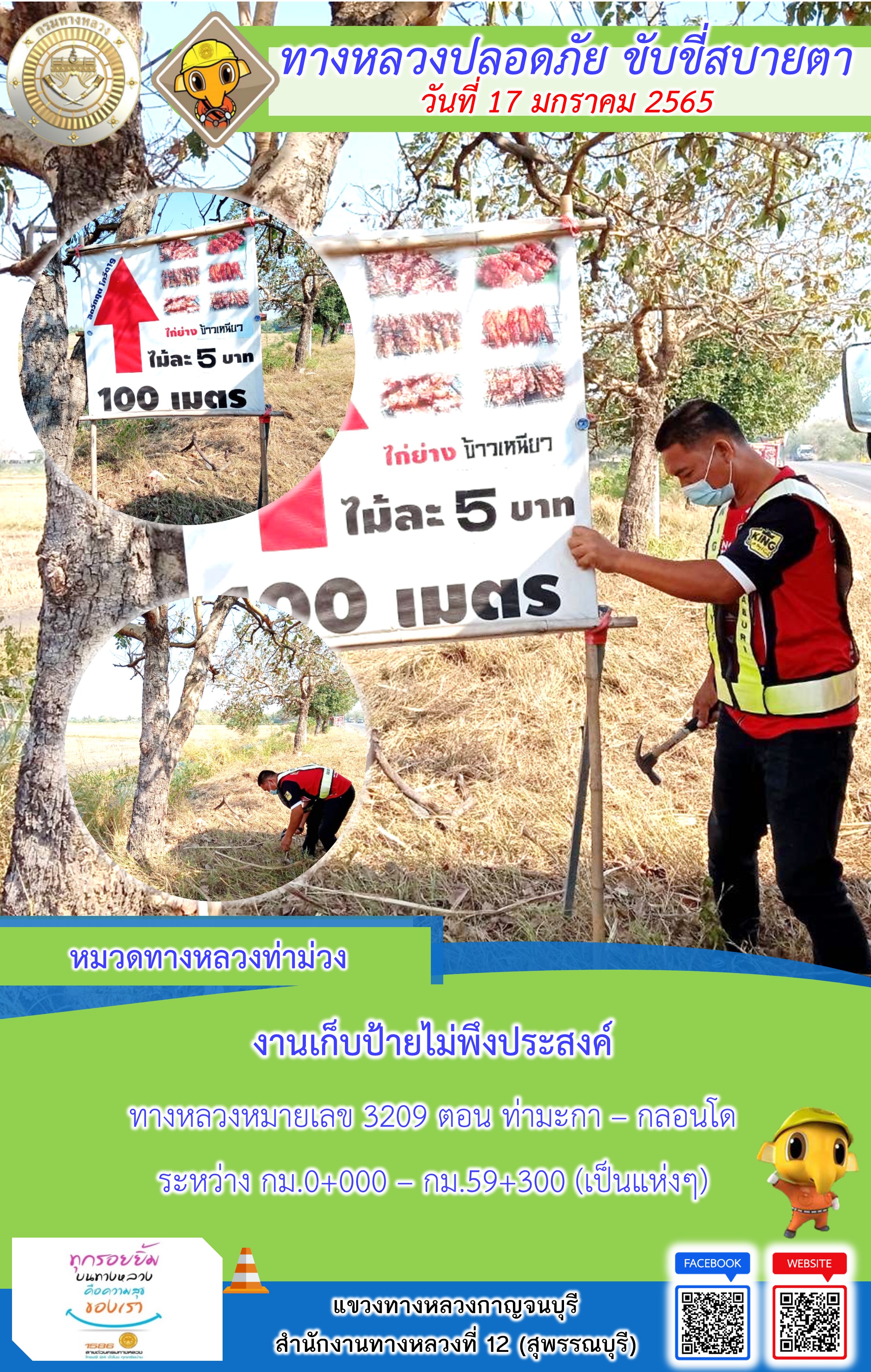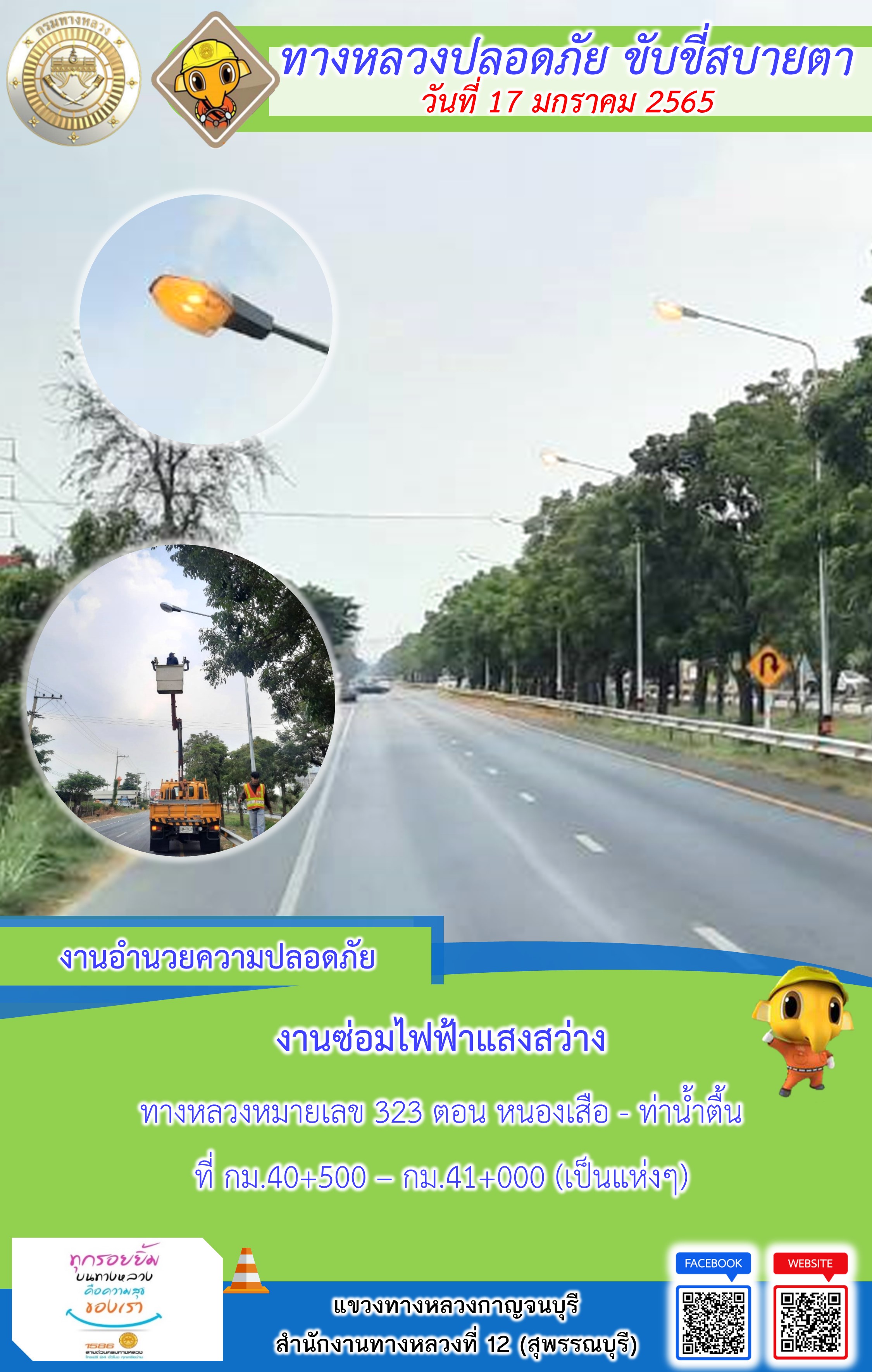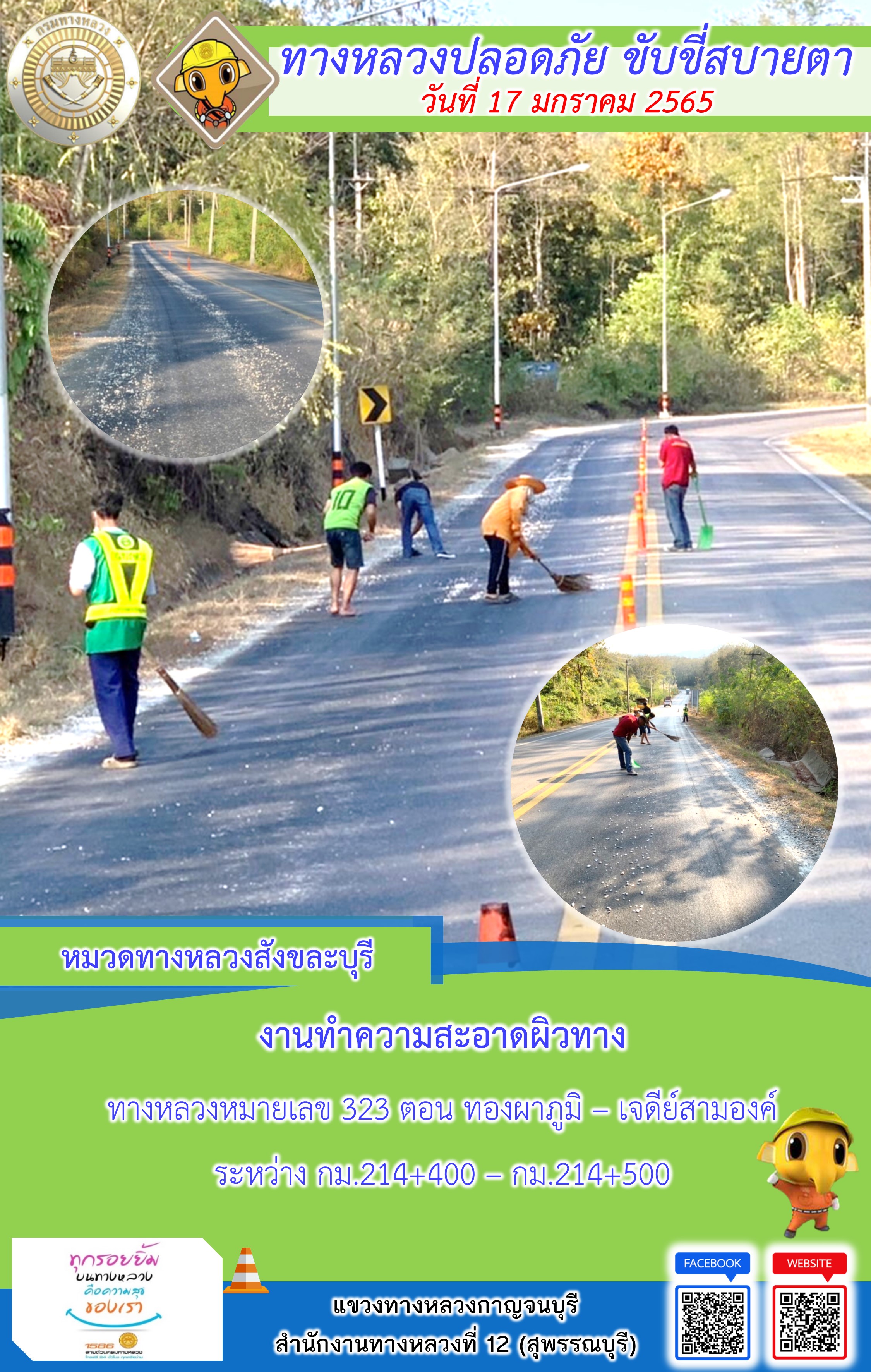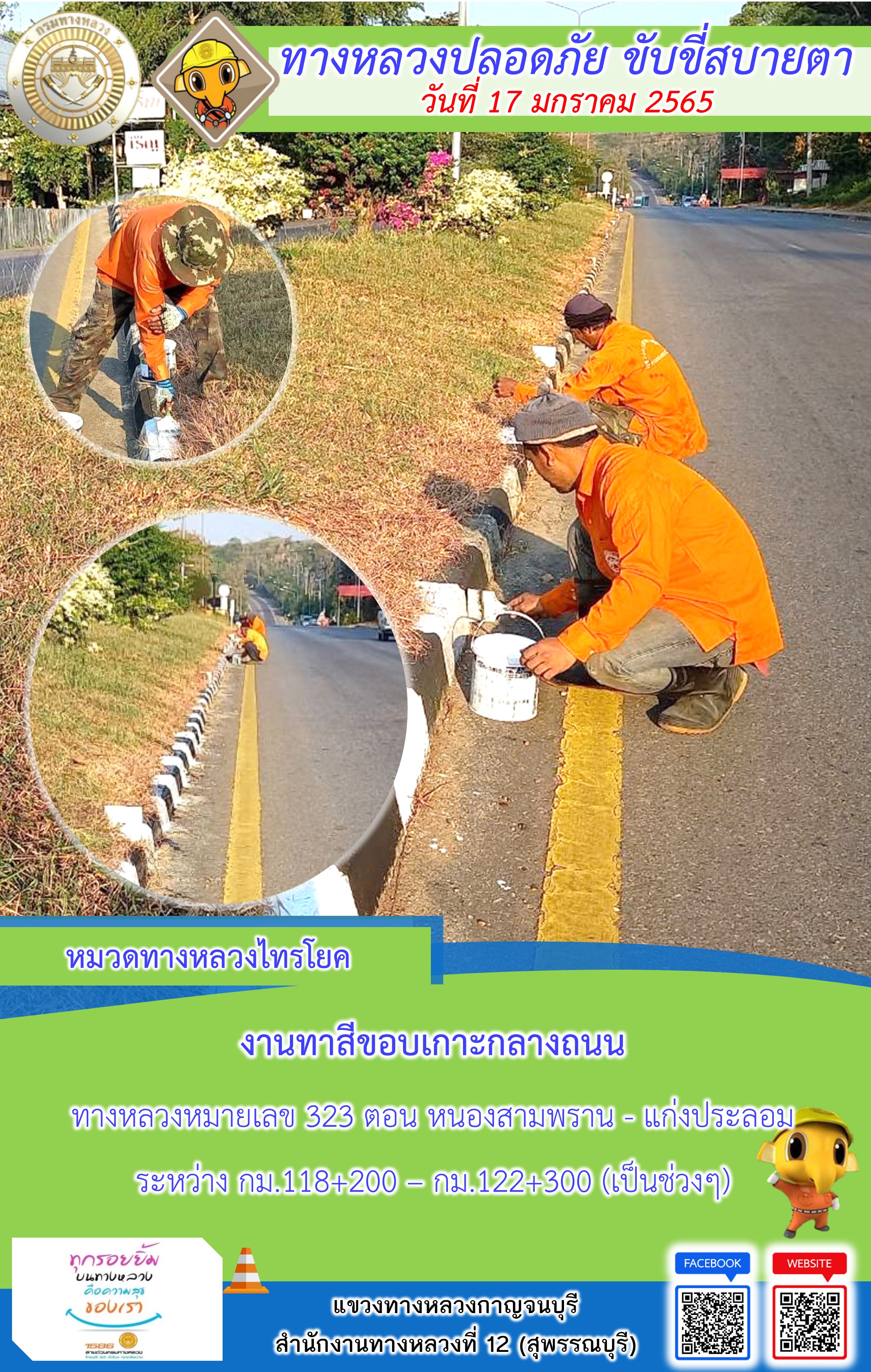 ข้อมูลภาพกิจกรรม : แขวงทางหลวงกาญจนบุรี โดยหมวดทางหลวงในสังกัด และงานอำนวยความปลอดภัย ปฏิบัติงาน ประจำวันที่ 17 ม.ค. 65 #กรมทางหลวง #สายด่วนกรมทางหลวง1586 #แขวงทางหลวงกาญจนบุรี โทร 034-520-598