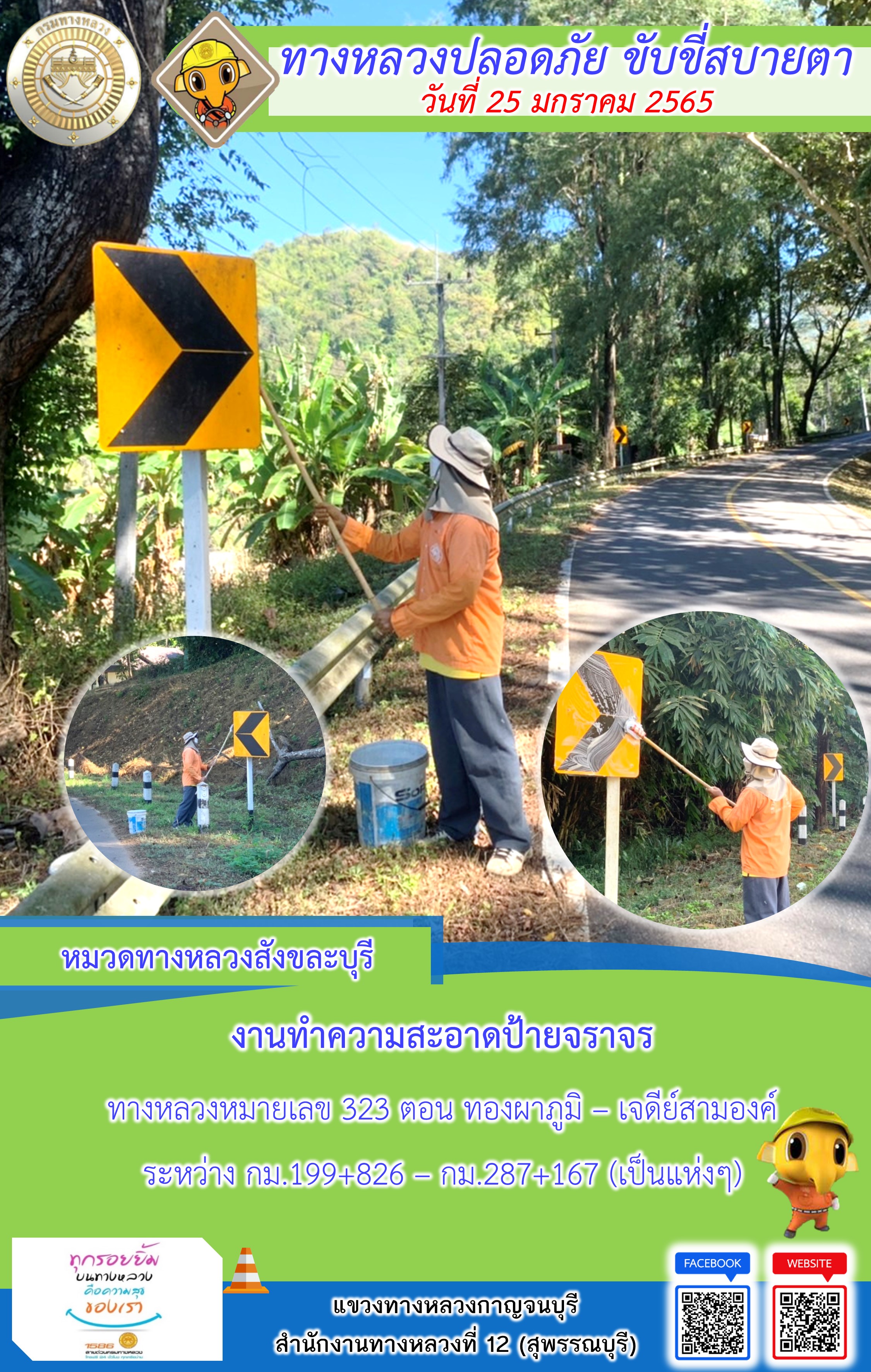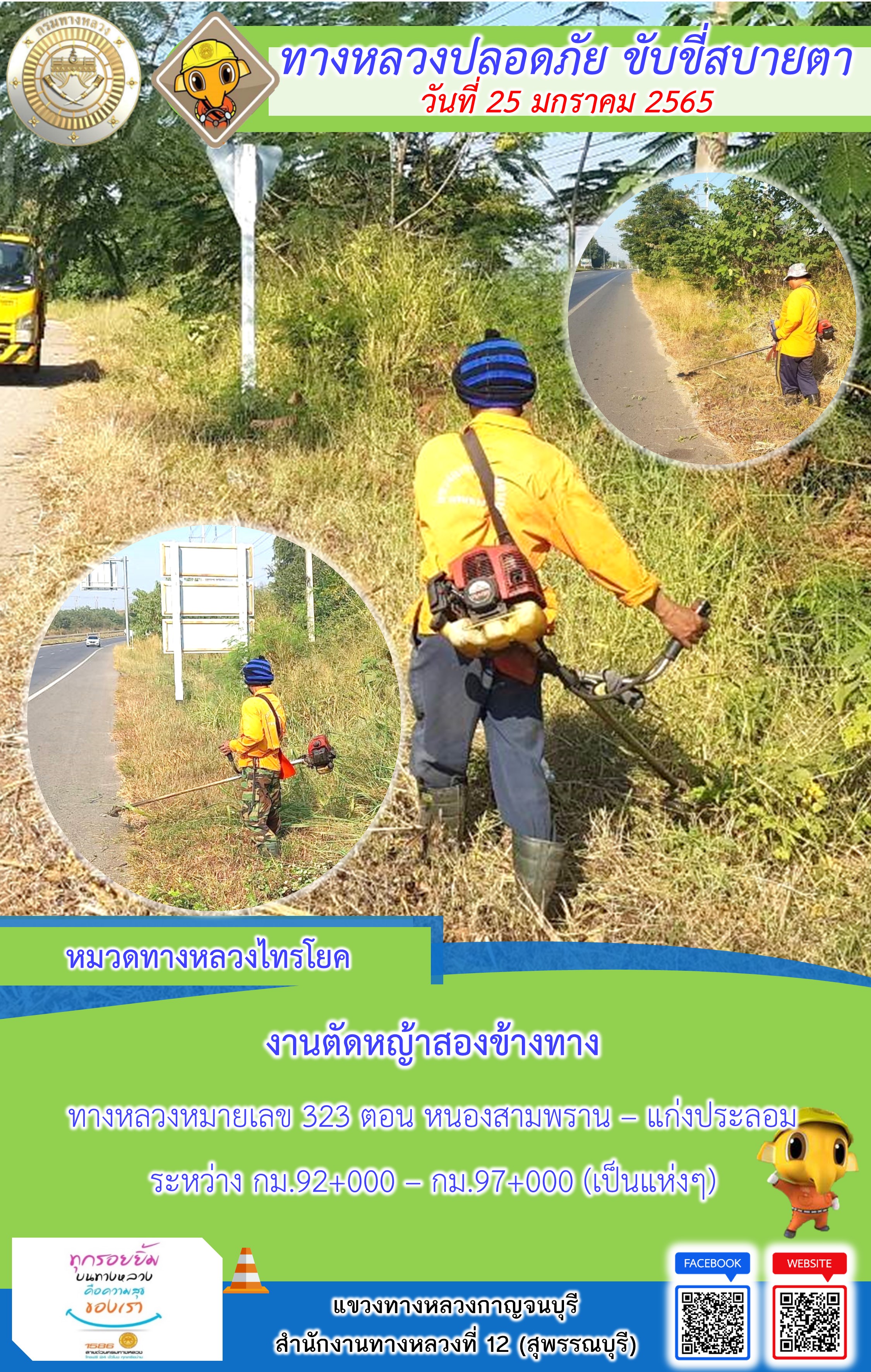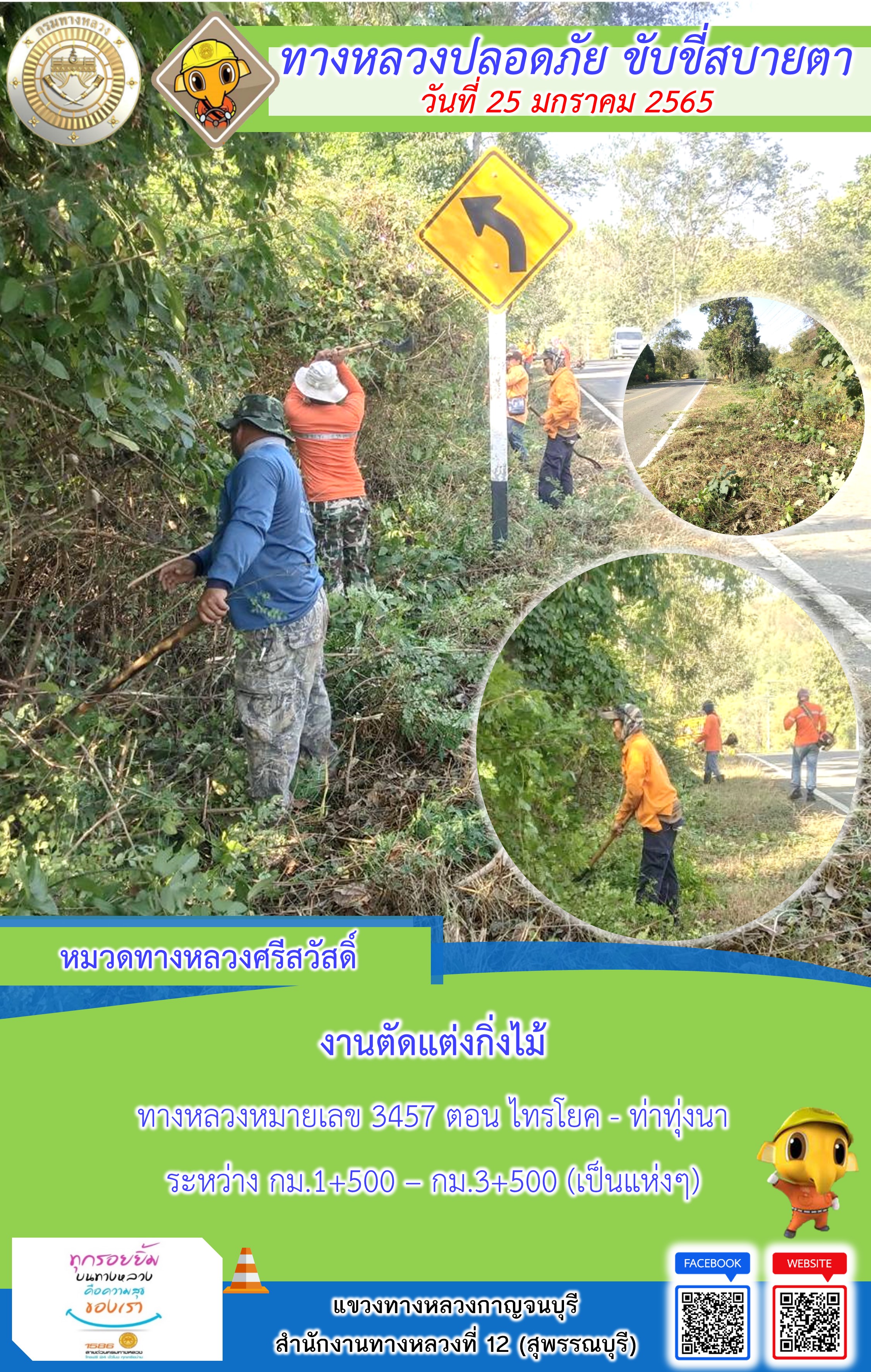 ข้อมูลภาพกิจกรรม : แขวงทางหลวงกาญจนบุรี โดยหมวดทางหลวงในสังกัด และงานอำนวยความปลอดภัย ปฏิบัติงาน ประจำวันที่ 25 ม.ค. 65 #กรมทางหลวง #สายด่วนกรมทางหลวง1586 #แขวงทางหลวงกาญจนบุรี โทร 034-520-598