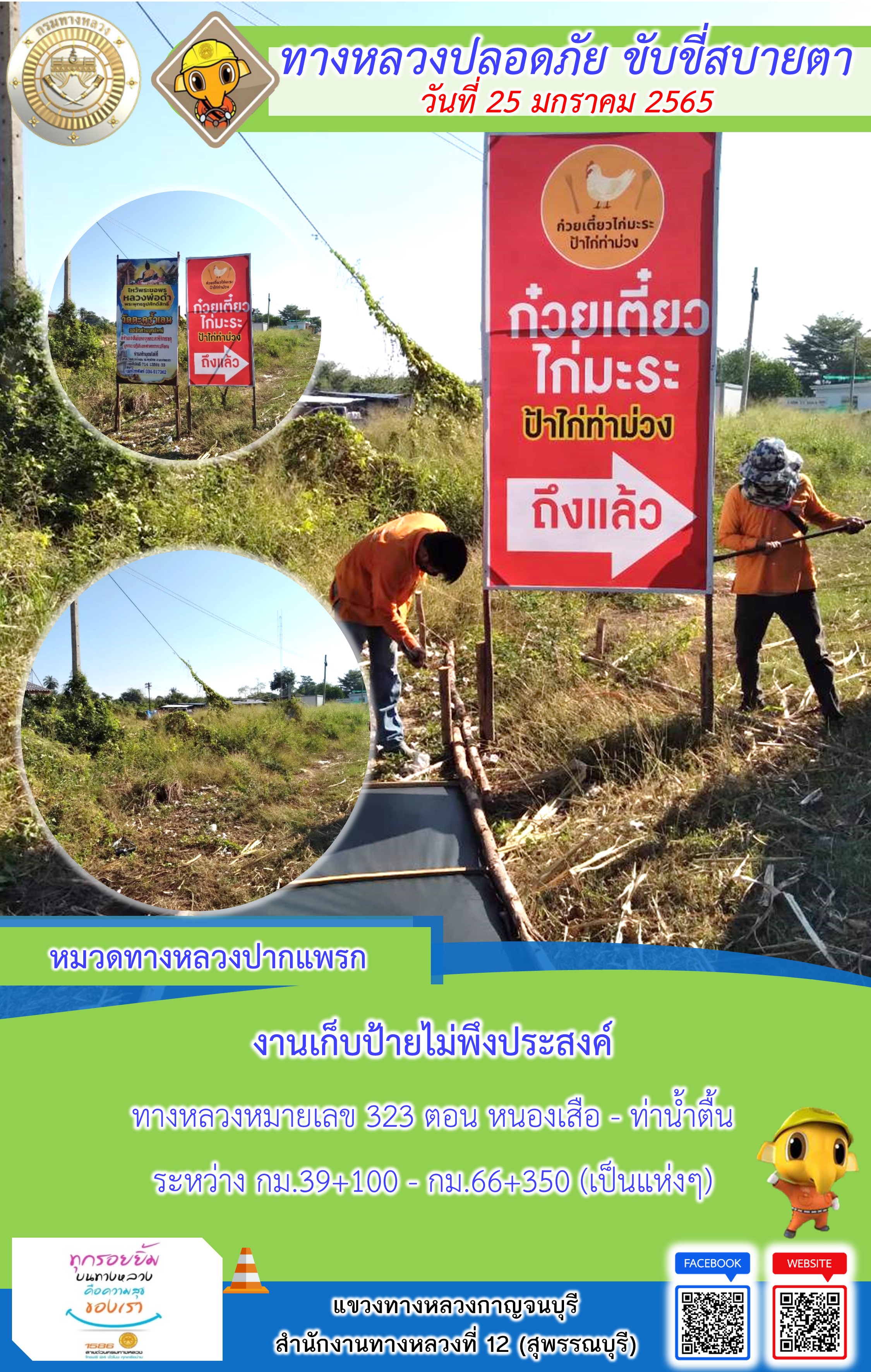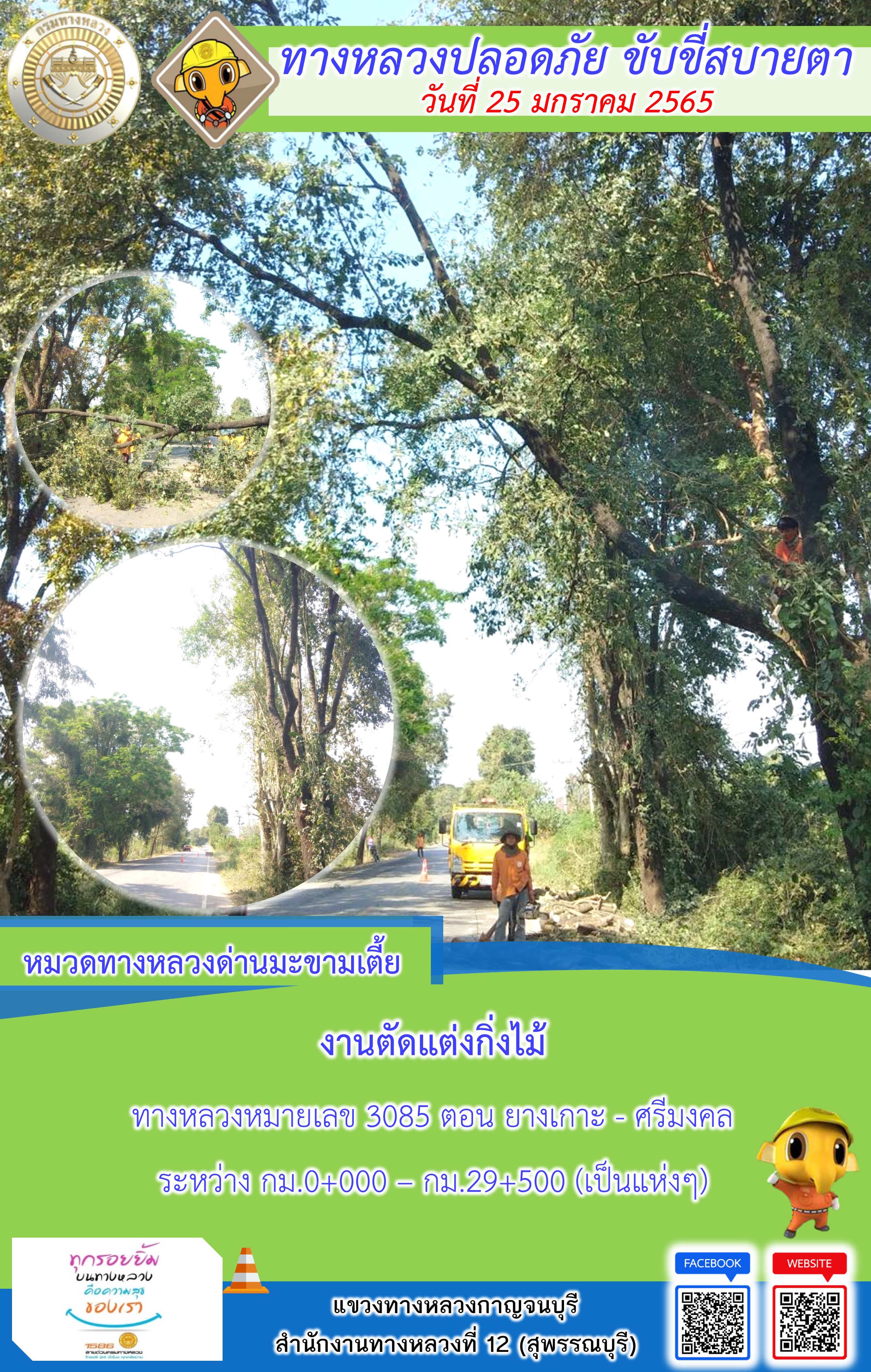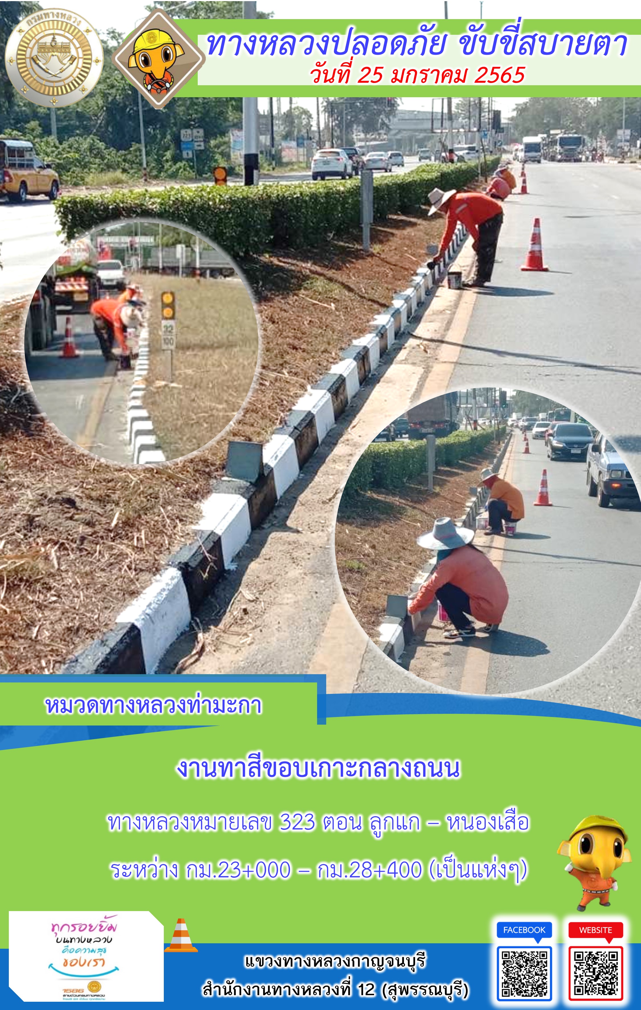 ข้อมูลภาพกิจกรรม : แขวงทางหลวงกาญจนบุรี โดยหมวดทางหลวงในสังกัด และงานอำนวยความปลอดภัย ปฏิบัติงาน ประจำวันที่ 25 ม.ค. 65 #กรมทางหลวง #สายด่วนกรมทางหลวง1586 #แขวงทางหลวงกาญจนบุรี โทร 034-520-598