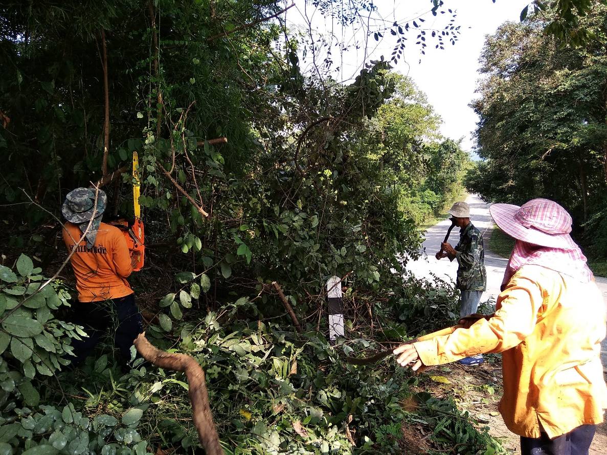 2.ดำเนินการตัดแต่งกิ่งไม้ถางป่าบริเวณข้างทาง ทล.3457 ตอนไทรโยค - ท่าทุ่งนา เริ่มช่วง กม.12+000 - 15+705 (เปลี่ยนแปลงแผนจุดเริ่มดำเนินการ)