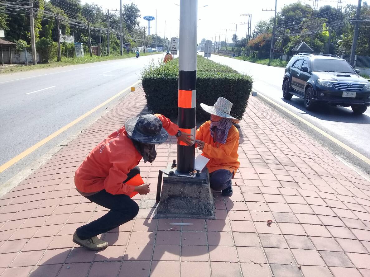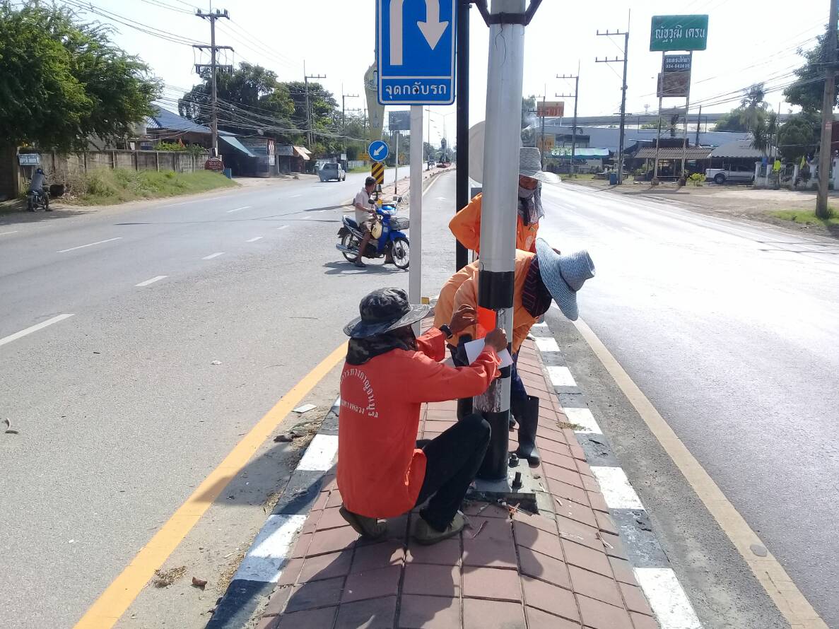2.ติดแผ่นสะท้อนแสงเสาไฟฟ้าเกาะกลาง ในทล.3230201 ที่ กม.23+290 -25+00