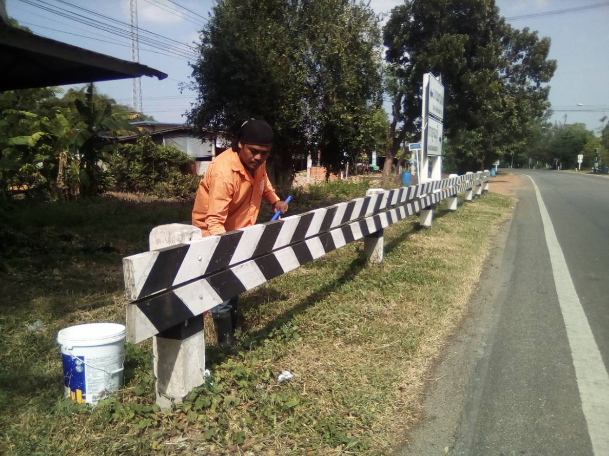 2.ทาสีเสาป้าย หลักนำทาง หลักกม. แผงกั้นทางแยก