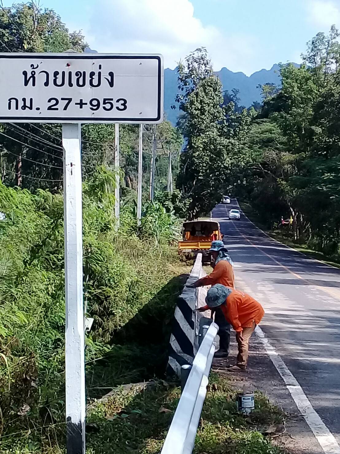 แขวงทางหลวงกาญจนบุรีโดยหมวดทองผาภูมิ ดำเนินการในทางหลวงหมายเลข 3272