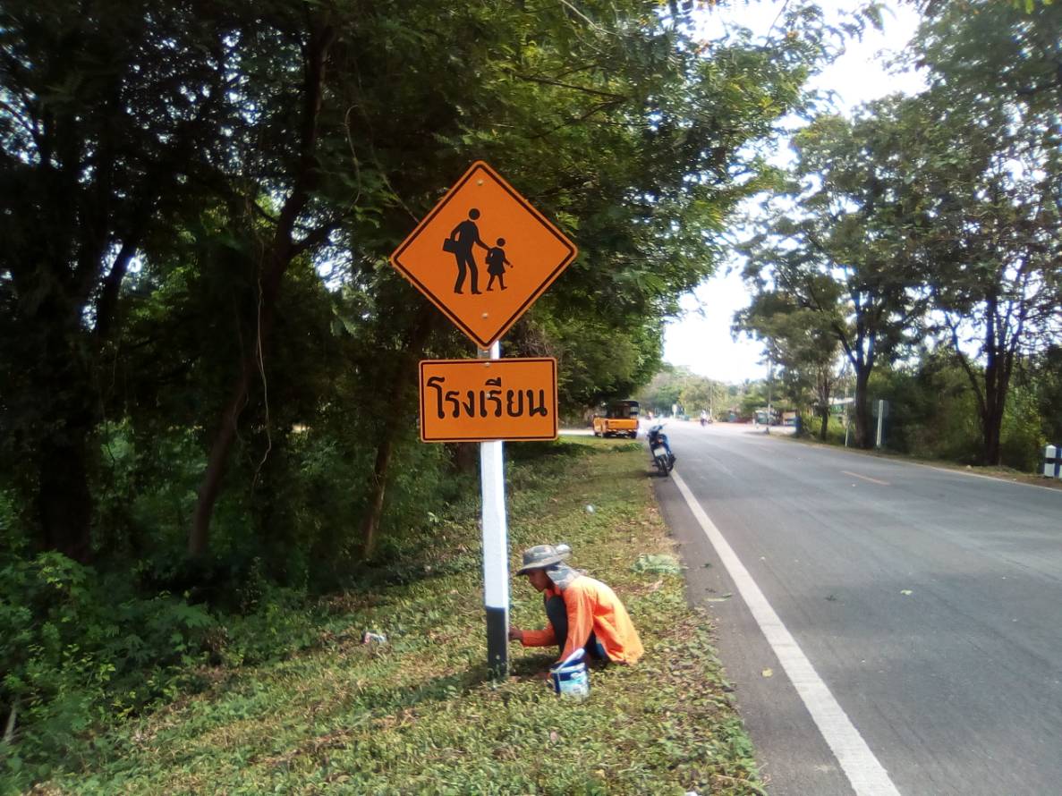 2.ทาสีเสาป้าย หลักนำทาง หลัก กม. แผงกั้น