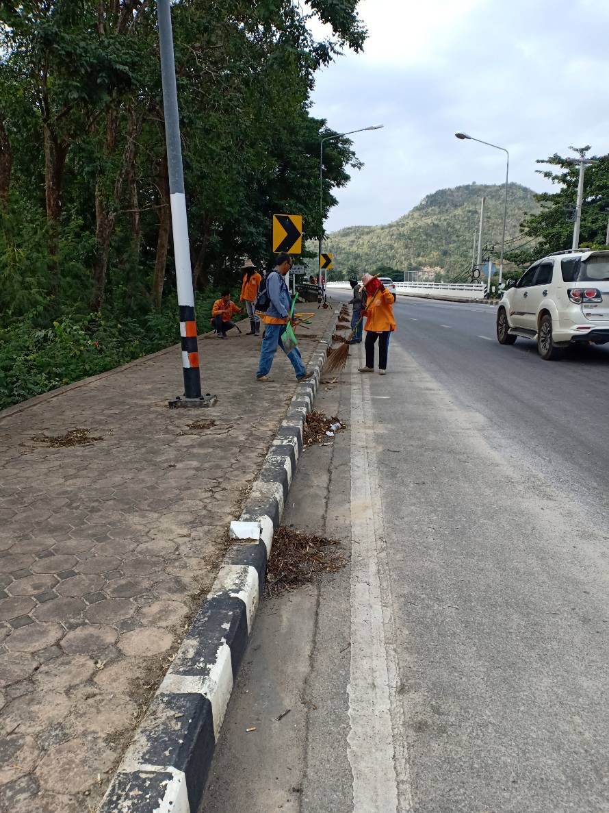 แขวงทางหลวงกาญจนบุรีโดยหมวดด่านมะขามเเตี้ยดำเนินการในทางหลวงหมายเลข 3209 29/11/61