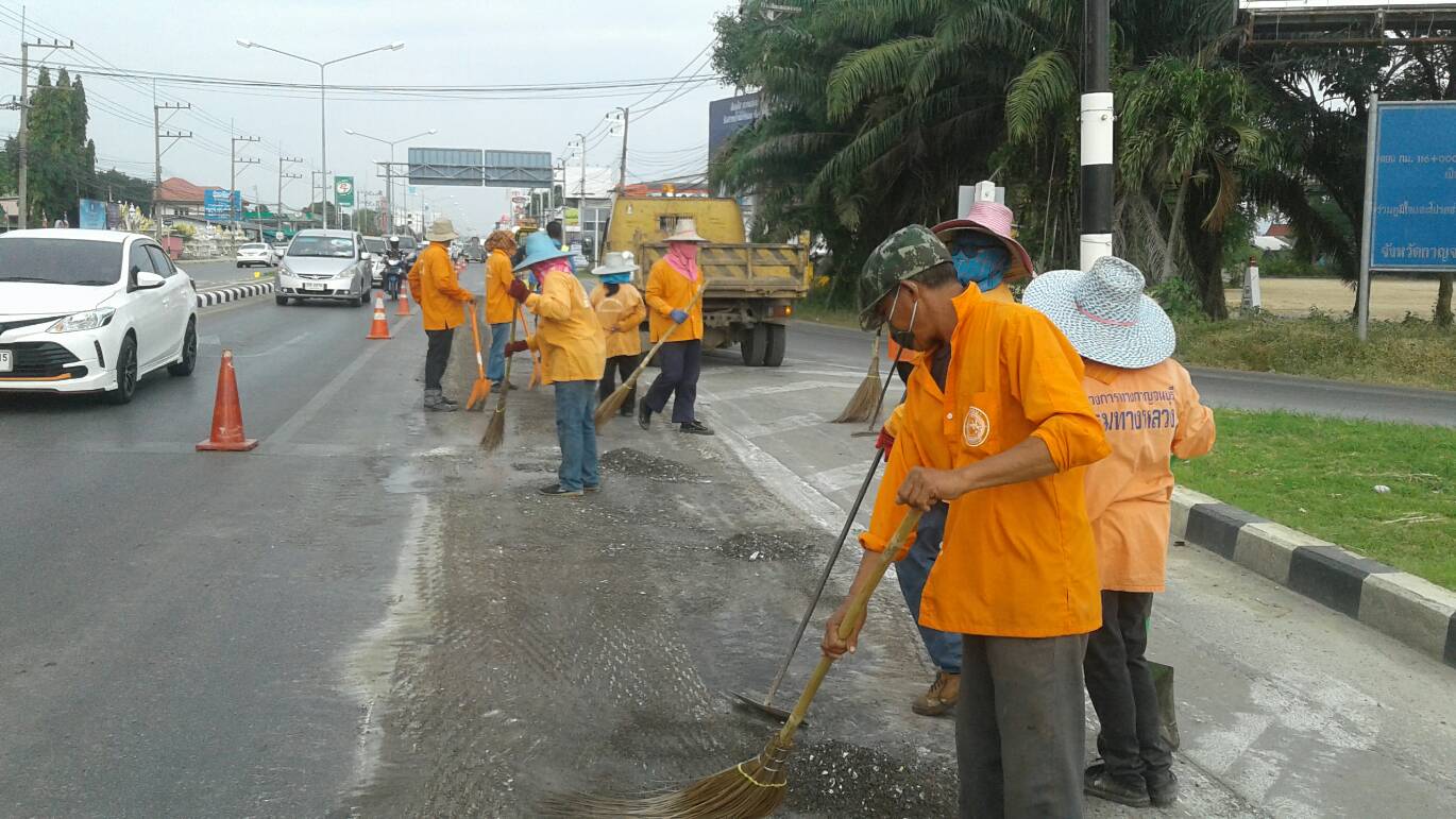 3.ทำความสะอาดบริเวณขอบเกาะ ในทางหลวงหมายเลข 324 เริ่ม กม.2+500 - กม.5+000