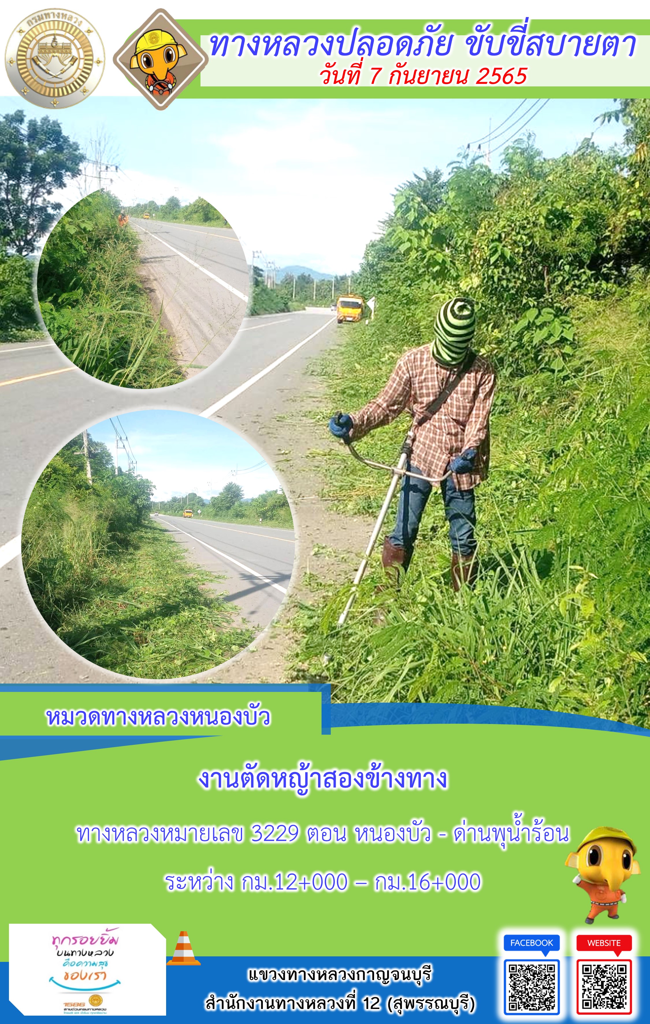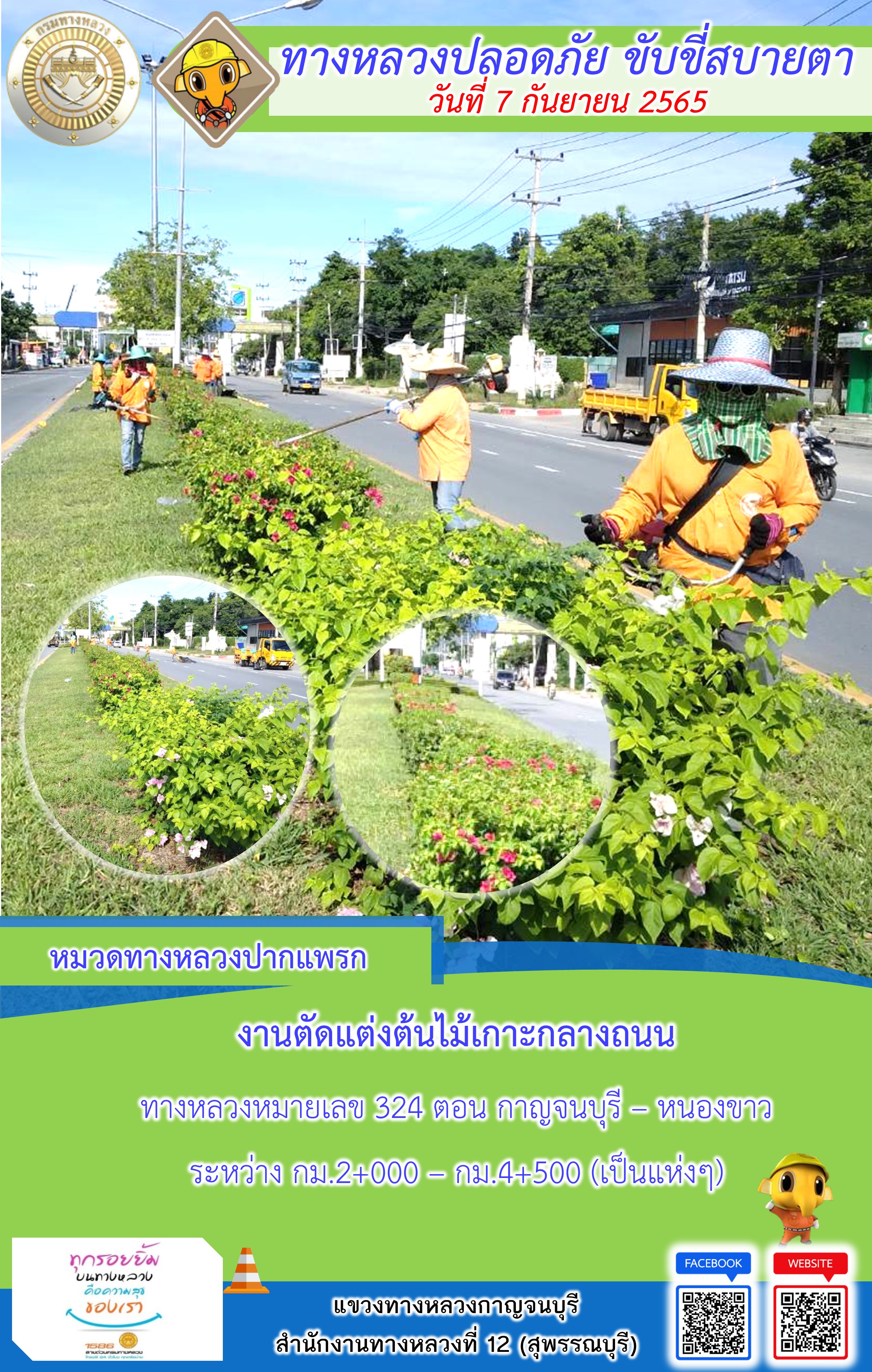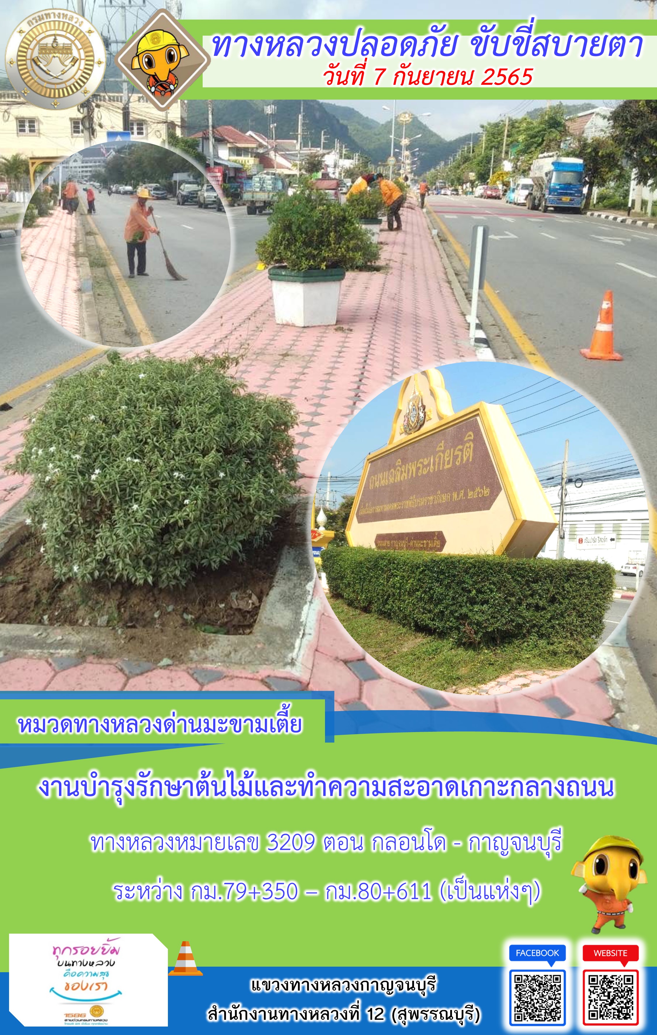 ข้อมูลภาพกิจกรรม : แขวงทางหลวงกาญจนบุรี โดยหมวดทางหลวงในสังกัดและงานอำนวยความปลอดภัย ปฏิบัติงาน ประจำวันที่ 7 ก.ย. 65 #กรมทางหลวง #สายด่วนกรมทางหลวง1586 #แขวงทางหลวงกาญจนบุรี โทร 034-520-598