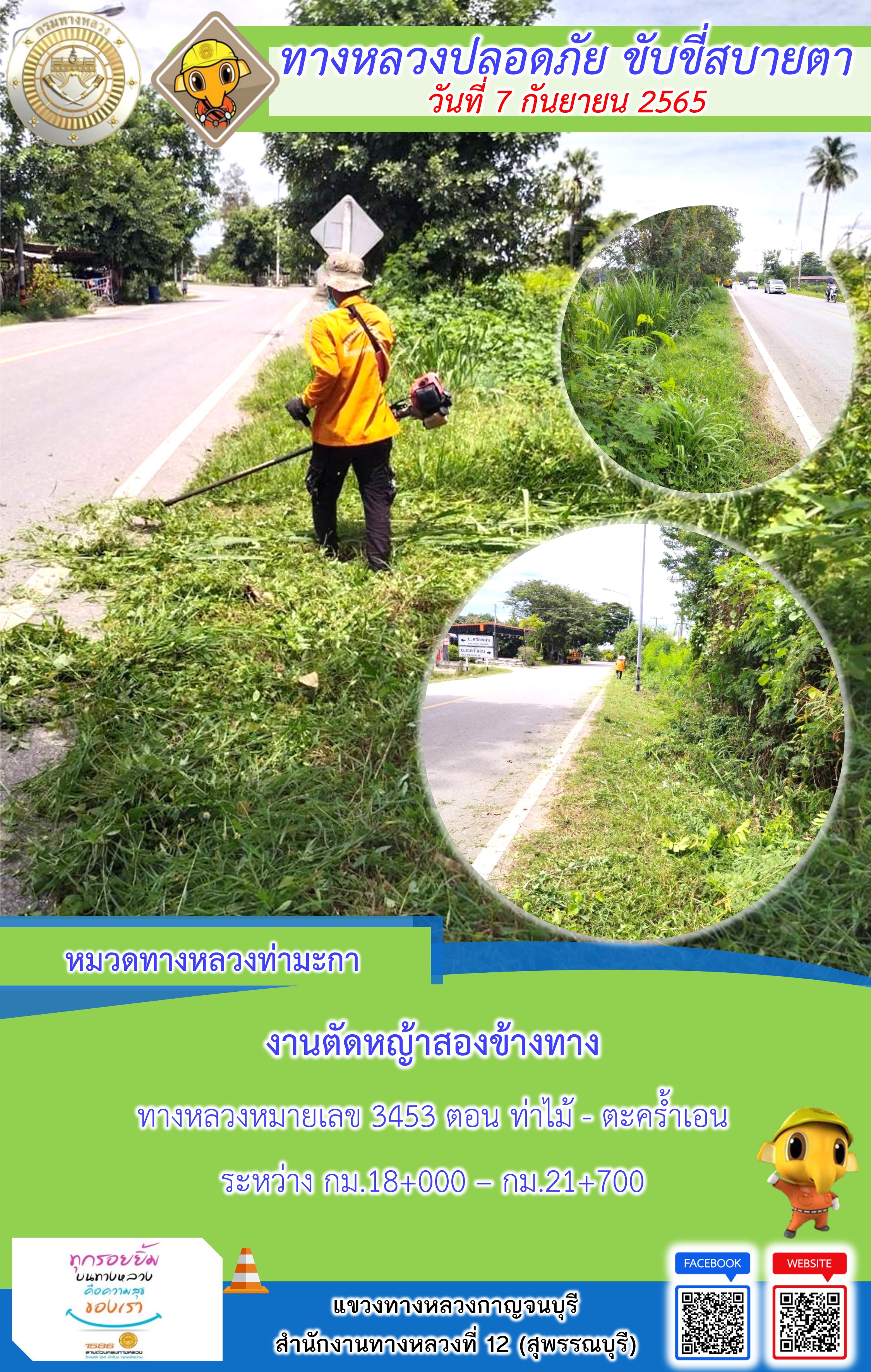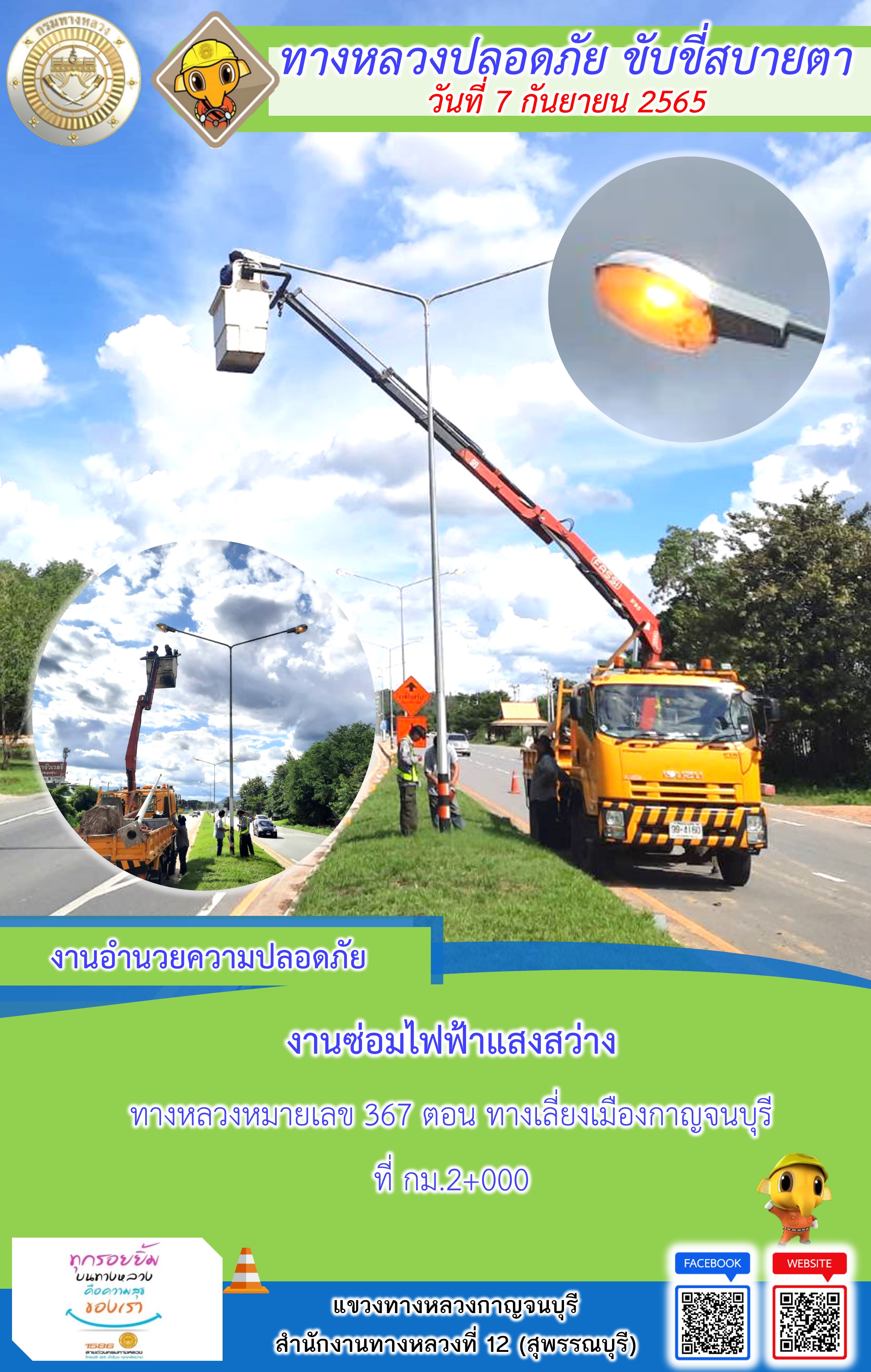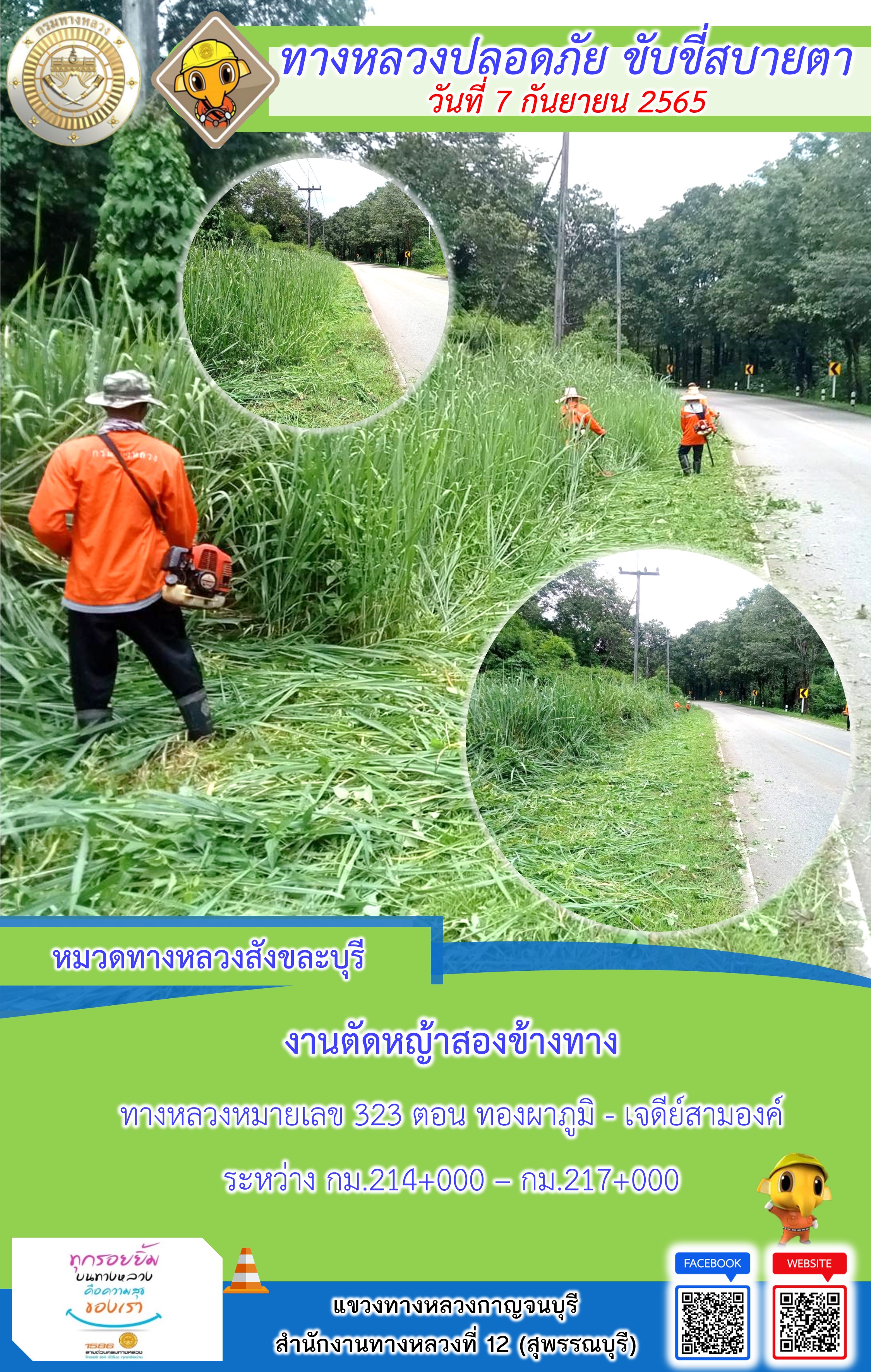 ข้อมูลภาพกิจกรรม : แขวงทางหลวงกาญจนบุรี โดยหมวดทางหลวงในสังกัดและงานอำนวยความปลอดภัย ปฏิบัติงาน ประจำวันที่ 7 ก.ย. 65 #กรมทางหลวง #สายด่วนกรมทางหลวง1586 #แขวงทางหลวงกาญจนบุรี โทร 034-520-598
